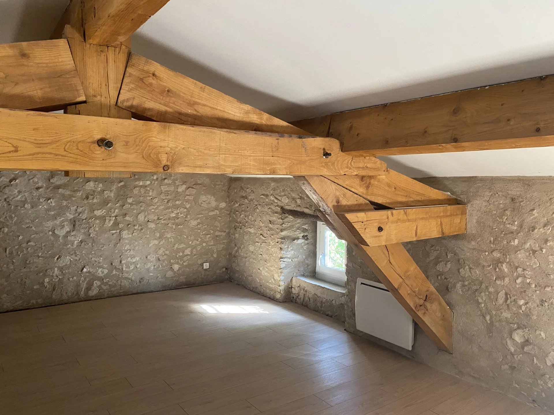 Le 2ème étage offre une superbe pièce mansardée offrant 22m2 environ d'espace habitable, avec pierres et poutres apparentes et une vue dégagée sur les Pyrénées.