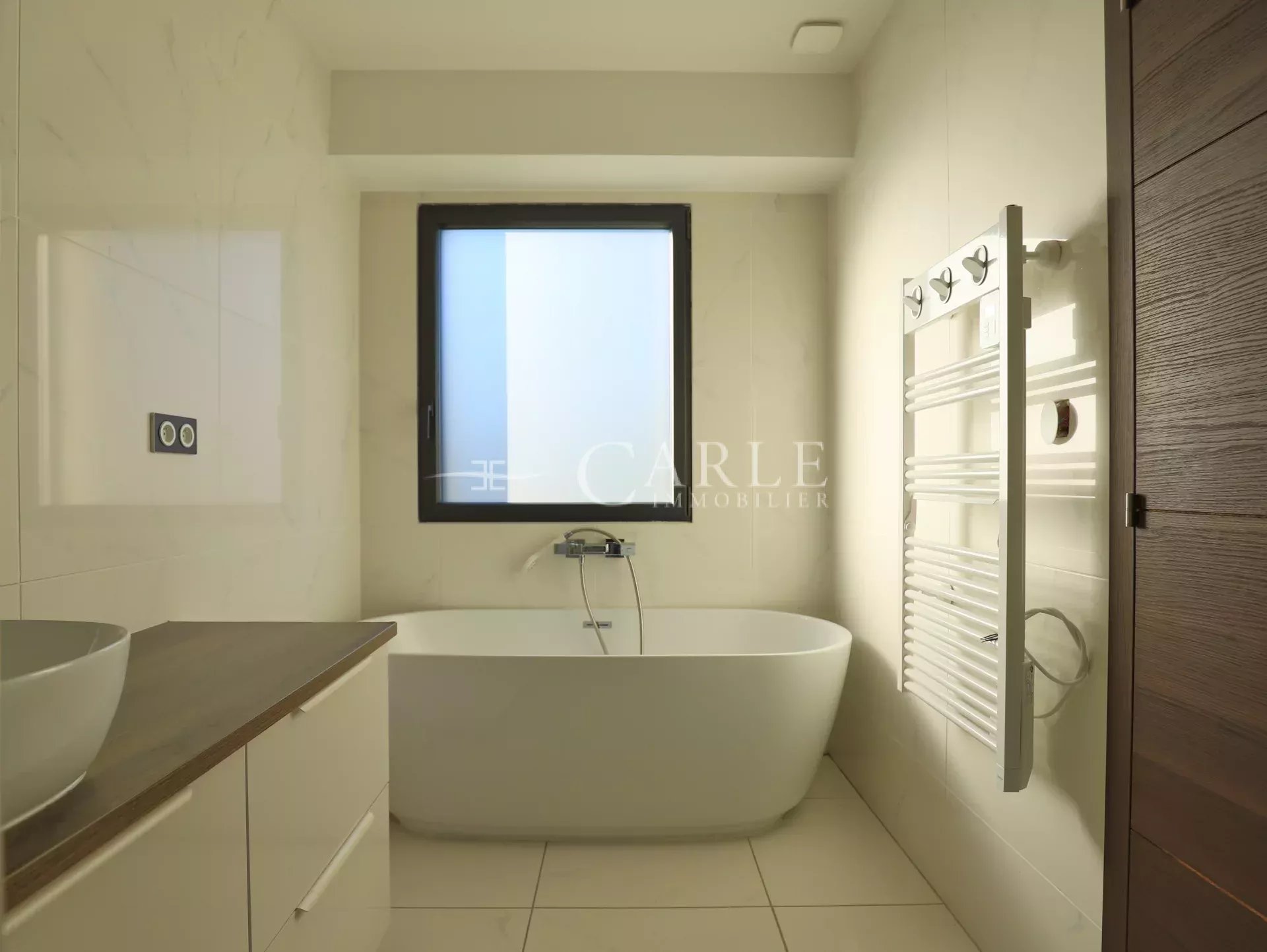 Côté confort, la maison offre des prestations de haut niveau: Chauffage par plancher chauffant réversible et climatisation gainable, tous deux alimentés par pompe à chaleur, volets roulants motorisés et centralisés, alarme, ainsi qu’une buanderie attenante à la cuisine.