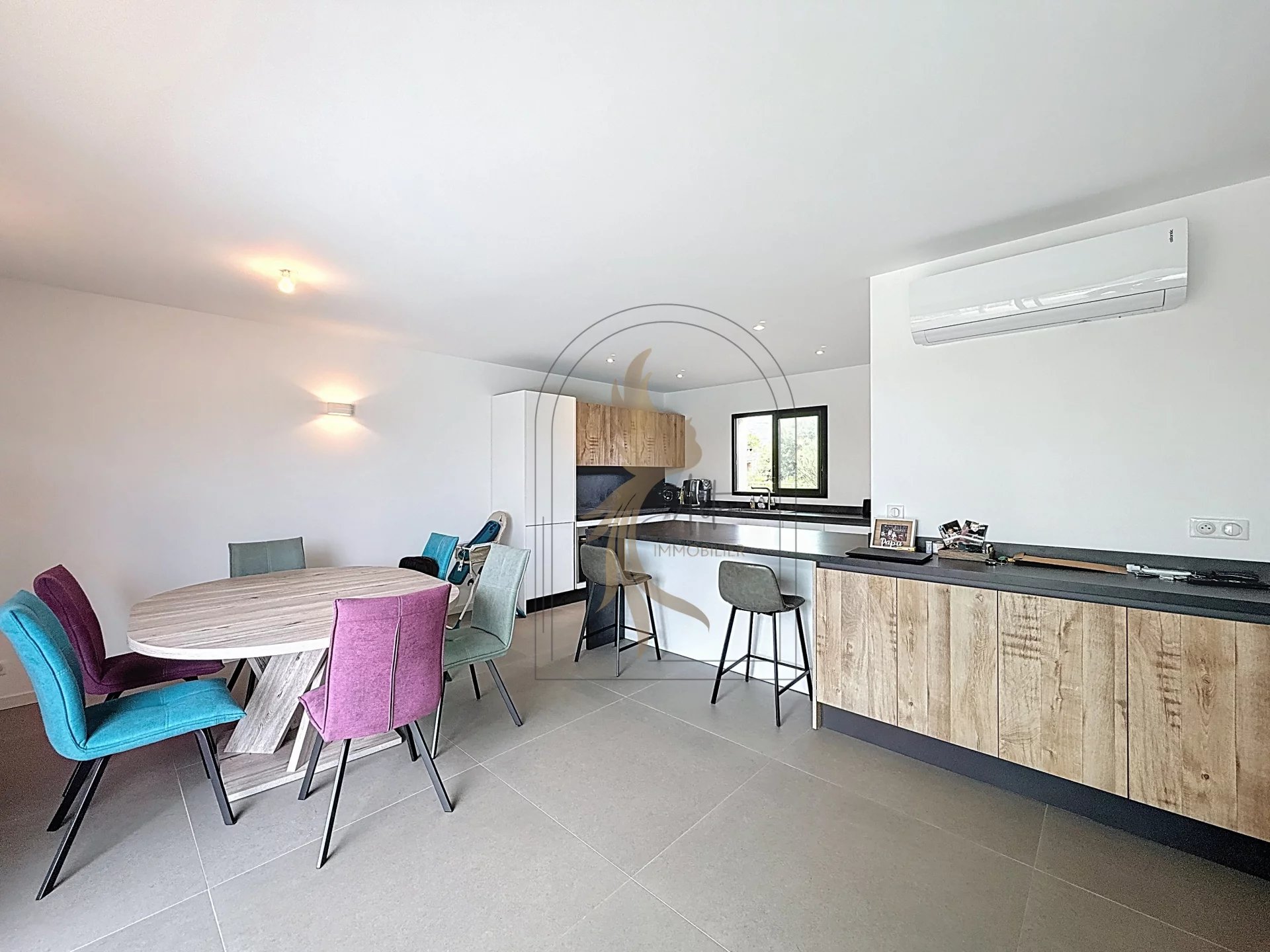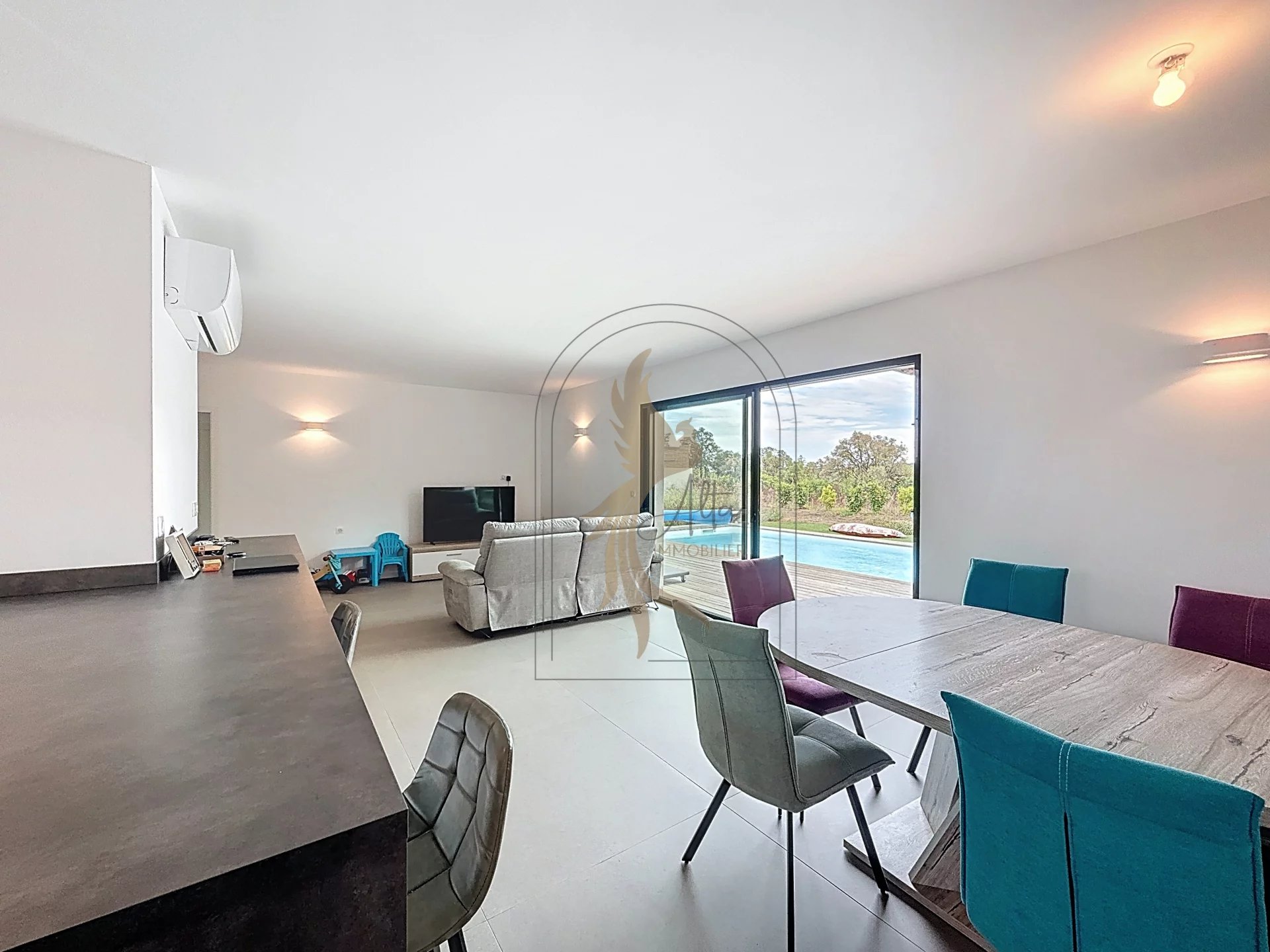 Implantée sur un beau terrain entre Lecci et Porto-Vecchio, cette maison séduit dès l’entrée par son agencement fonctionnel et sa belle luminosité. L’espace de vie principal se compose d’une cuisine aménagée et entièrement équipée, ouverte sur un salon-séjour baigné de lumière grâce à de grandes baies vitrées traversantes, offrant une belle continuité vers l’extérieur. Un cellier/buanderie complète la partie jour, ajoutant confort et praticité au quotidien. L’espace nuit propose trois chambres confortables, dont une suite parentale avec sa propre salle d’eau. L’ensemble a été pensé pour offrir à chaque occupant intimité et bien-être. À l’extérieur, une terrasse conviviale vous accueille autour d’une piscine 3x7, accompagnée d’une pergola idéale pour vos moments de détente ou vos soirées d’été. Alliant un plan efficace à une belle surface de terrain de 1084 M2, cette villa saura sans aucun doute provoquer un véritable coup de cœur pour une famille.