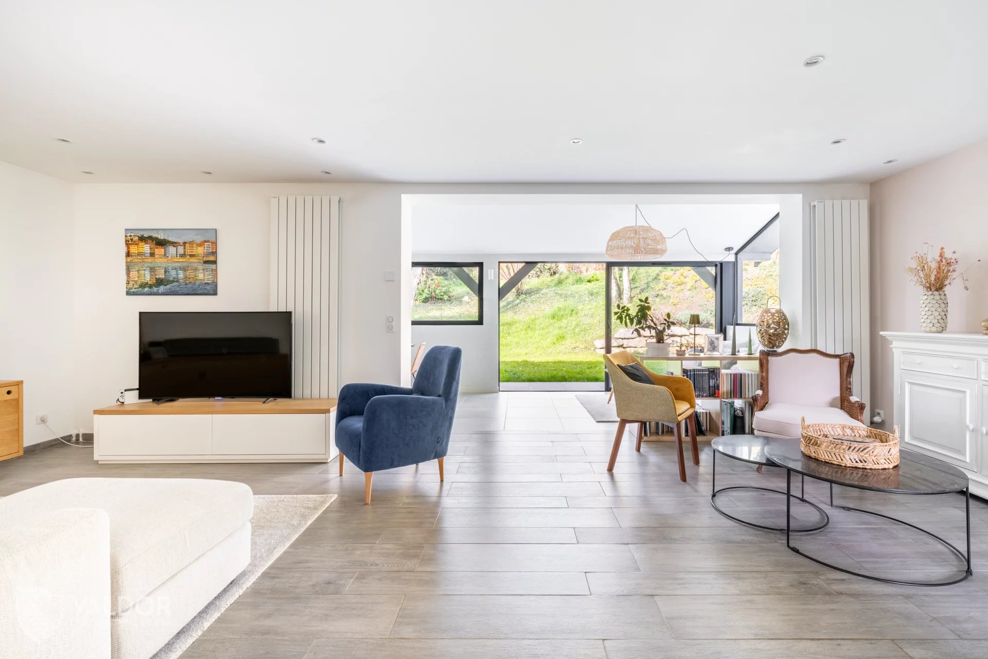 Rénovée avec finesse, cette maison incarne la qualité supérieure, tant par le choix des matériaux que par son agencement. La grande pièce de vie de 45 m² s'ouvre sur la partie ouest du jardin. Au calme absolu, Votre intimité est préservée du voisinage, vos journées seront bercées par la douce lumière du soleil couchant, promettant des instants de détente sans égale dans votre prochaine maison. La cuisine est également ouverte sur le séjour, créant ainsi un immense lieu de vie familiale.