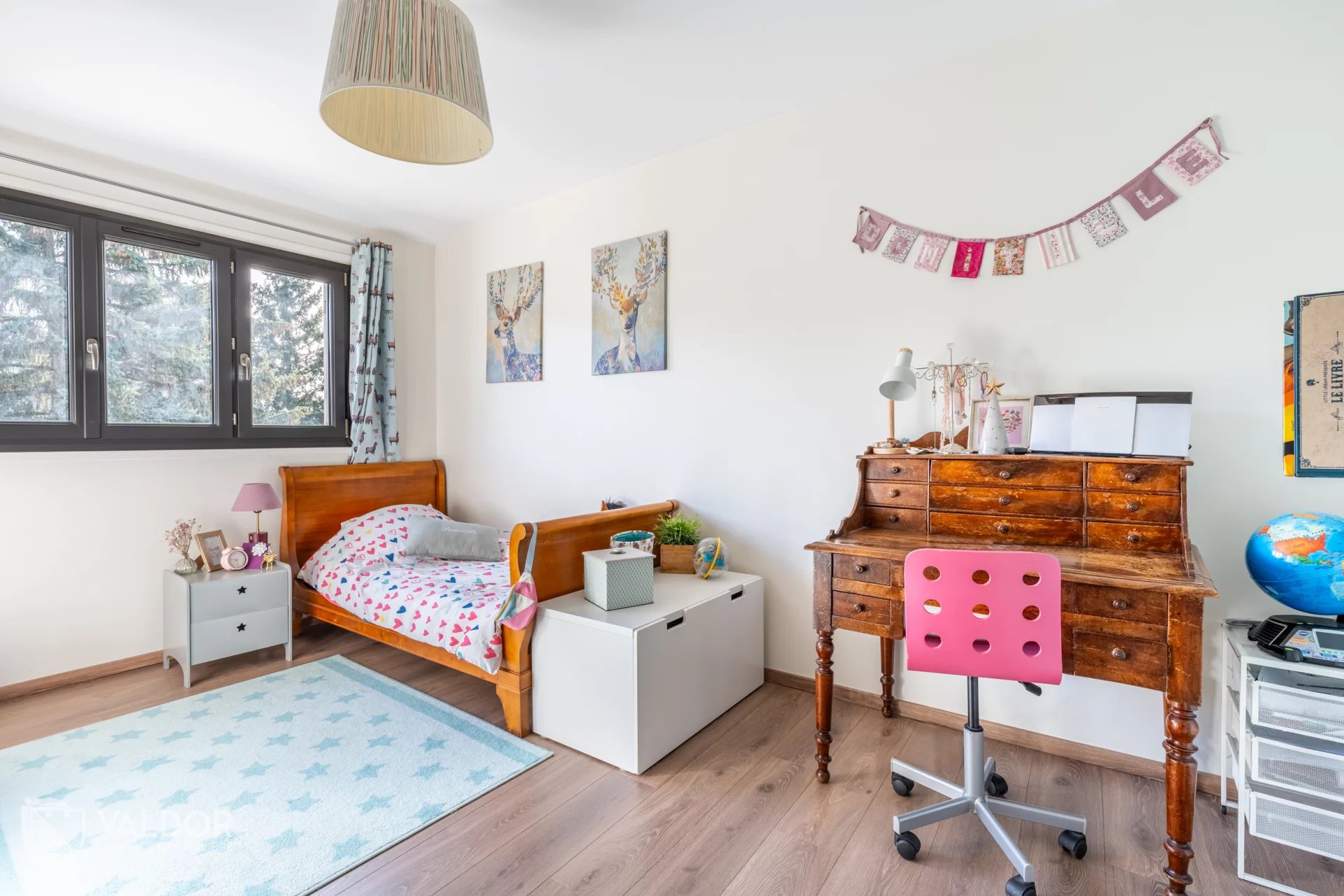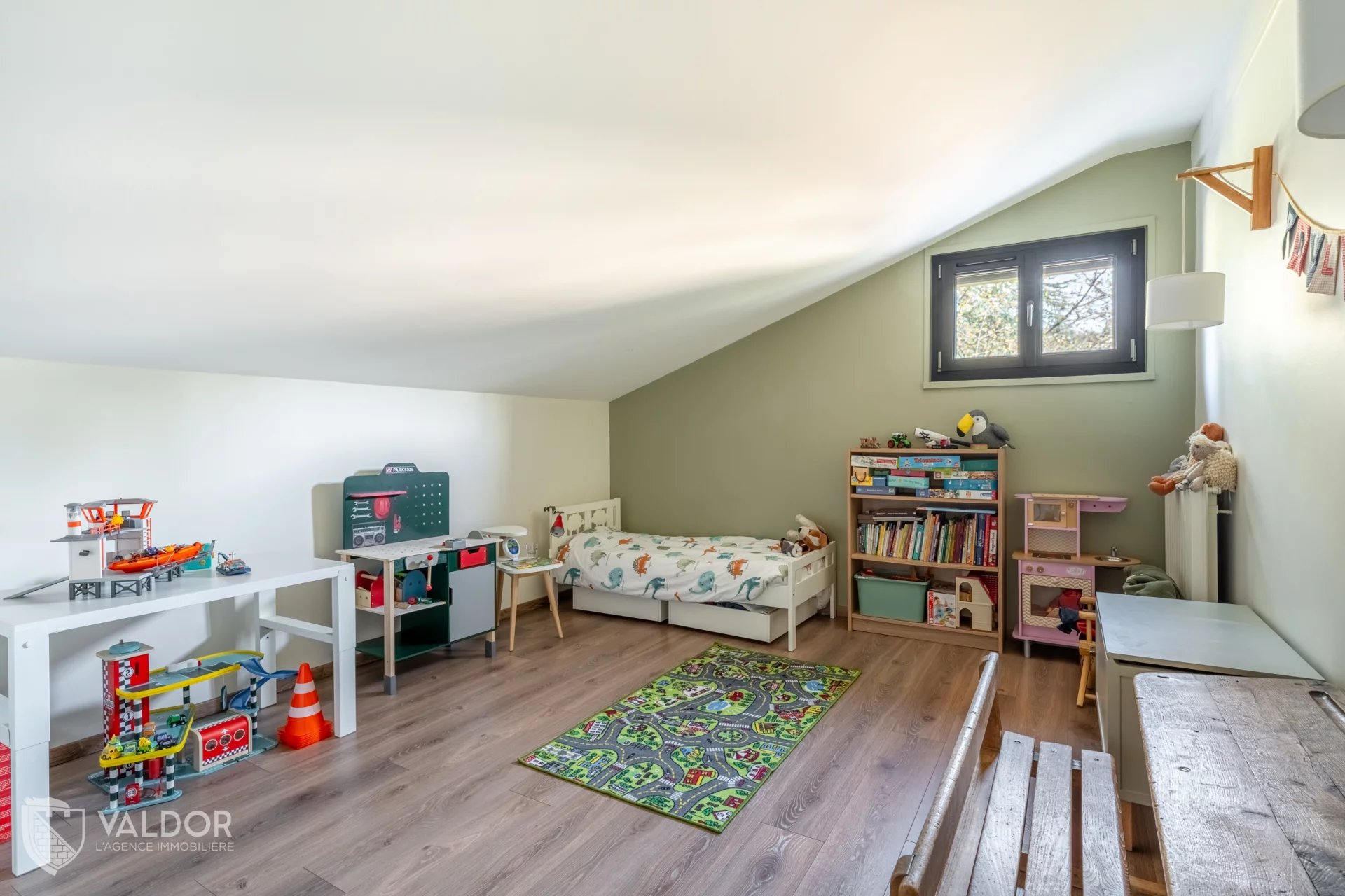 Le niveau de plain-pied comporte par ailleurs une grande suite parentale équipée d'une salle de bain et d'un vaste dressing (13 m²). Pour vos besoins, cet ensemble se transforme simplement en deux chambres d'enfants.