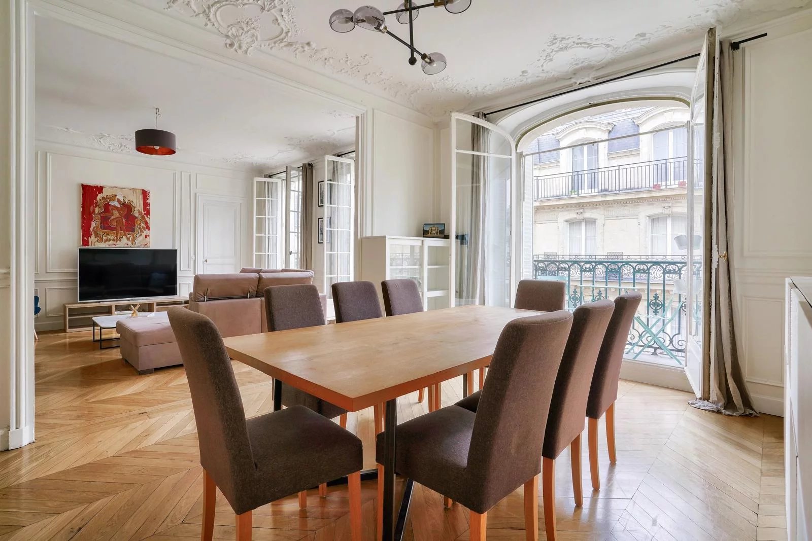 Le séjour lumineux, exposé SUD, idéal pour recevoir, s'ouvre sur une salle à manger conviviale, et plusieurs balconnets.