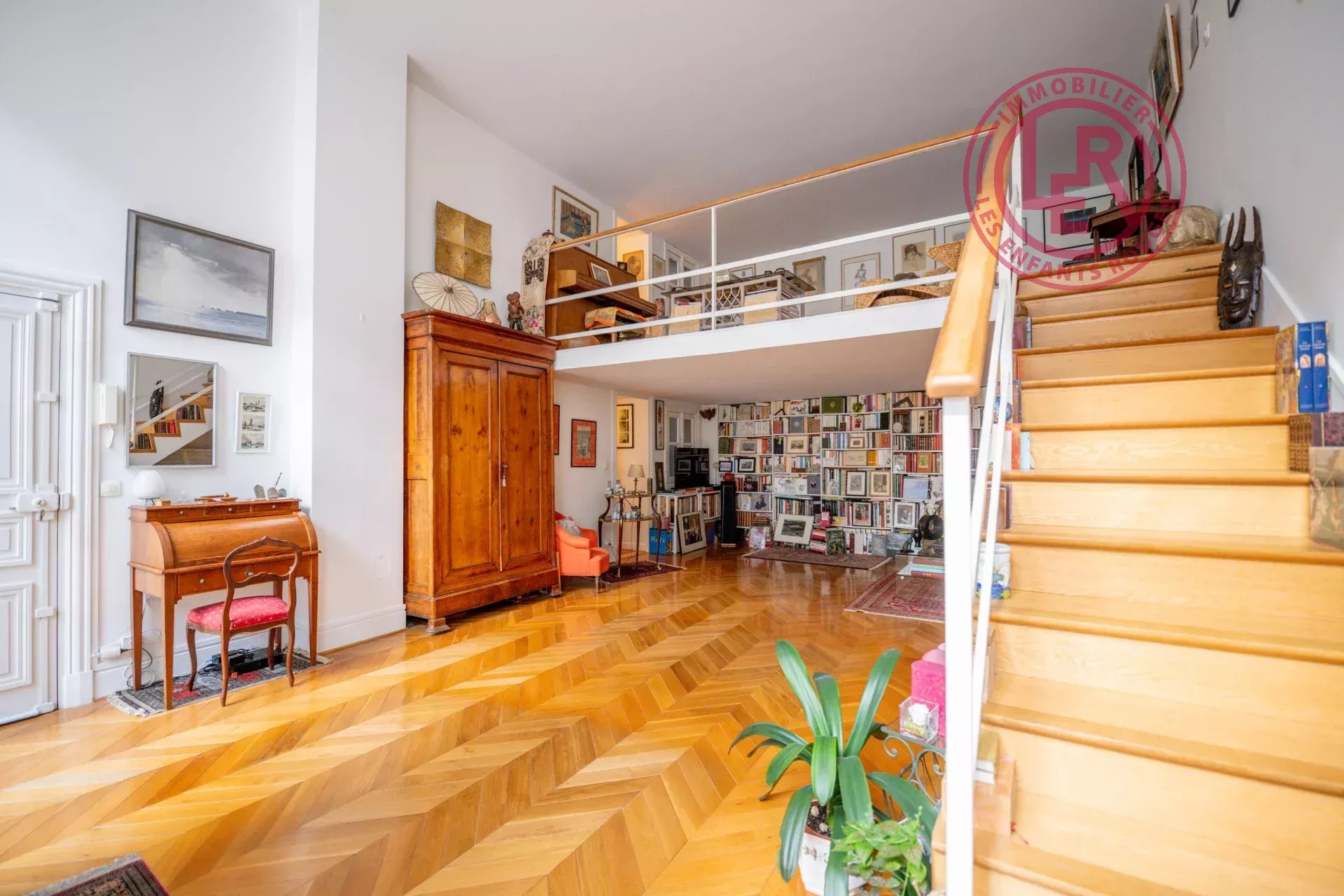 Prestations : Immeuble entièrement rénové (façades récentes), Parquet en chêne massif en pointe de Hongrie, Bibliothèque sur mesure, Gardien à demeure, Petit jardin au sein de la copropriété,