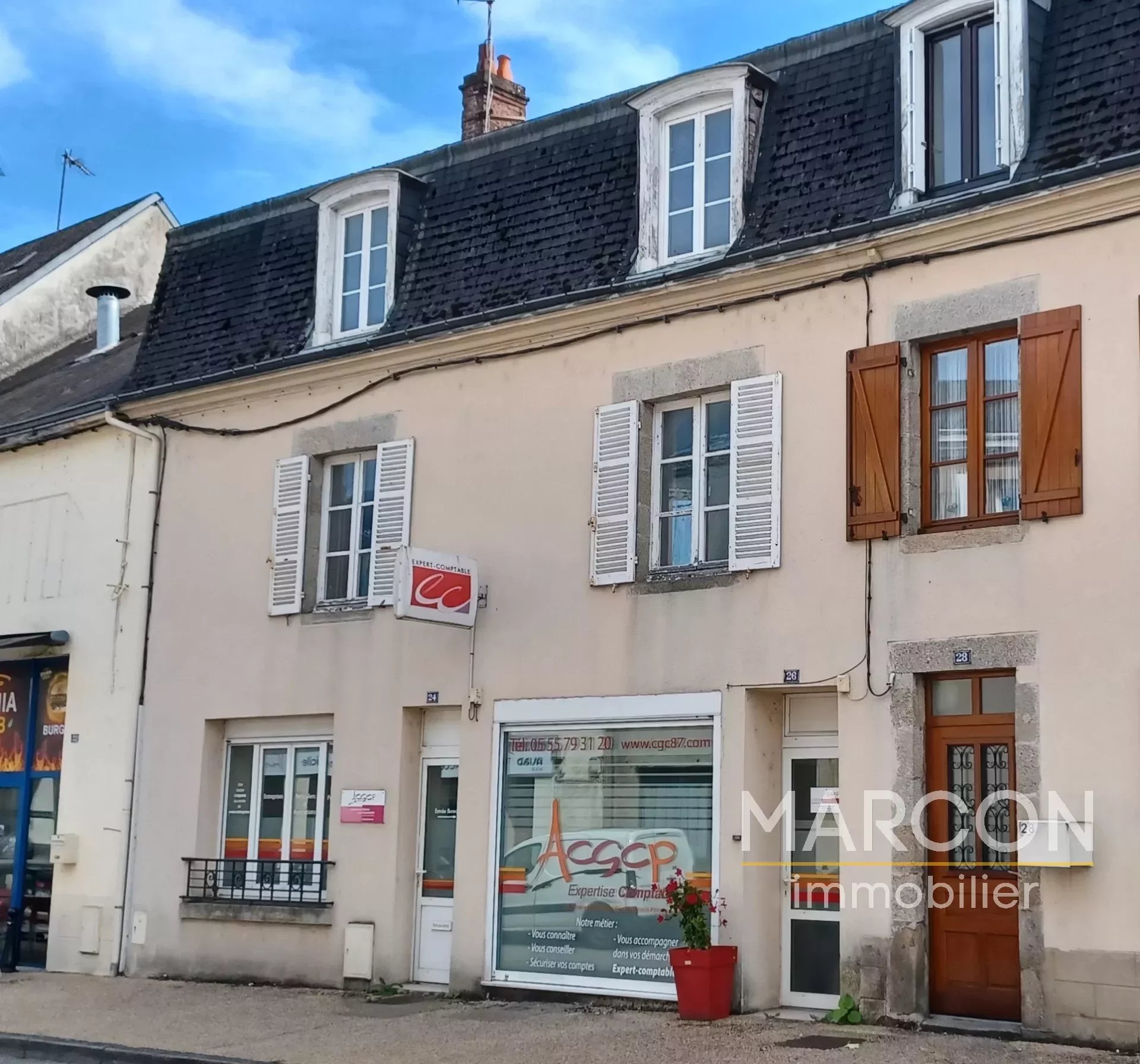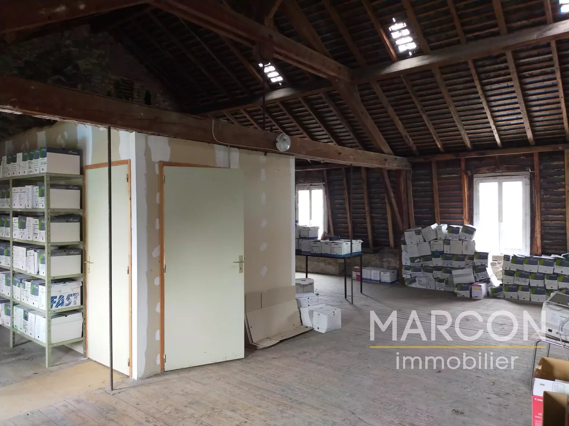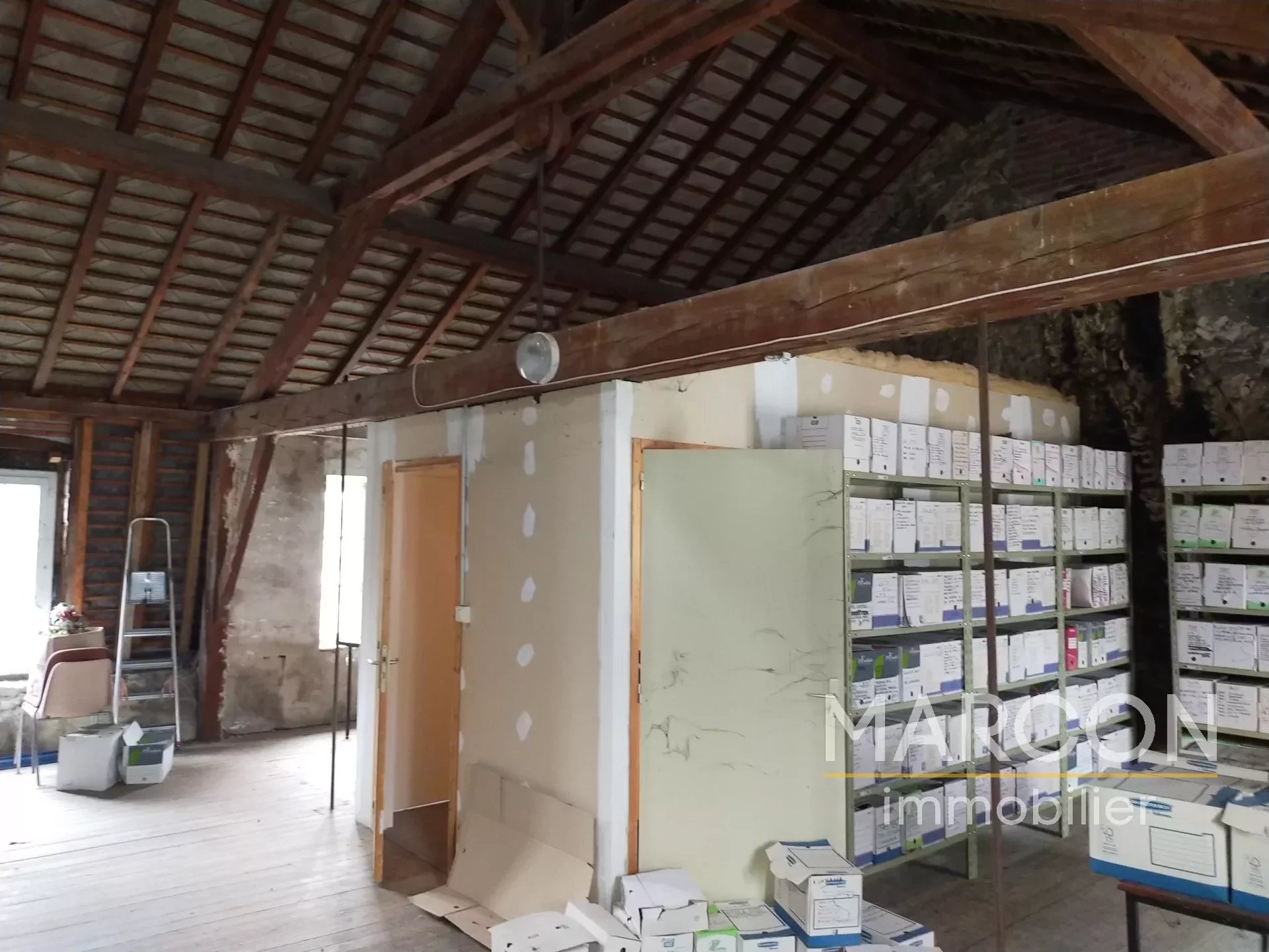 MARCON IMMOBILIER - CREUSE EN LIMOUSIN - REF 89176 - CENTRE-VILLE LA SOUTERRAINE - MARCON IMMOBILIER vous propose en exclusivité cet immeuble comprenant actuellement, au rez-de-chaussée, deux grands bureaux, une cuisine donnant sur une cour privée et des toilettes. Au 1er étage : palier desservant quatre autres bureaux. Au 2ème étage : un grand grenier aménageable de près de 70 m². Cour privée à l'arrière avec accès à une cave. PRIX : 88 000 € (honoraires à la charge du vendeur). Marcon immobilier - La Souterraine - 05-55-63-09-92 Réseau de 3 agences en Creuse : Aubusson - Guéret - La Souterraine. Les informations sur les risques auxquels ce bien est exposé sont disponibles sur le site GéoRisques : georisques.gouv.fr