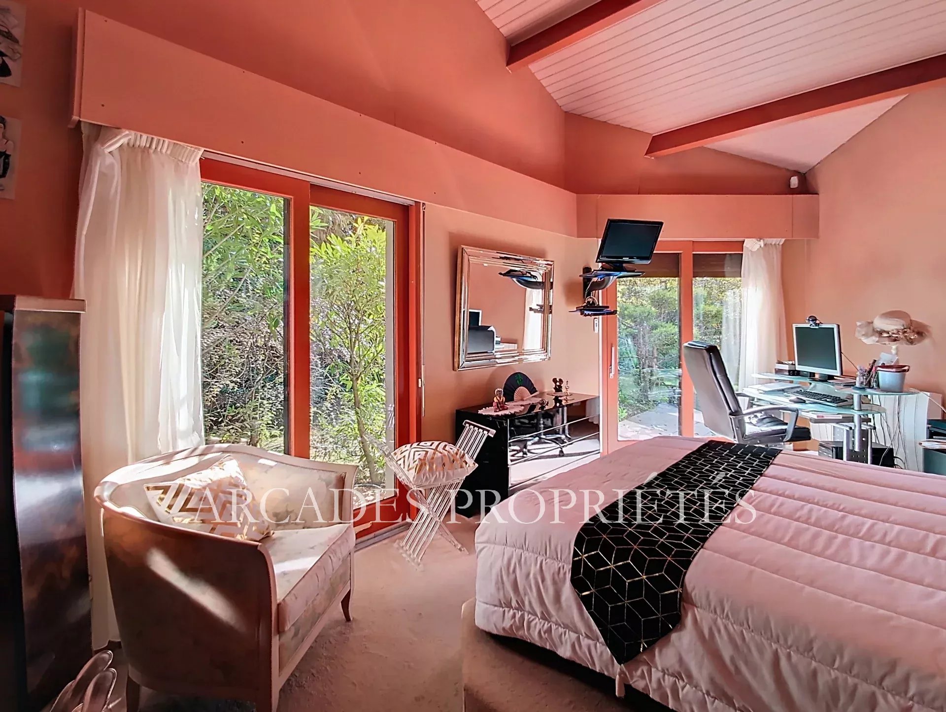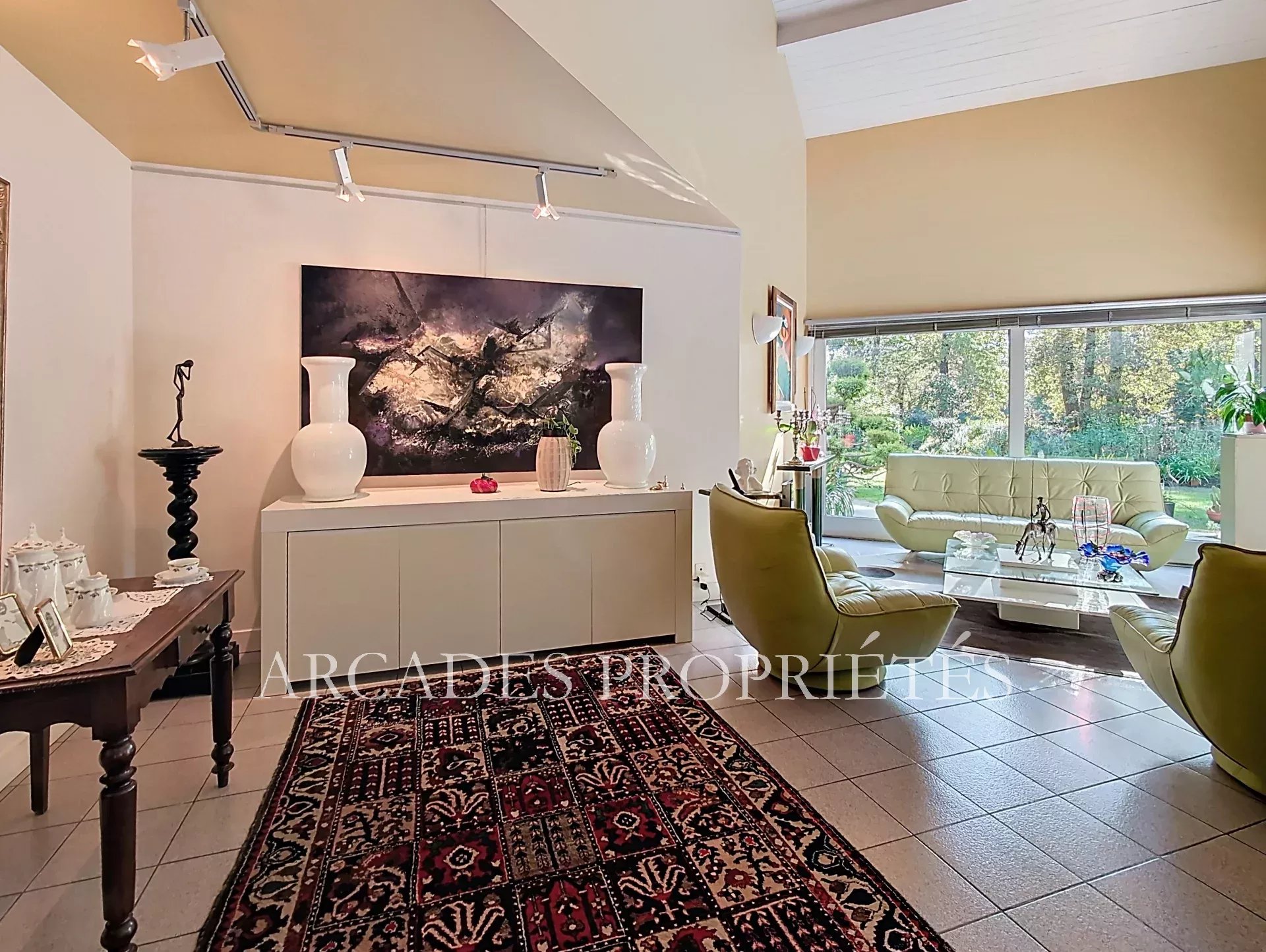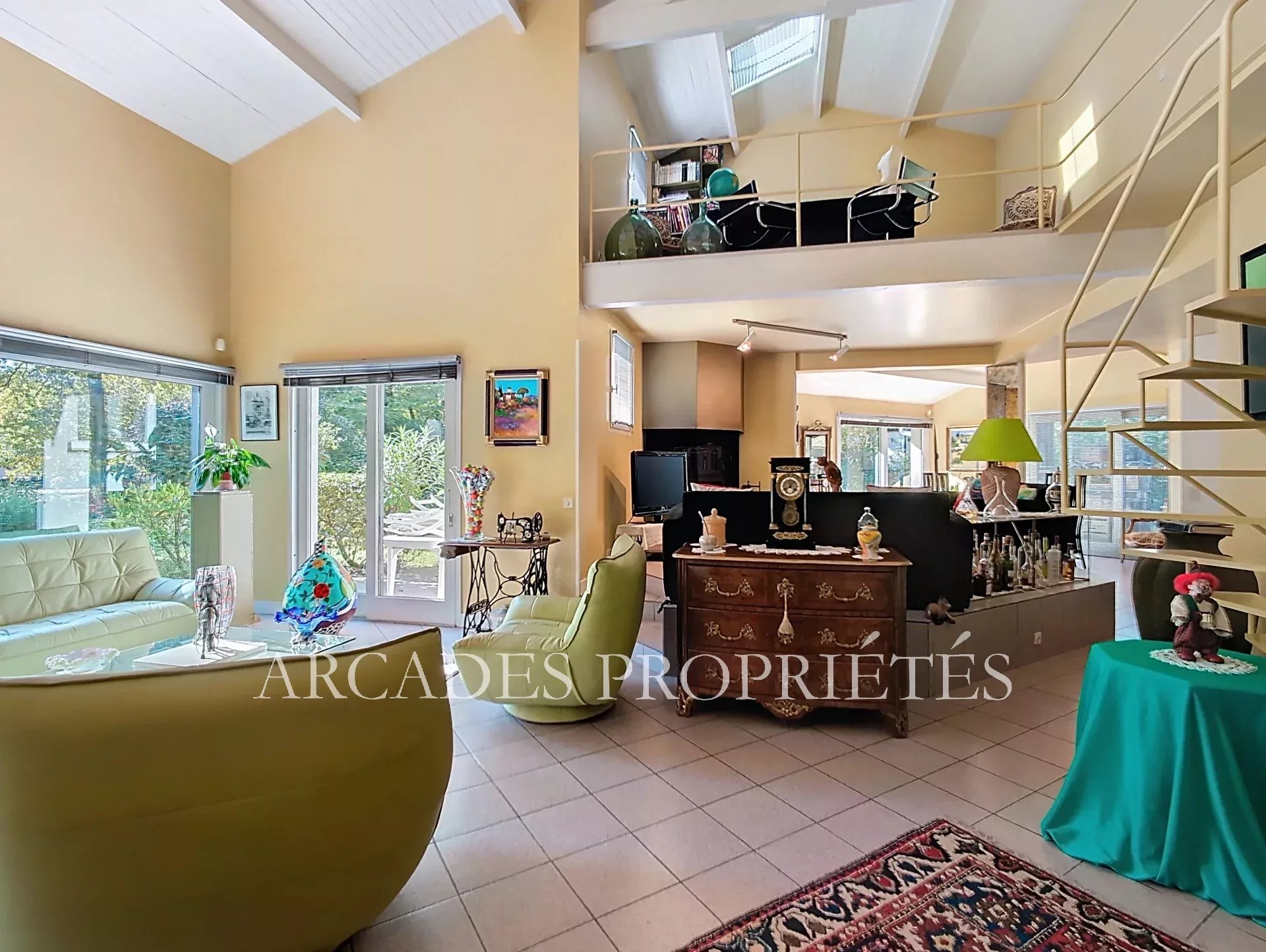 MAISON INDIVIDUELLE au coeur de la résidence privée et sécurisée du golf de Cameyrac. Cette élégante maison d'architecte est édifiée sur une parcelle de plus de 2400m², avec jardin paysager et arboré .La maison , de près de 160m² habitables bénéficie d'une luminosité intérieure exceptionnelle de part sa conception en salon décloisonné, son orientation et ses grandes surfaces vitrées. La maison comprend un grand salon -salle à manger avec espace cheminée, une grande mezzanine pour un coin bureau-bibliothèque, une cuisine indépendante et bien équipée avec grand cellier, une suite parentale avec salle de bains privative, une seconde chambre avec sa salle d'eau attenante, un garage et carport. Possibilité d'extension pour création d'espace de vie ou chambres supplémentaires. Environnement très agréable et calme dans la résidence du golf de Cameyrac. Vous pourrez profiter de deux parcours de golf, d'un tennis, d'un centre équestre .. Le domaine sécurisé du Golf de Cameyrac et à seulement 15 kms de Bordeaux et à seulement 3 kms des commerces de proximité, écoles et gare SNCF. Nous aurons à coeur de vous présenter la résidence du Golf et ses 2 golfs que nous connaissons parfaitement . ARCADES PROPRIETES de St Sulpice et Cameyrac