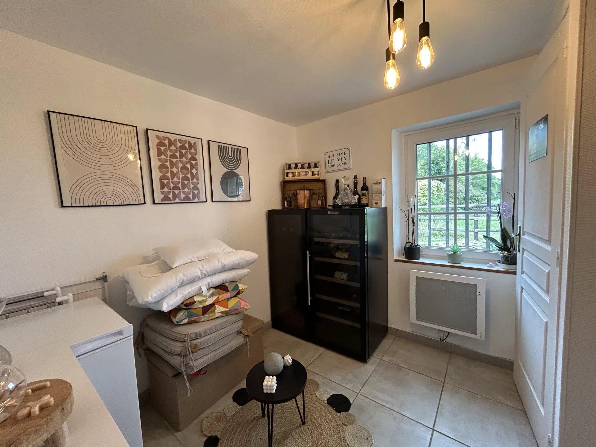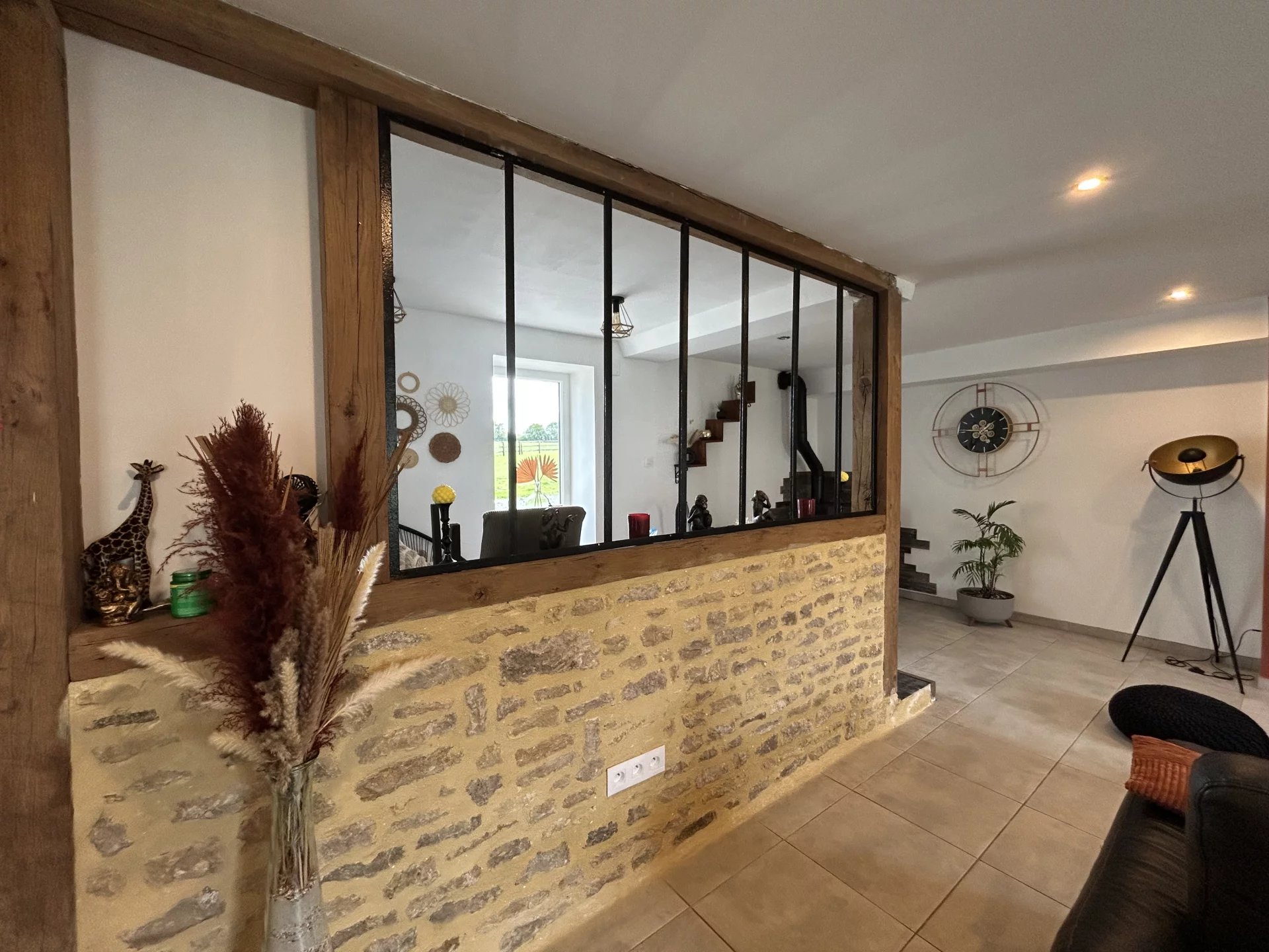 A proximité du Haras du Pin, à seulement 5 kilomètres du Merlerault, charmante maison ancienne récemment et totalement restaurée avec goût et matériaux de qualité offrant sur 121 m² et deux niveaux: au rez-de-chaussée, une entrée desservant un vaste salon-salle à manger avec un poêle à granulés, une cuisine équipée et américaine ouverte sur le séjour, une lingerie, un wc; à l'étage, un palier desservant 4 chambres, une salle d'eau et un wc. Cette maison agréable et lumineuse dispose d'un appartement indépendant composé d'une pièce à vivre avec cuisine, salon et salle à manger et à l'étage : une suite parentale avec douche et toilette (possibilité de l'utiliser en gîte ou de le louer). Jardin clos de 2300 m² avec deux garages. Proche de toutes les commodités. A 30 minutes en voiture de l'Aigle (gare avec liaisons régulières vers et depuis Paris) et 35 kilomètres de Mortagne au Perche.