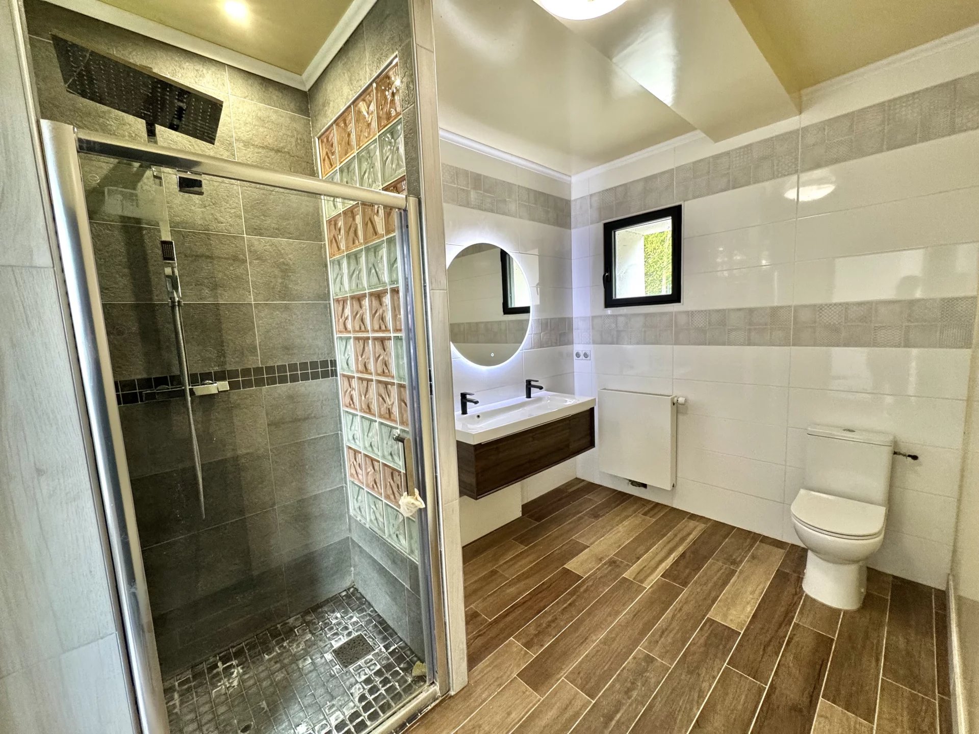 La maison vous offre : entrée sur un vaste séjour de 80 m2, cuisine aménagée et équipée, 2 chambres en RDC avec salle d'eau, 2 wc, buanderie, 2 mezzanines aménagées et exploitables pour des chambres supplémentaires.