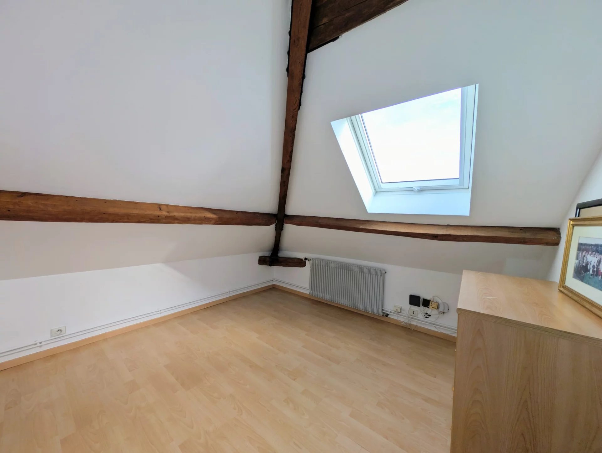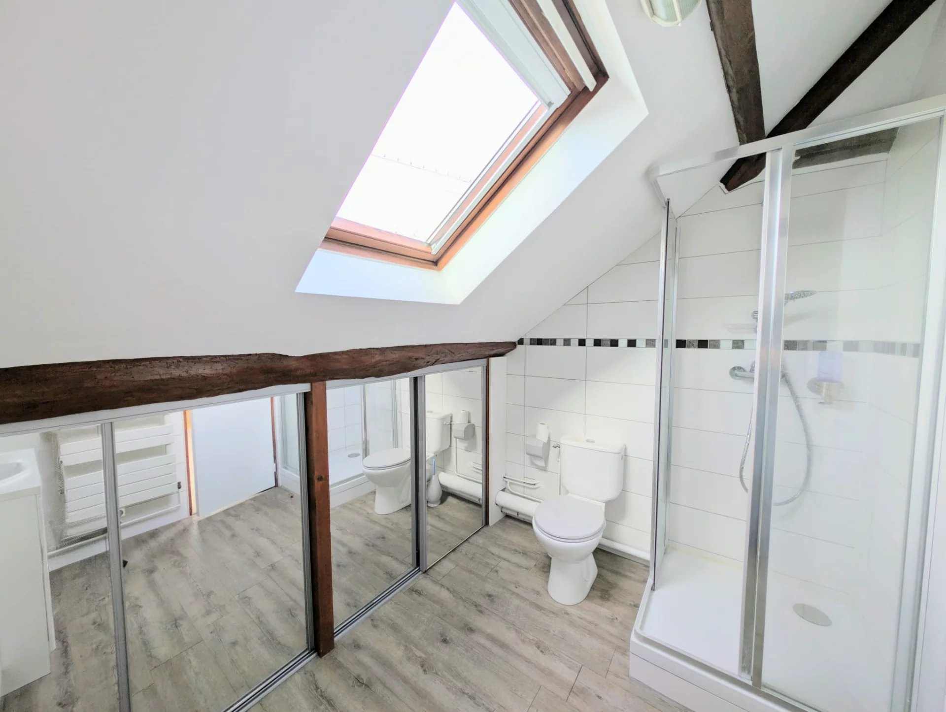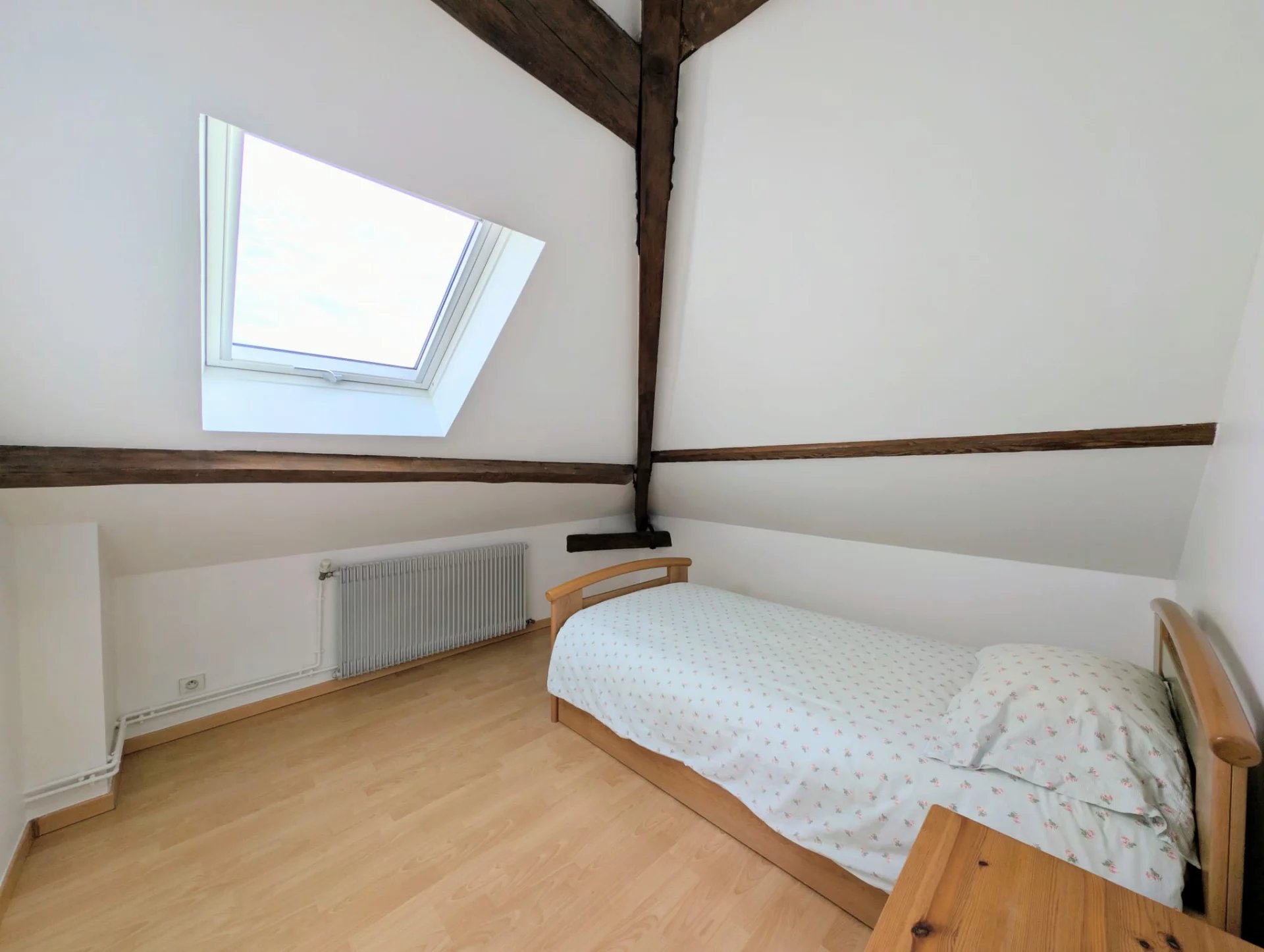 Le palier dessert deux chambres spacieuses, dont l’une avec accès à un toit-terrasse, ainsi qu’une salle de bain et des WC séparés.