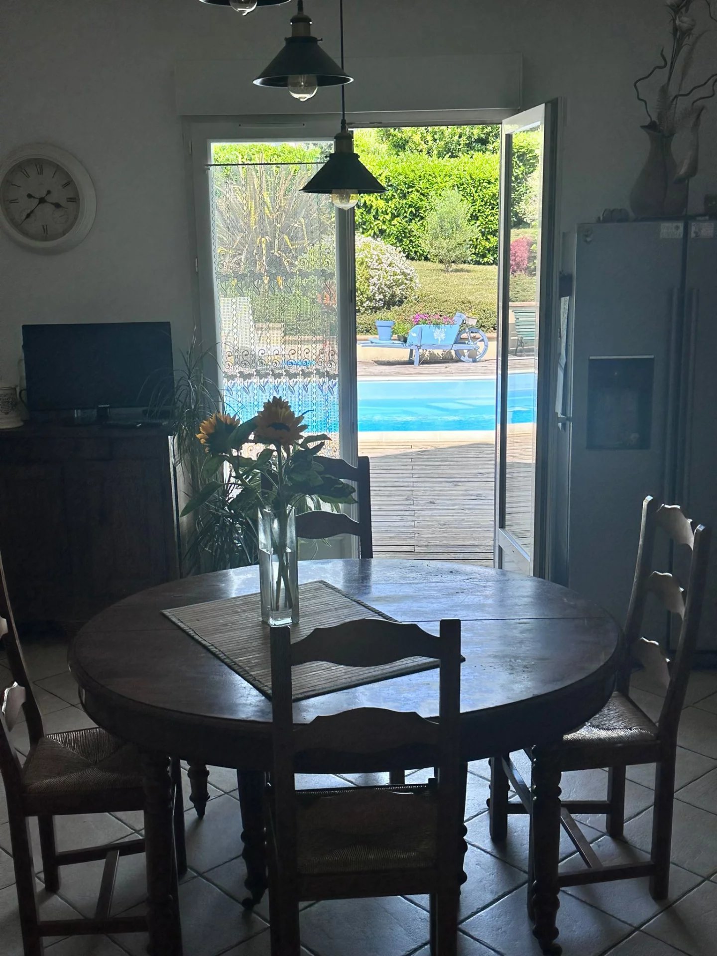 Dans petit domaine privé et avec une magnifique vue dégagée sur la colline, avec les commerces et la plage à 5 minutes en vélo, maison récente et familiale idéale pour projet à l'année ou secondaire avec ses 6 chambres dont deux en rez de chaussée, sa grande cuisine en accès terrasse et piscine, magnifique pièce de vie avec cheminée insert, sous-sol total...À VOIR SANS TARDER !