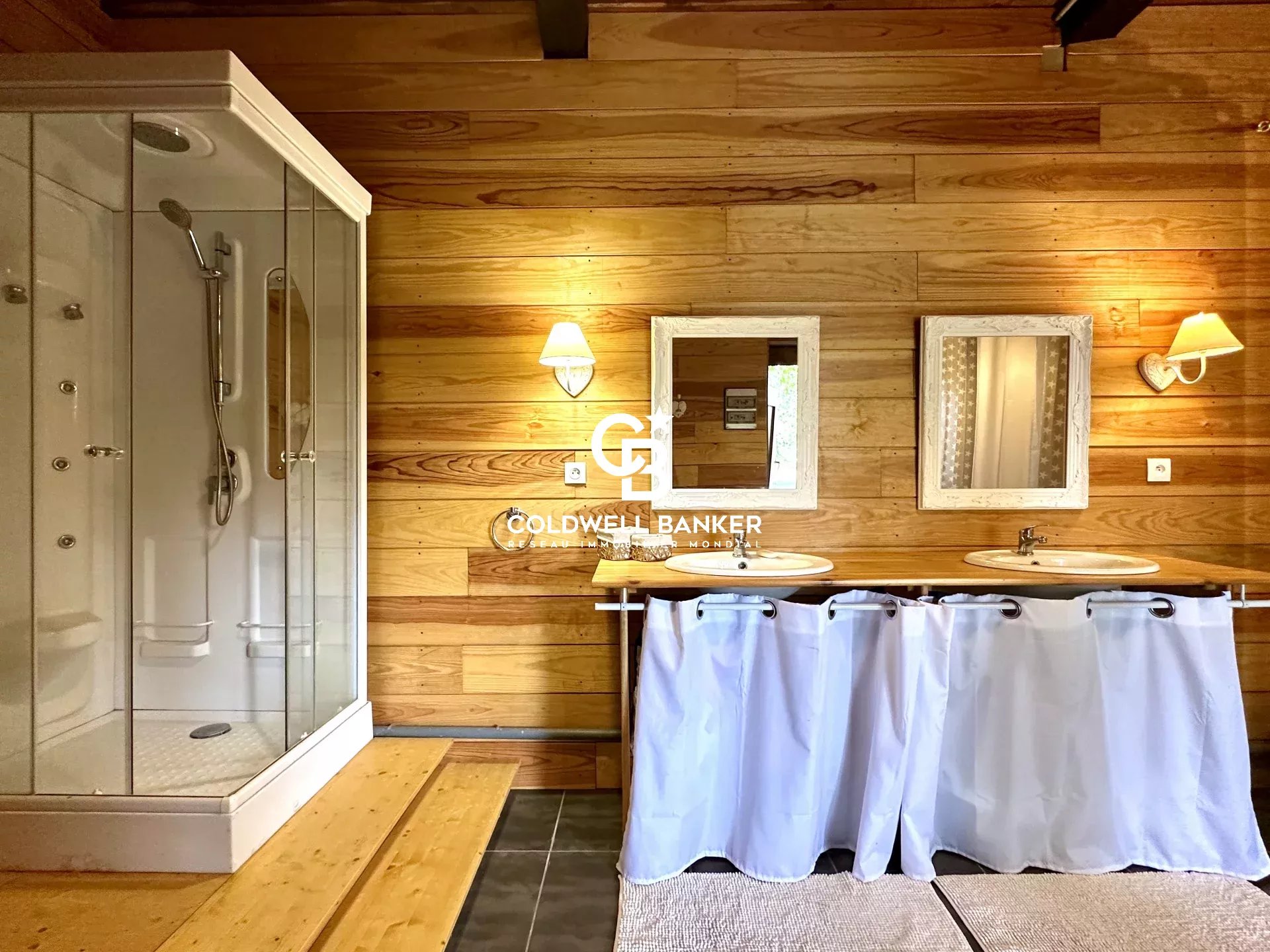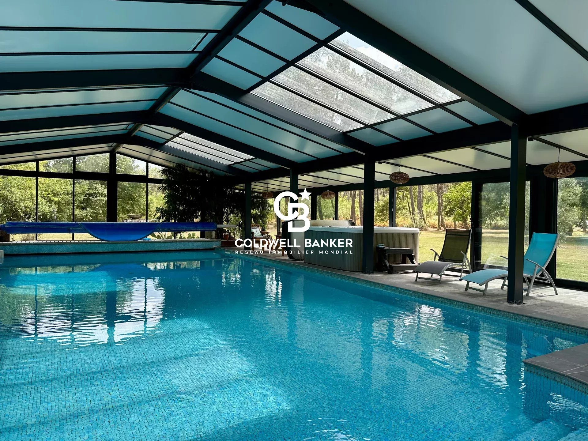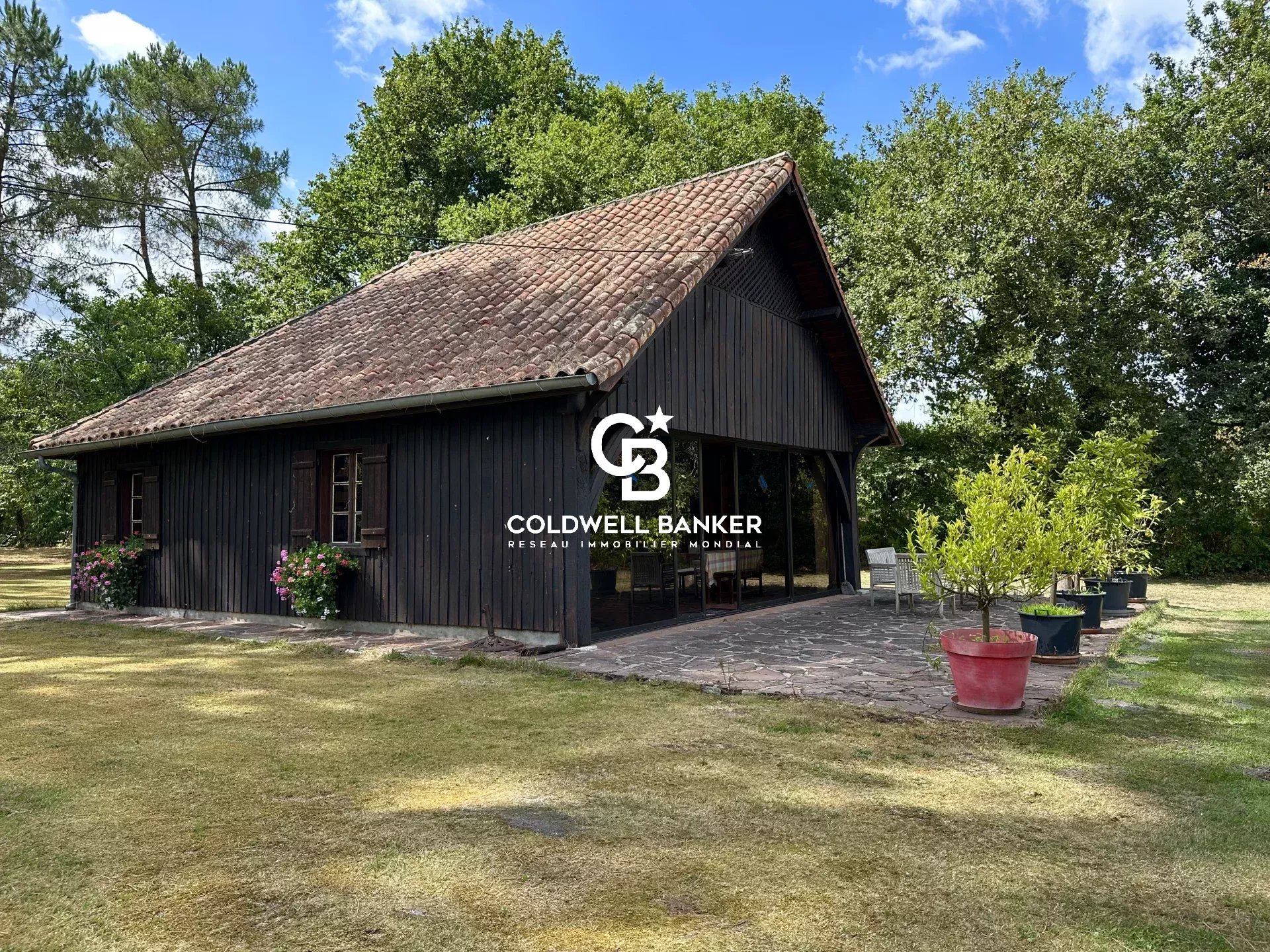 À seulement 35 minutes des plages, au cœur d’un somptueux parc arboré d'un hectare, découvrez cet authentique airial landais, composé de quatre bâtis indépendants.