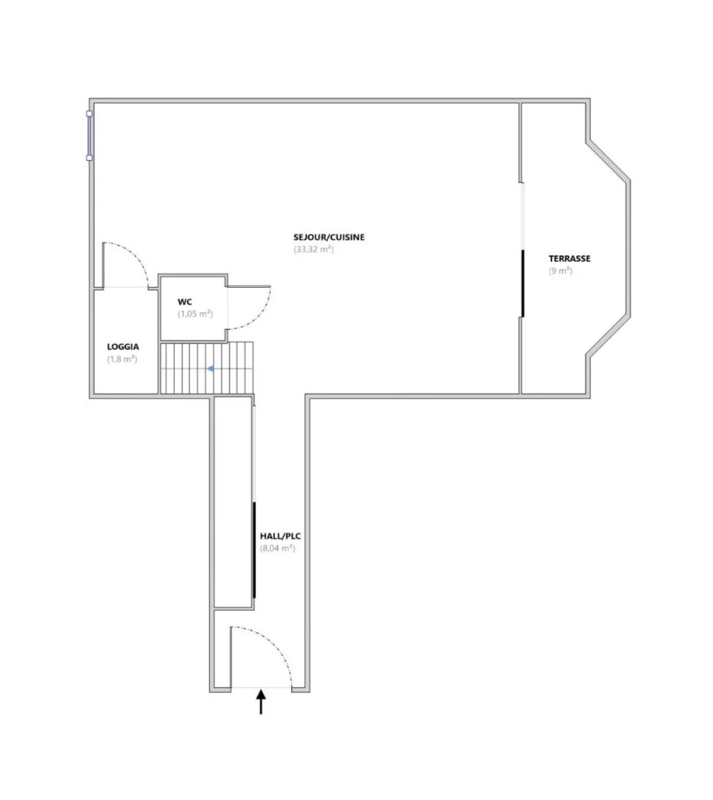 Au premier niveau, un hall d’entrée dessert un séjour spacieux avec cuisine ouverte équipée, un WC indépendant et deux espaces extérieurs :