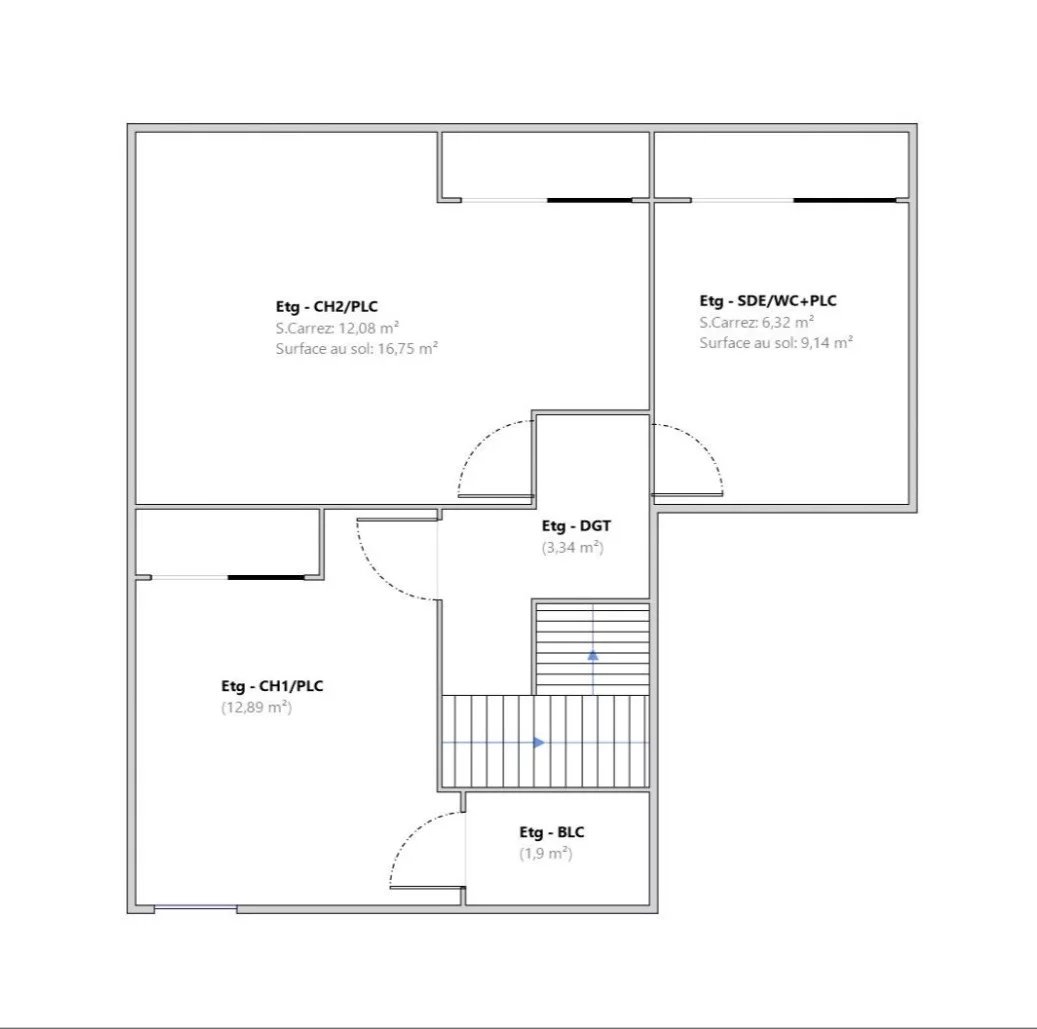 À l’étage, vous trouverez deux chambres confortables dont une avec balcon, ainsi qu’une grande salle d’eau moderne avec WC.