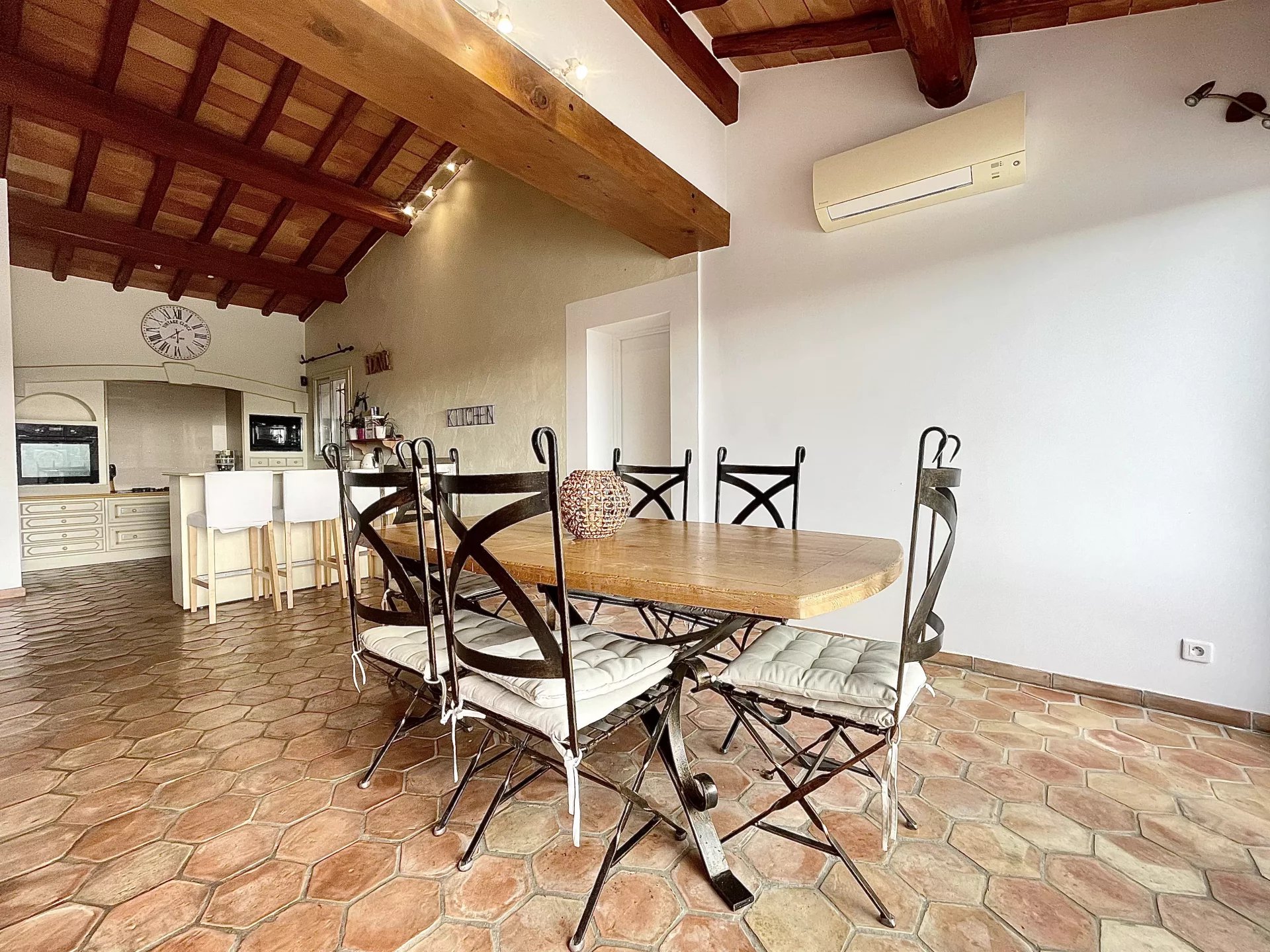 L'extérieur de la maison dont les expositions sont principalement Sud et Ouest, est un véritable havre de paix avec sa terrasse, sa cuisine d’été et sa piscine sans vis-à-vis, ou vous profiterez de vos longues soirées d’été.