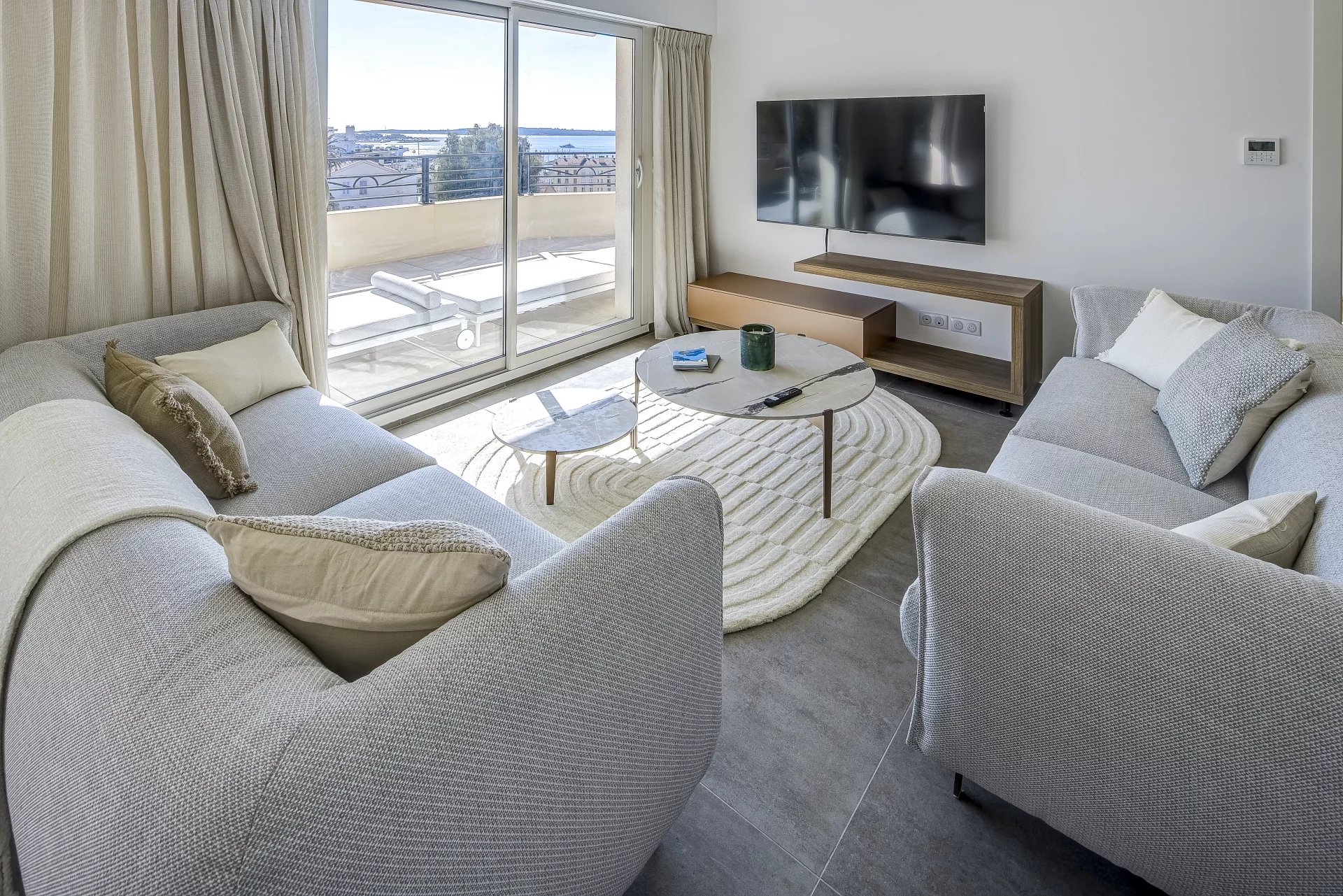 Véritable toit terrasse d'une surface 172 m²et 148 m² de terrasse avec une vue mer panoramique pour ce magnifique appartement rénové et meublé.