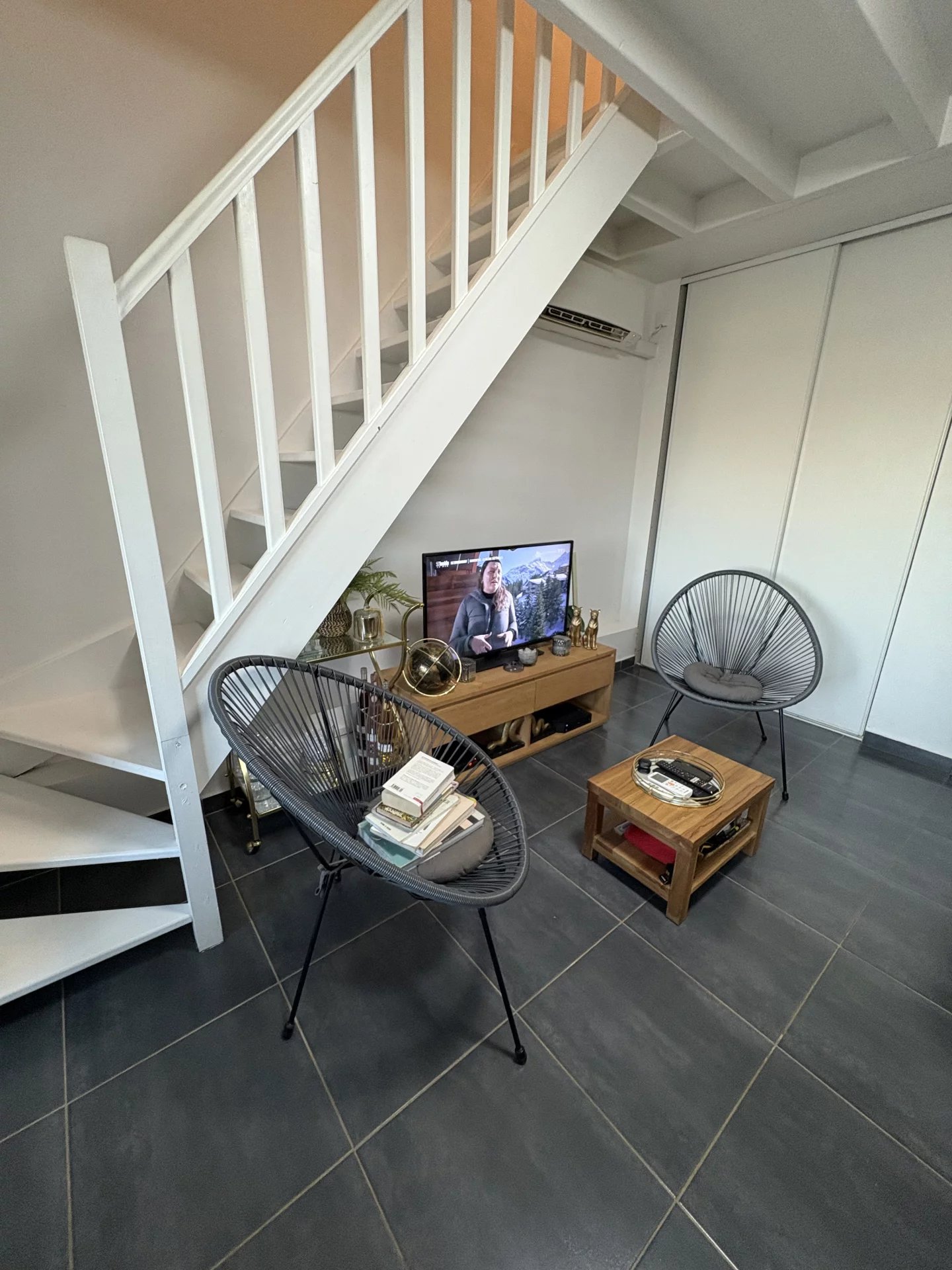Comprenant : 1 dégagement avec placard, 1 salle d'eau avec wc, 1 séjour climatisé, 1 cuisine sur terrasse fermée avec volets roulants , 1 coin buanderie.