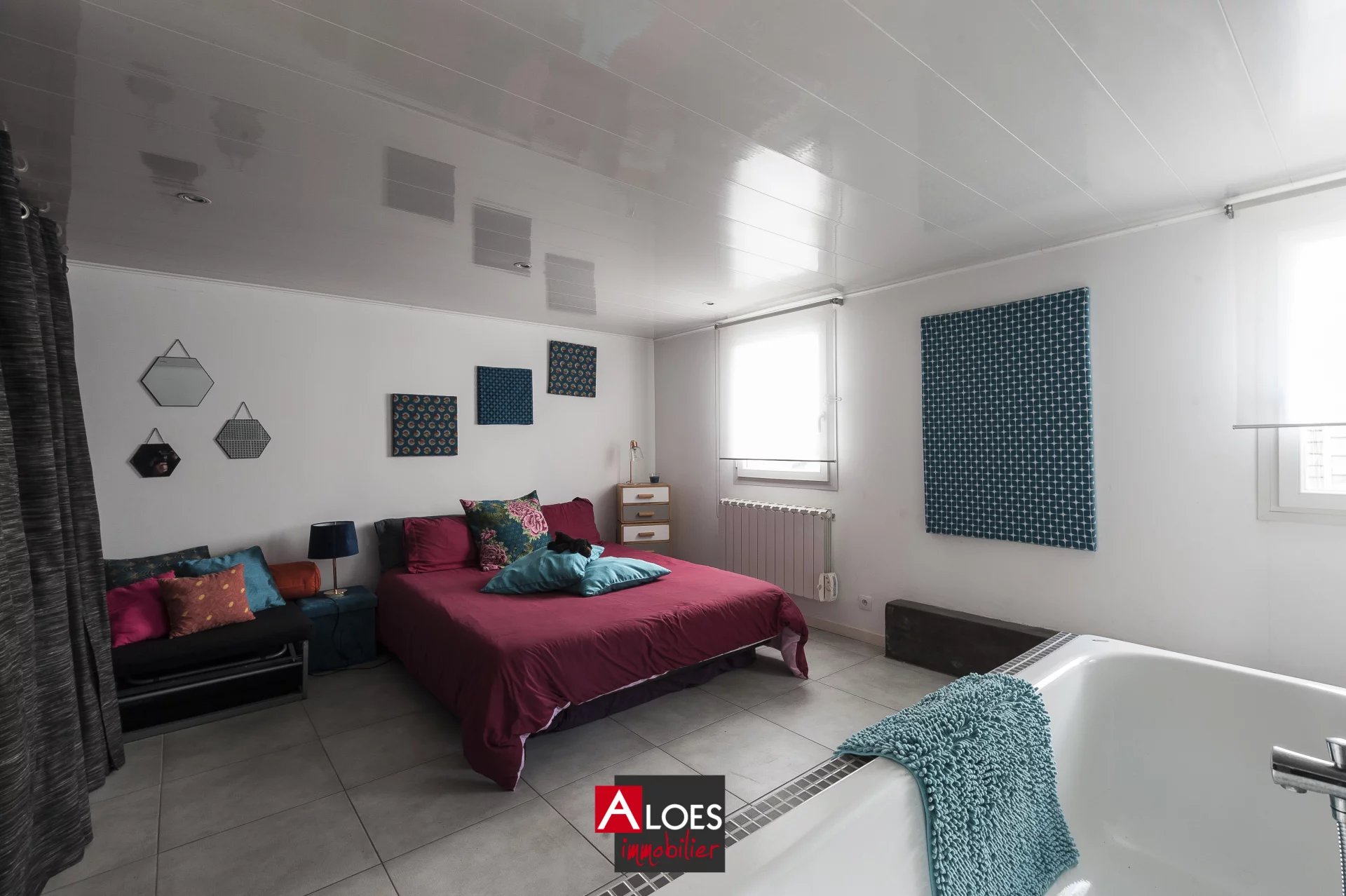 La cuisine équipée, ouverte sur la pièce de vie, crée un espace convivial et cosy, parfait pour recevoir. Au rez-de-chaussée, une chambre supplémentaire avec baignoire et WC, ainsi qu'une buanderie, sont idéales pour accueillir des amis ou envisager une location. Le grand cellier ou atelier offre de nombreuses possibilités de rangement ou d'aménagement pour une activité professionnelle.