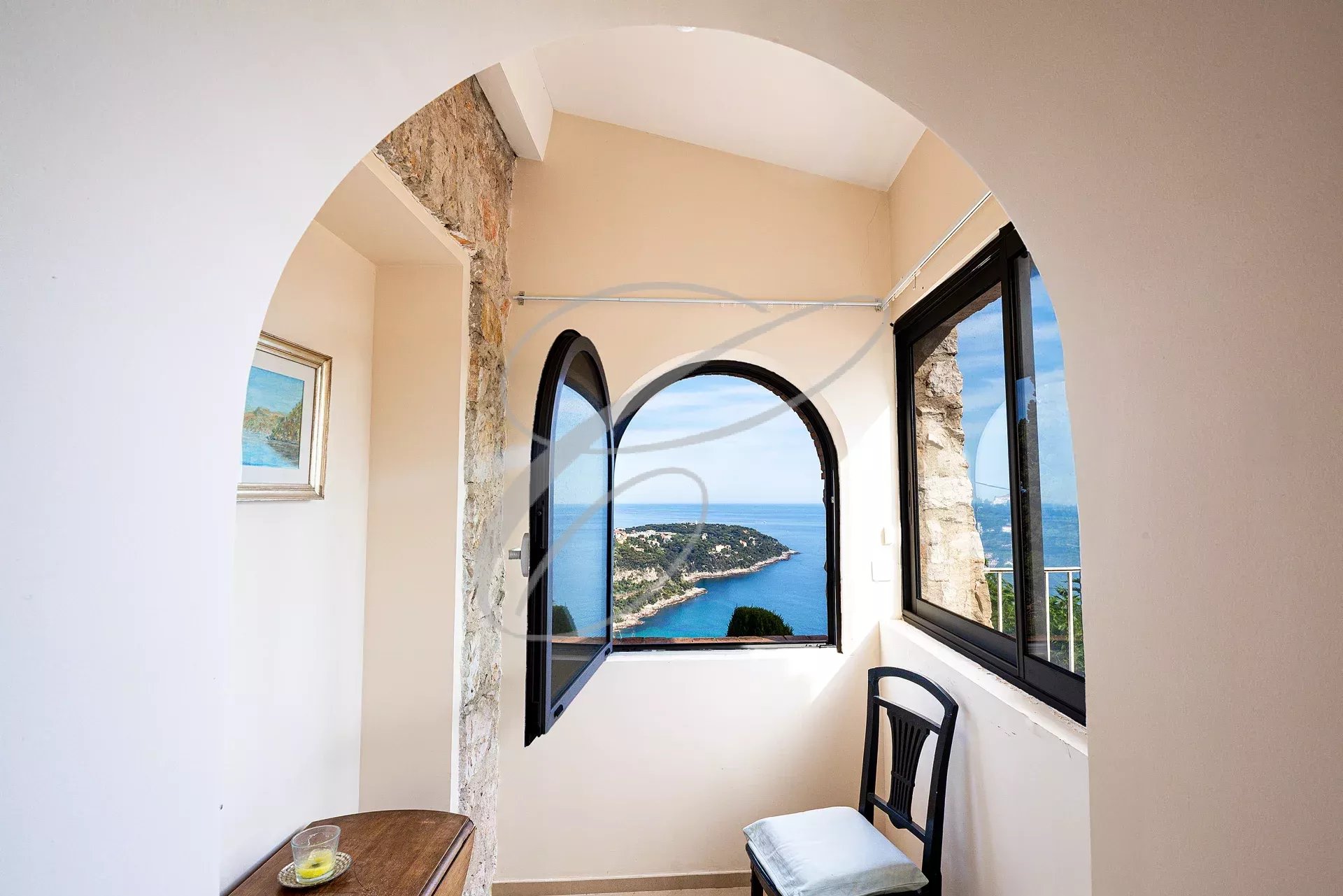 A 1 km de la principauté de Monaco, charmante villa en pierres de taille. Vue mer panoramique. Grand séjour cathédrale, 3 chambres en suite, grande piscine. Appartement de gardien. Deux grands garages pour de nombreuses voitures.