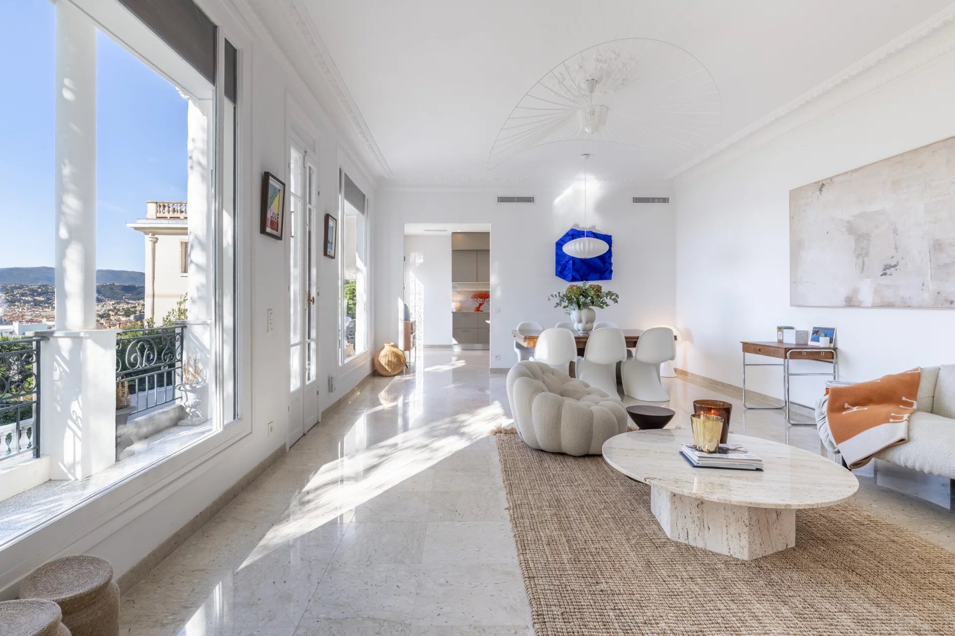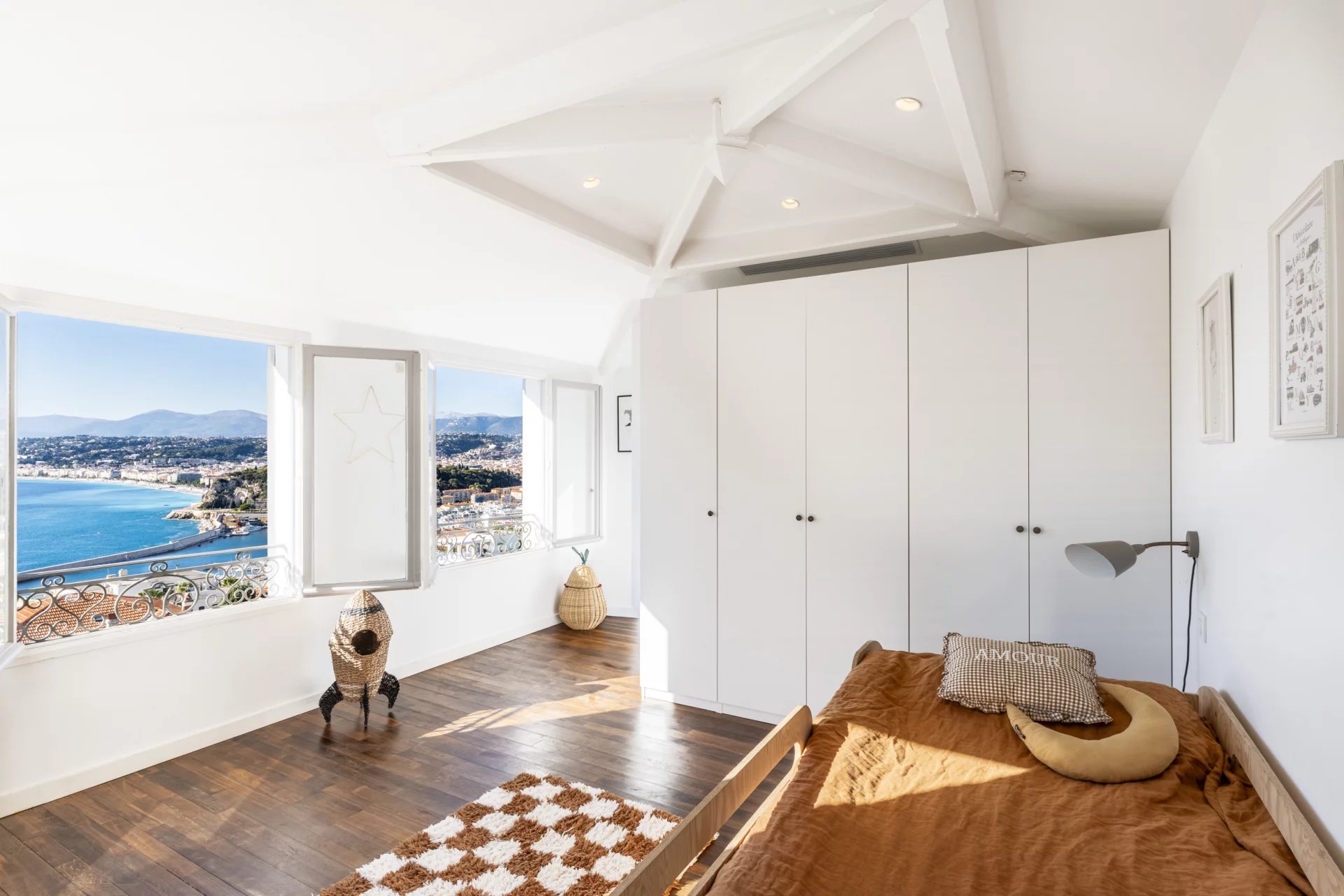 Là où la mer touche le ciel | Refuge Méditerranéen dominant la Baie des Anges. Il existe des maisons que l’on visite… et d’autres que l’on ressent. Accrochée aux hauteurs les plus convoitées du Mont Boron, cette Villa d’environ 230 m² ne se contente pas d’offrir une vue : elle offre un horizon. Celui de la Méditerranée, libre, infini, qui accompagne chaque instant et s’invite dans chaque pièce. Ici, chaque journée ressemble à une carte postale vivante — un éclat de Côte d’Azur capturé entre ciel et mer. Une Villa sculptée par la lumière, la vue et le calme Dès l’entrée, le hall de réception dévoile sa hauteur sous plafond et son élégance naturelle. La lumière s’impose, glisse sur les volumes et révèle, par-delà les baies, une mer qui devient presque décor vivant. Le séjour se prolonge harmonieusement vers une cuisine semi-ouverte — pensée pour des petits-déjeuners face à l’azur ou des soirées conviviales entre amis. Des suites pensées comme des refuges Imaginée comme une retraite confidentielle, la villa offre quatre chambres en suite, chacune avec douche et WC, assurant à chaque invité confort et intimité digne d’un boutique-hôtel. Coucher du soleil sur le toit & chuchotements au bord de l’eau. À l’étage, le toit-terrasse de 100 m² devient un salon à ciel ouvert. Au lever du soleil, il est espace de yoga, souffle ancré dans la mer. Au crépuscule, il se transforme en scène magique pour des dîners aux chandelles sous un ciel rose et or. Plus bas, le coin piscine accueille les confidences de fin d’après-midi, les rires partagés et les silences qui apaisent. Une maison qui accueille… sans jamais se dévoiler. Studio indépendant avec cuisine en rez-de-jardin : pour des invités autonomes, un adolescent en quête d’espace ou du personnel discret. Buanderie, rangements, cave — parce que le luxe, c’est aussi la fluidité du quotidien Garage et plusieurs stationnements privés — rareté précieuse sur les hauteurs. Accès privilégié au Parc Forestier du Mont Boron, pour les balades du matin, les joggings à l’ombre des pins et les couchers de soleil à deux ou en famille. Une villa qui ne cherche pas à impressionner — mais qui marque au cœur. Un lieu de vie pour ceux qui recherchent un luxe sensible, fait de lumière, de nature, de vue et de moments vrais.