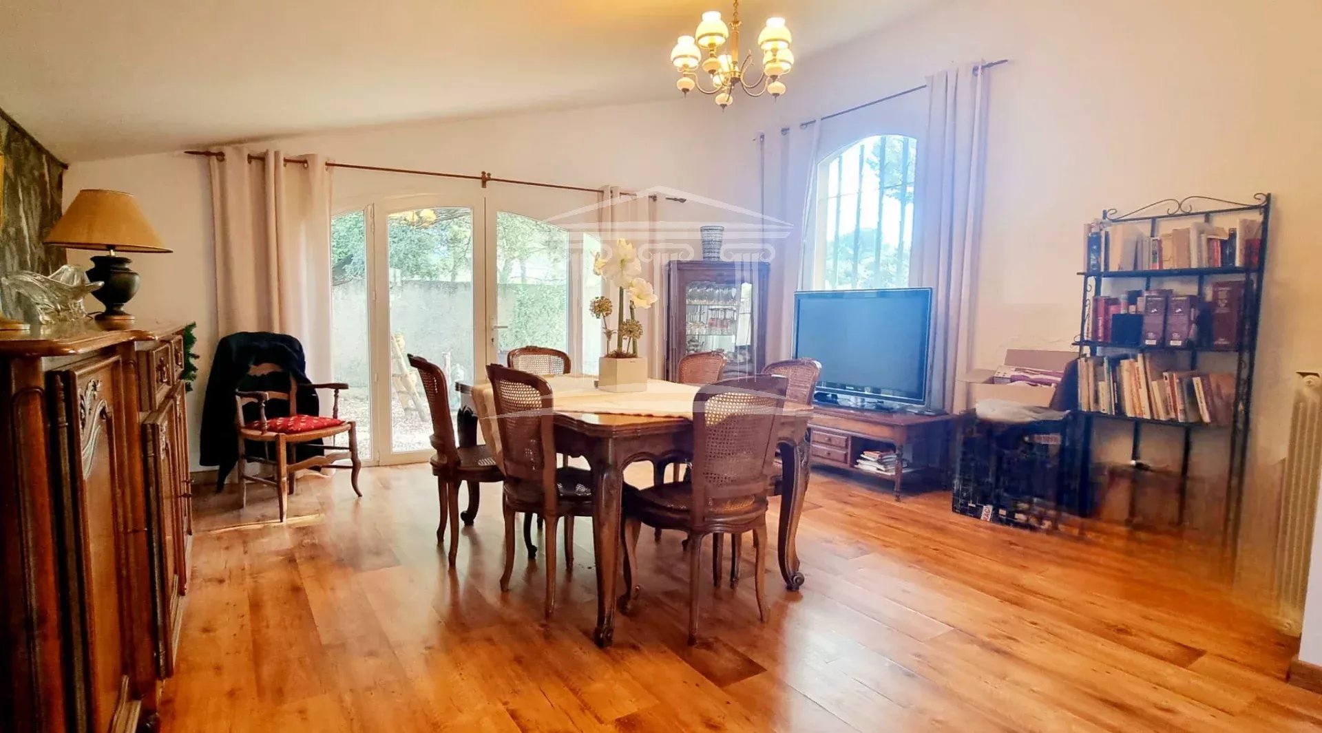 Sorgues limite Châteauneuf du pape magnifique maison de construction traditionnelle, parfaitement entretenue offrant de beaux volumes. Elle se compose d'un vaste hall d'entrée, un agréable séjour lumineux, un salon de plus de 40 m², cuisine indépendante équipée et conviviale, 3 chambres, une grande salle de bain avec douche et baignoire, wc indépendant et un espace cellier avec placards.