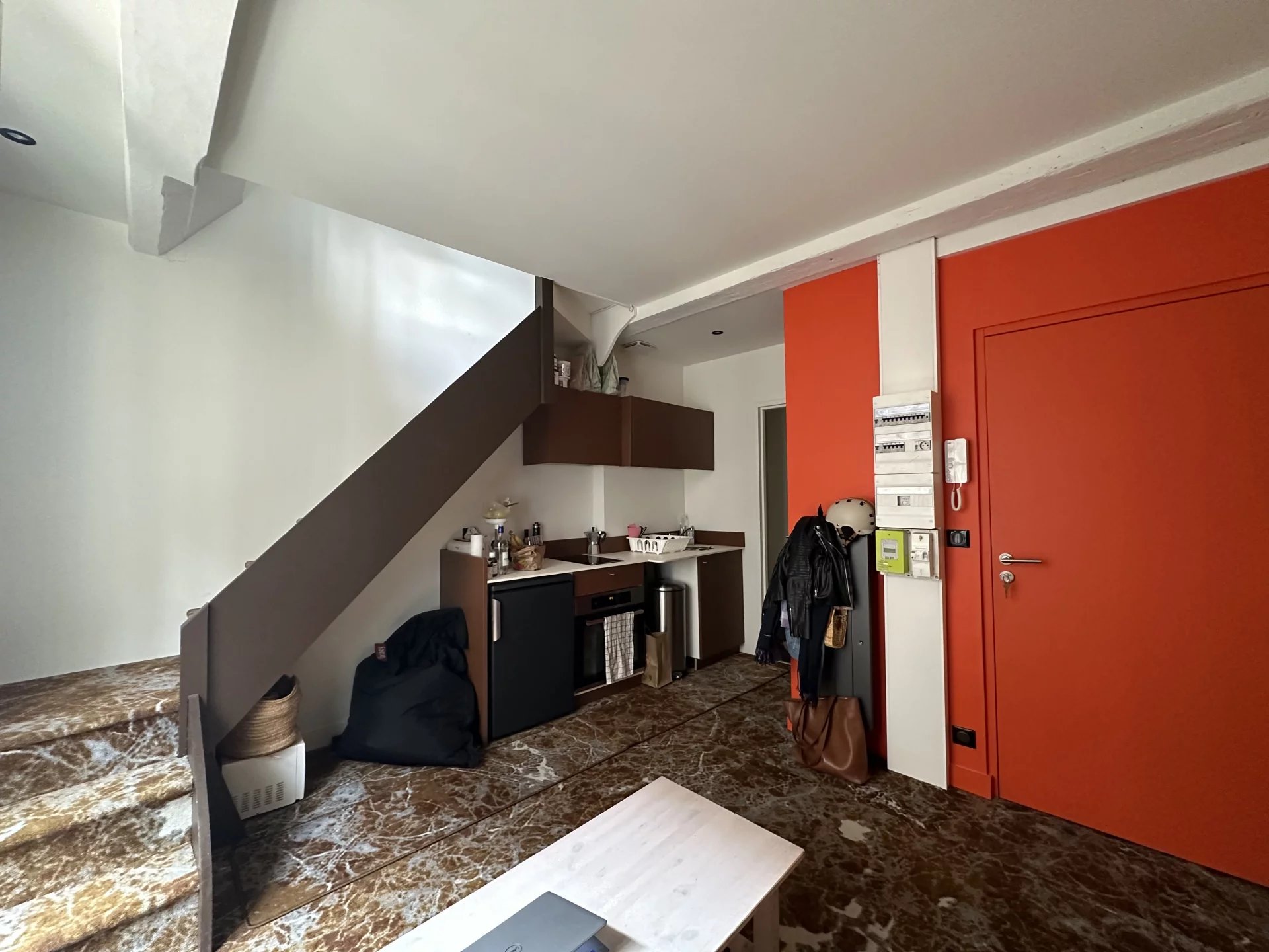 Appartement MEUBLÉ de type T2 en duplex, situé dans une petite rue au coeur du quartier St Paul du centre de BORDEAUX.