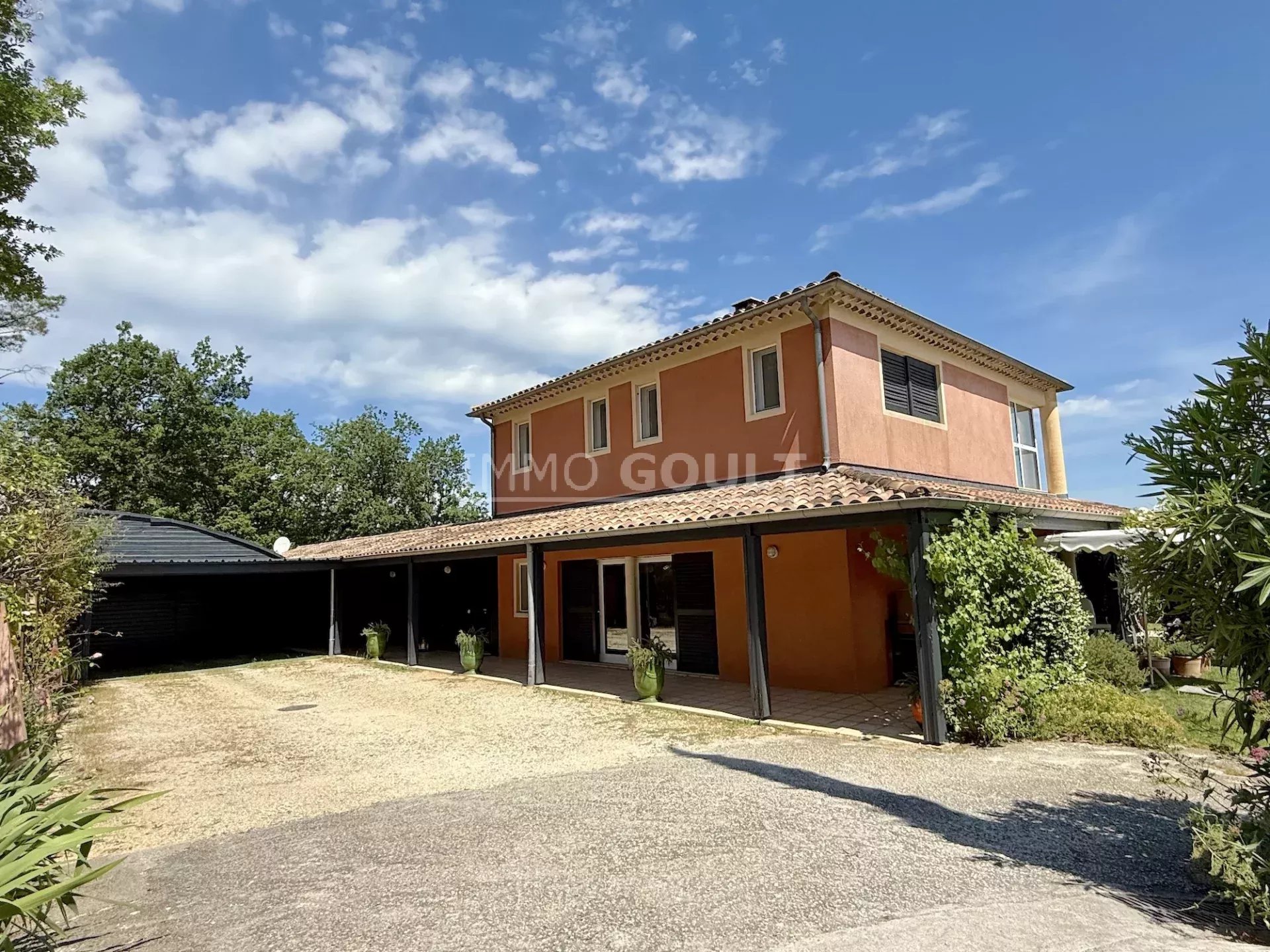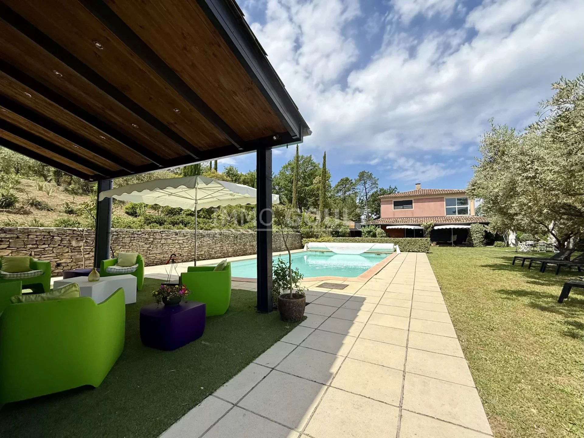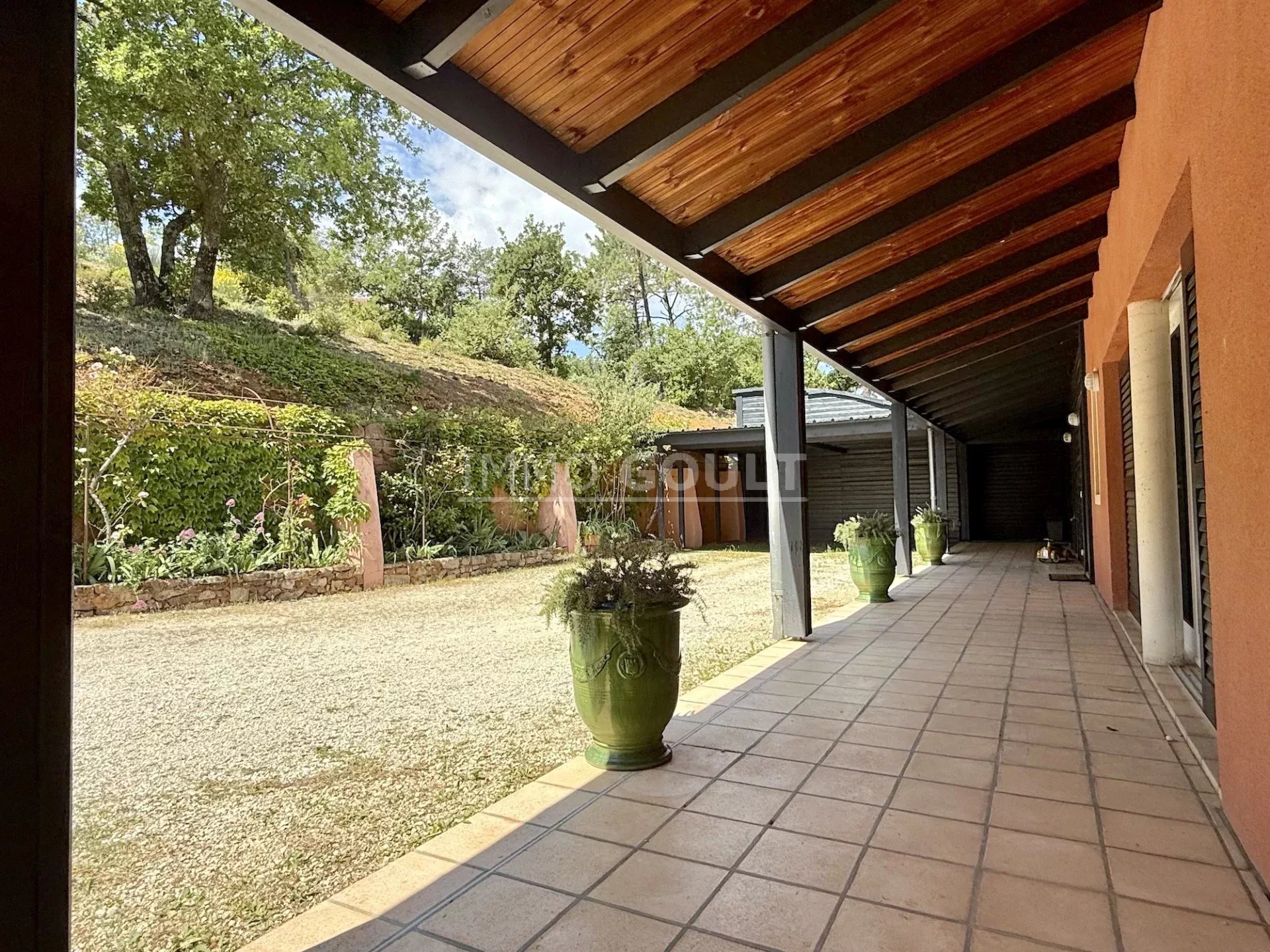 Le terrain de 2ha est planté d’essences provençales. Les abords de la maison sont joliment paysager notamment avec de très beaux oliviers. Une vaste terrasse couverte de style varangue, une piscine chauffée et sécurisée par un volet électrique avec son pool-house agrémentent la maison.