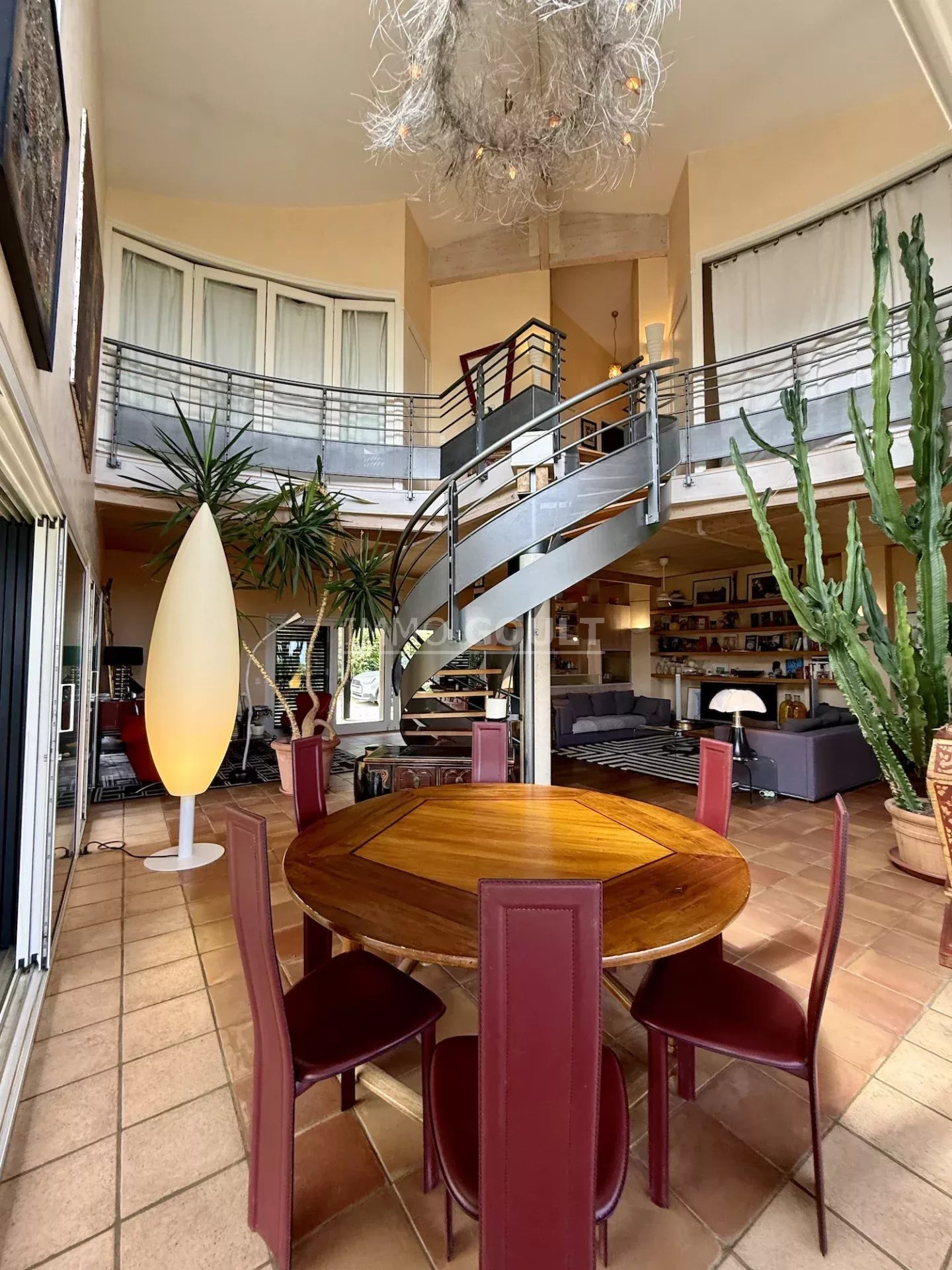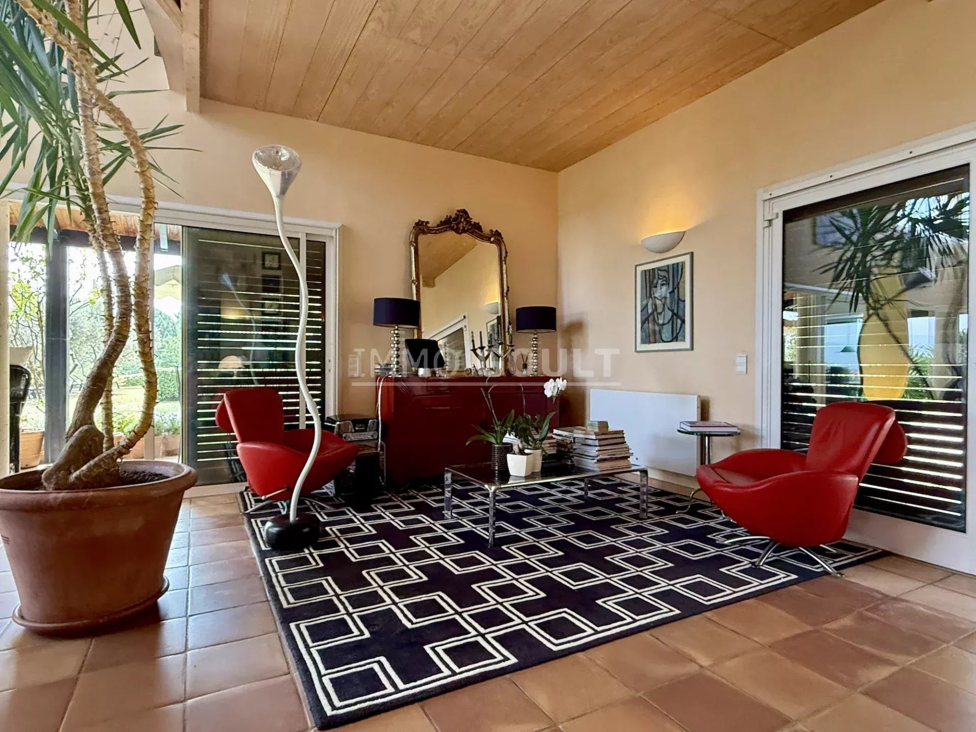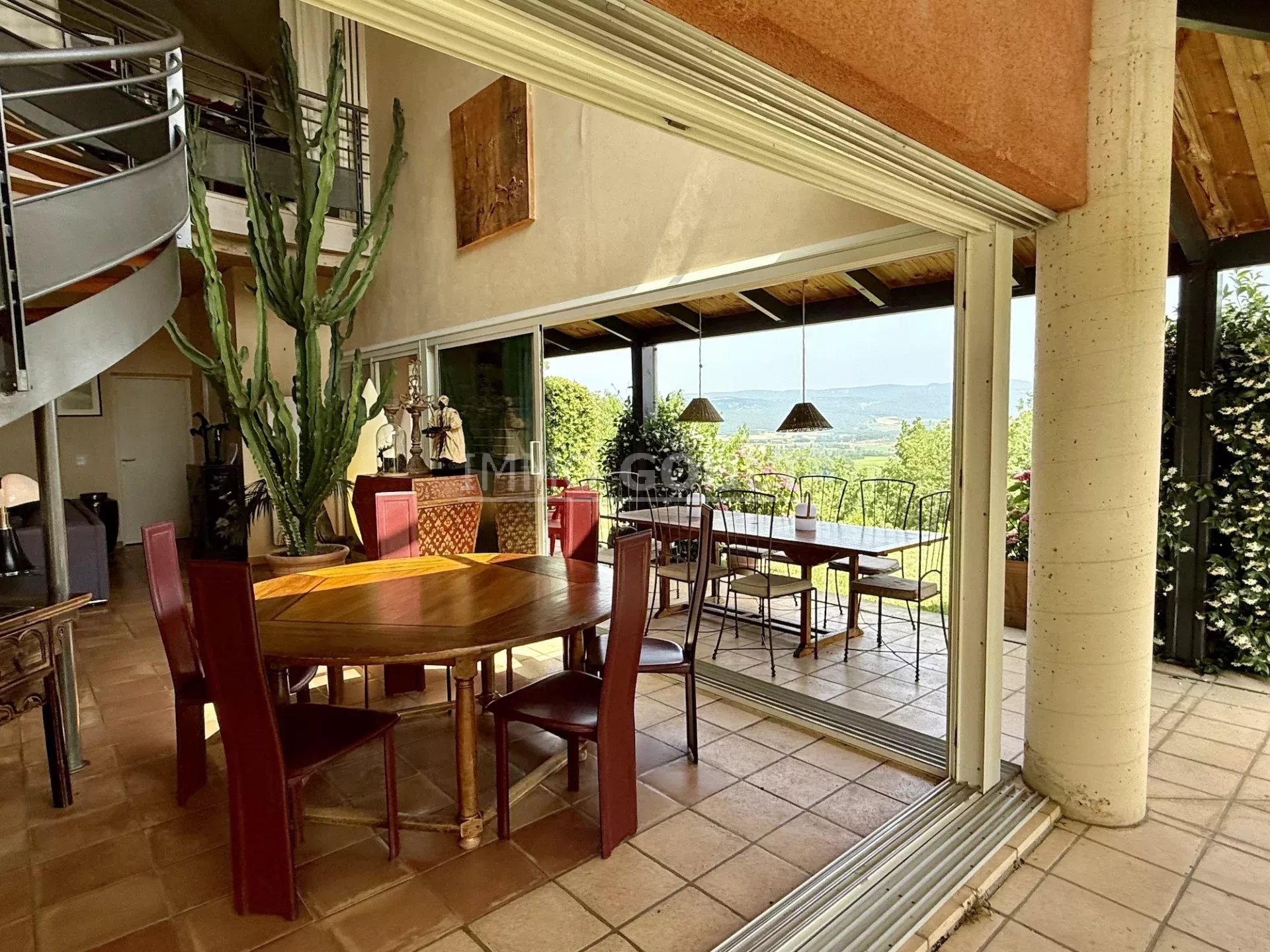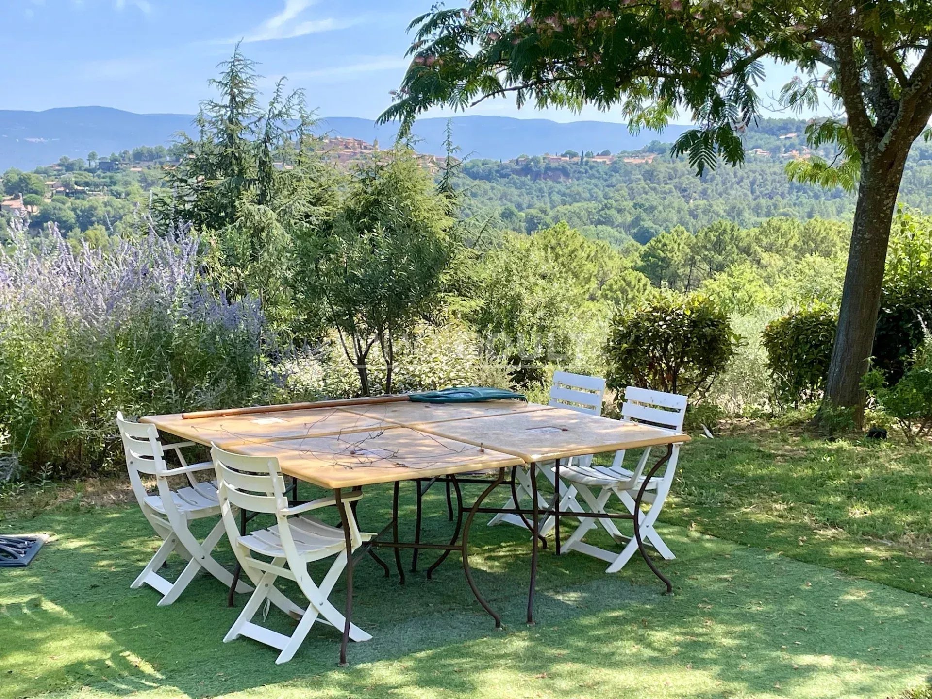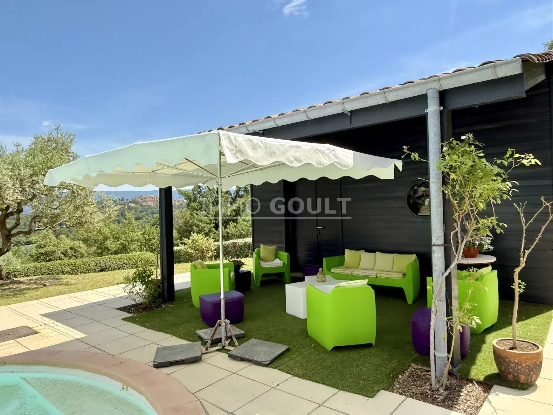 En exclusivité, l'agence Immo Goult vous propose à la vente entre Roussillon et Goult, en position dominante bénéficiant de vues exclusives sur le village de Roussillon et le Mont Ventoux, maison contemporaine d’une surface bâtie de 235m2 environ.