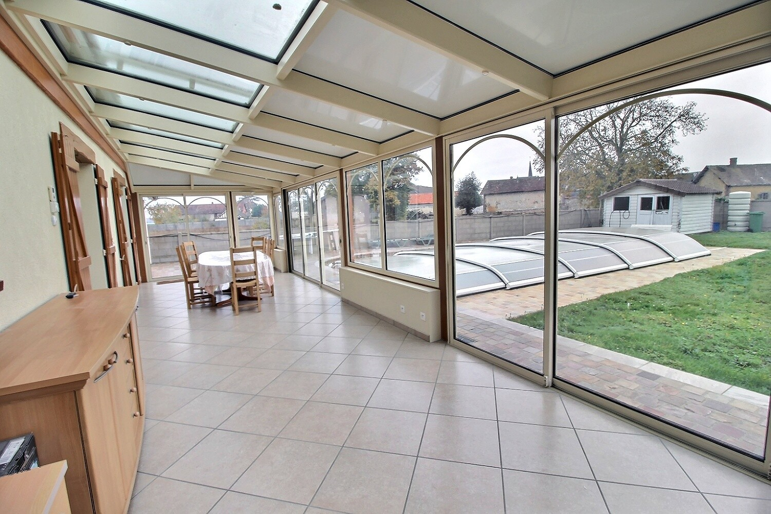 15 MIN HOUDAN - MGN Immobilier vous propose en exclusivité cette agréable maison familiale édifiée sur un sous-sol total, offrant de beaux volumes et un environnement calme. Elle se compose d'une entrée, d'un salon-séjour lumineux, d'une cuisine aménagée, de trois chambres, d'une salle d'eau et d'un WC indépendant. Vous profiterez également d'une grande véranda d'environ 39 m², véritable pièce de vie supplémentaire ouverte sur le jardin et la piscine Le sous-sol total comprend garage, atelier et buanderie... Un garage indépendant en plus et un second garage attenant avec mezzanine complètent l'ensemble. A l'extérieur, vous apprécierez un terrain clos d'environ 1 000 m² avec piscine couverte, idéal pour les beaux jours. Chauffage central au gaz de ville par radiateur dans la maison et au sol dans le vérandas. Situation recherchée entre Nogent-le-Roi et Houdan, avec accès rapide à la RN12.