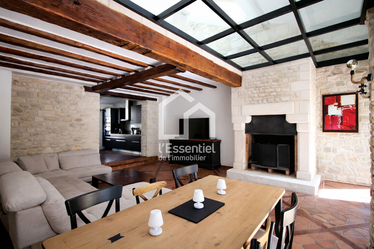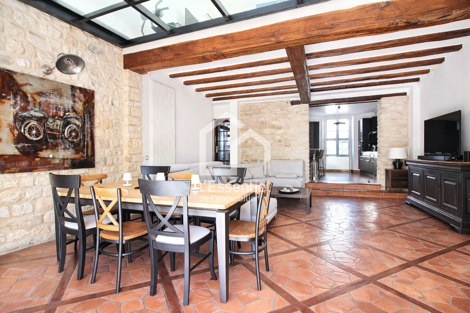 Idéalement située en plein coeur de Verneuil-sur-Seine, cette maison familiale de caractère développe environ 157 m² et bénéficie d'un environnement à la fois central et parfaitement au calme. Ici, tout se fait à pied : un véritable confort de vie au quotidien. L'atout majeur ? Une localisation exceptionnelle, à quelques minutes seulement de l'institution Notre-Dame Les Oiseaux, recherchée pour la qualité de son enseignement. Un critère déterminant pour les familles souhaitant concilier sérénité et praticité. La gare est accessible en quelques minutes à pied, permettant de rejoindre facilement les grands pôles comme La Défense, avec en perspective l'arrivée du RER E qui renforcera encore l'attractivité du secteur. Le centre-ville, les commerces et toutes les commodités sont également à proximité immédiate, offrant un cadre de vie fluide et recherché. La maison séduit par son alliance réussie entre le charme de l'ancien et une rénovation contemporaine. Dès l'entrée, les volumes impressionnent avec une belle pièce de vie lumineuse, sublimée par une hauteur sous plafond généreuse. L'ensemble s'ouvre directement sur une terrasse exposée plein sud et un jardin intime, sans vis-à-vis, véritable havre de paix en coeur de ville. Côté confort, la maison a été pensée pour un usage agréable toute l'année avec une climatisation réversible et des menuiseries en double vitrage assurant une excellente isolation. L'espace nuit se répartit sur plusieurs niveaux, offrant une organisation idéale pour une famille : chambres confortables, espaces indépendants et prestations rénovées avec soin, dont une suite parentale au caractère unique. En complément, vous bénéficierez d'un jardin entretenu, d'une cour, d'un garage ainsi que de caves voûtées, apportant un vrai plus en termes de stockage ou d'aménagement.
