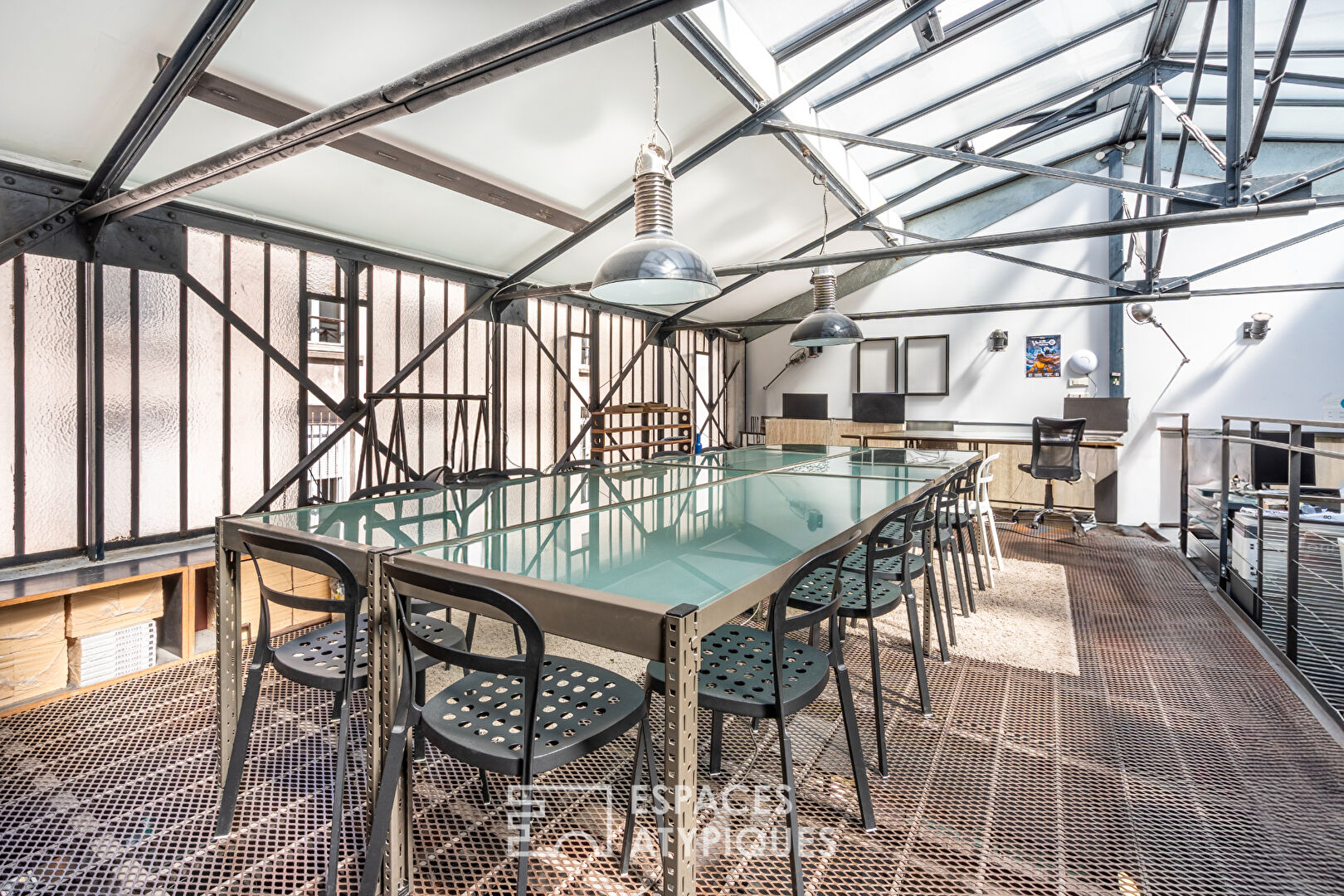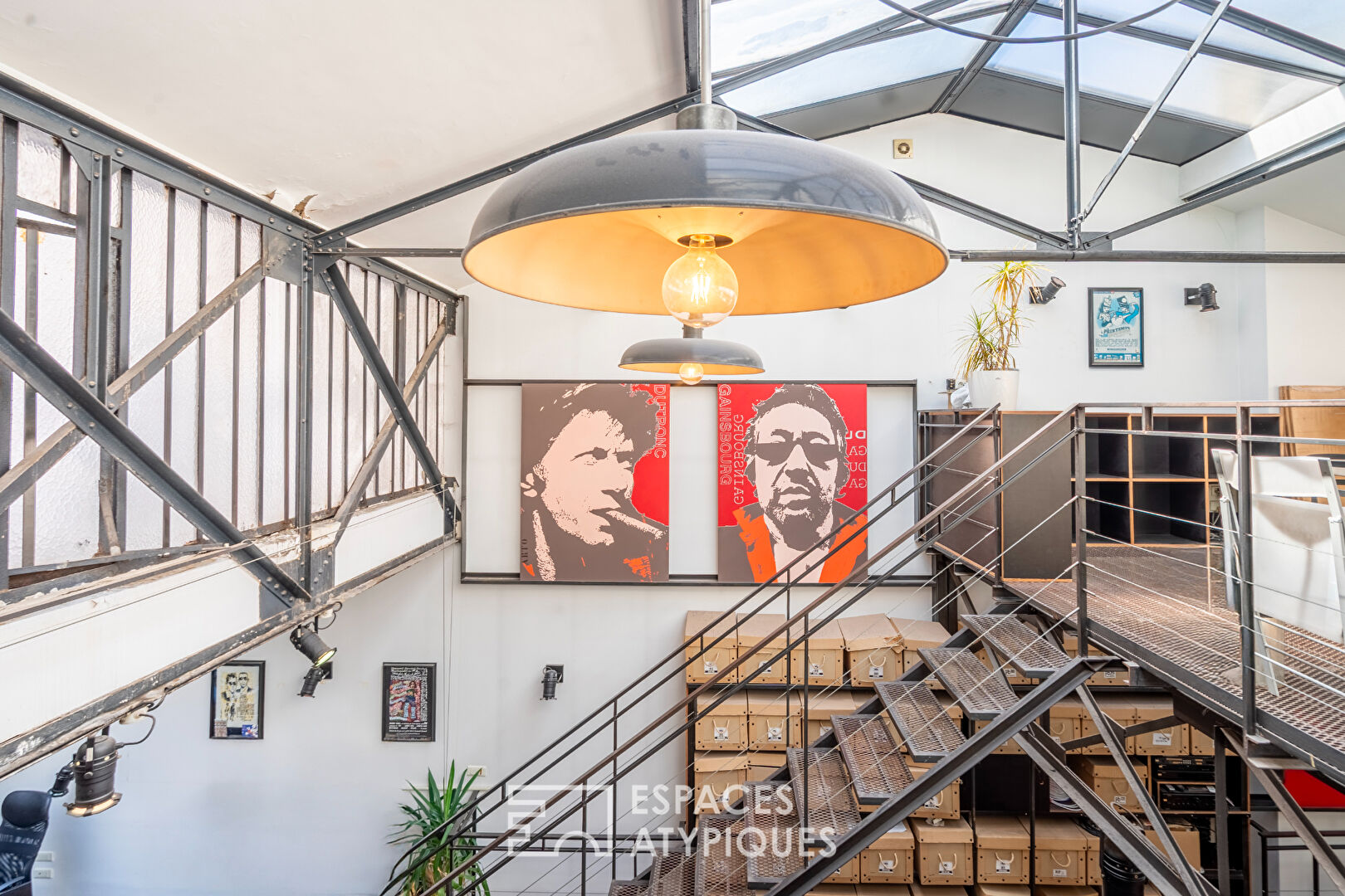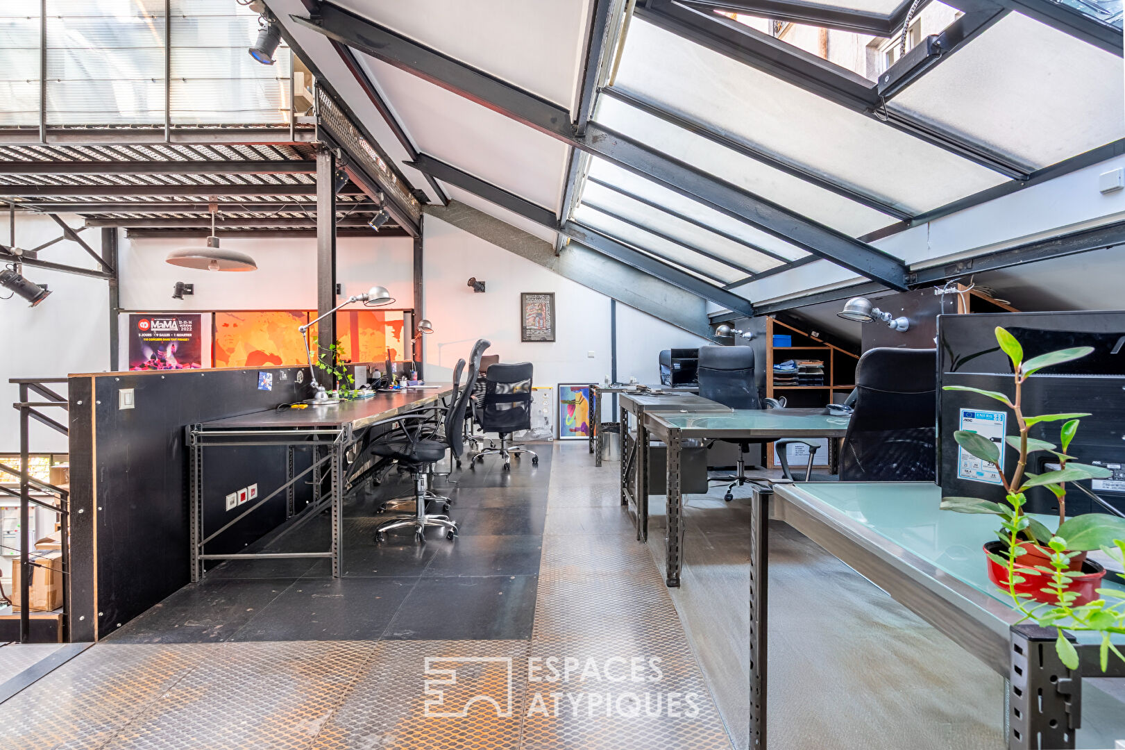 A quelques pas de la Halle Secrétan, entre le canal et les Buttes-Chaumont, ce local industriel développe une surface de 312m² au sol (264,81 m² Carrez), répartie sur trois niveaux, avec une hauteur sous plafond qui tutoie les 7,30 mètres et une terrasse en jouissance exclusive de 47m² . Occupant l'arrière d'un immeuble sur cour, au calme absolu, l'espace présente aujourd'hui une structure brute aménagée en bureau et qui pourrait être réhabilitée en habitation. Murs en béton, ossature métallique, escalier industriel et verrière zénithale composent une base solide pour un futur projet de transformation. Le volume principal, accessible depuis la terrasse en rez-de chaussée, est baigné de lumière grâce à ses ouvertures en toiture et offre un plateau libre aux proportions généreuses. Le bien peut accueillir plusieurs scénarios : un loft d'habitation avec espaces ouverts et pièces en double hauteur, un espace professionnel avec bureaux et showroom, ou encore deux unités distinctes en cas de division (sous réserve des démarches administratives nécessaires). Le changement de destination est à envisager dans le cadre d'un projet global. L'ensemble offre un potentiel rare dans ce secteur recherché du 19e arrondissement en plein essor proche des transports, des commerces de bouches, des restaurants et lieux de vie sportifs (salle d'escalade, piscine Pailleron) et culturels. Un lieu brut, aux volumes parlants, pour une page à écrire en grand format. Bien soumis au statut de la copropriété. Métro : Jaurès, Bolivar, Colonel Fabien CLASSE ENERGIE : C/ CLASSE CLIMAT : C. Montant des dépenses annuelles d'énergie 2023 : 2968 euros (abonnement compris). Les informations sur les risques auxquels ce bien est exposé sont disponibles sur le site Géorisques : https://www.georisques.gouv.fr. Contact : Magaly 06 63 16 83 32 - RSAC : 908 772 452 PARIS Copropriété de 46 lots - dont 36 lots habitation. (Pas de procédure en cours). Charges annuelles : 2762 euros.