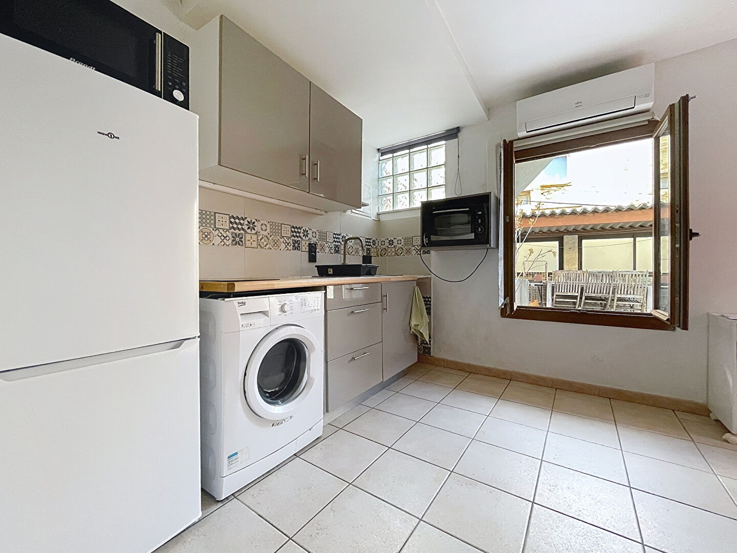 LANÇON PROVENCE : L'Agence AIXTY VELAUX vous propose à la location, cette maisonnette entièrement meublée de 20.27m2, située en plein centre du village, au fond d'une impasse. Le bien dispose d'une grande terrasse équipée d'une table et de chaises pour profiter des repas aux beaux jours. L'entrée dessert directement le séjour disposant d'une climatisation réversible, canapé et une table à manger, placard, ouvert sur le coin cuisine équipée d'une plaque de cuisson, réfrigérateur/congélateur, micro-onde, four, vaisselles, machine à laver. Vous trouverez un coin chambre qui dispose d'un lit double, douche et lavabo. Les wc sont indépendants. Vous pouvez stationner vos véhicules à proximité. Intermarché est situé à 500m du logement, à 10min à pied. Loyer 550 euros +20 euros de charges (eau froide) Dépôt de garantie 1 100 euros Honoraires agence 222.97 euros Le bien est disponible le 8 décembre.