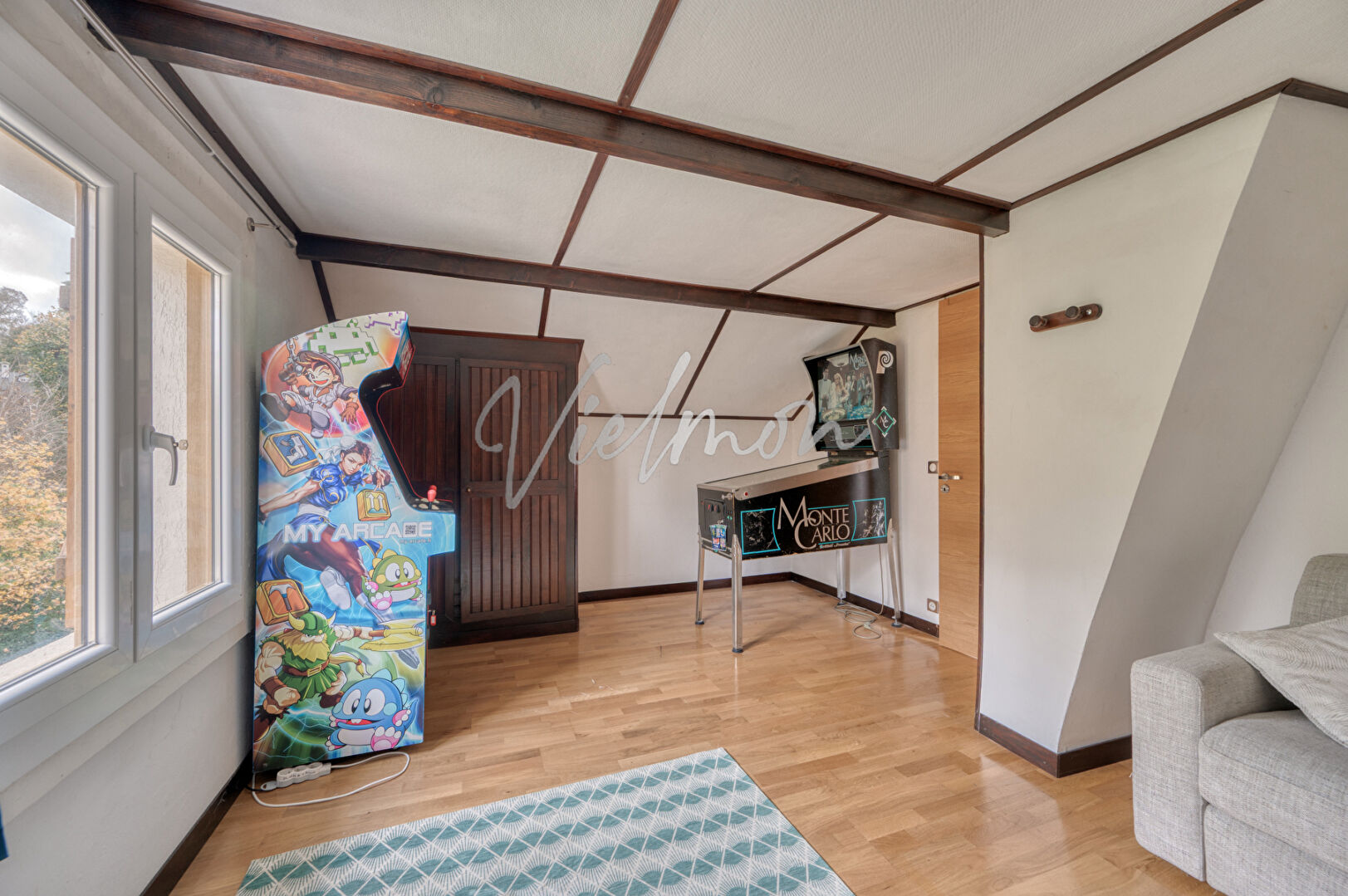 Exceptionnel dans le domaine de Granchamp , Maison de caractère meublée d'un superficie de 193 m2 env avec un jardin de 1200 m2 env, offrant au rdc : une beau séjour avec cheminée, une salle à manger, une cuisine ouverte aménagée et équipée, une salle de jeux, une salle de sport avec sauna et douche. A l'étage : 4 chambres dont une suite parentale avec salle de douche, une salle de douche. Au second étage : un salon, une chambre, une salle de bains. Une véranda, une piscine, un jacuzzi, un garage, un local technique, un chalet de jardin aménagée. En dépendance dans le jardin : une studio avec salle de douches, wc et kitchenette. Coup de coeur assuré.