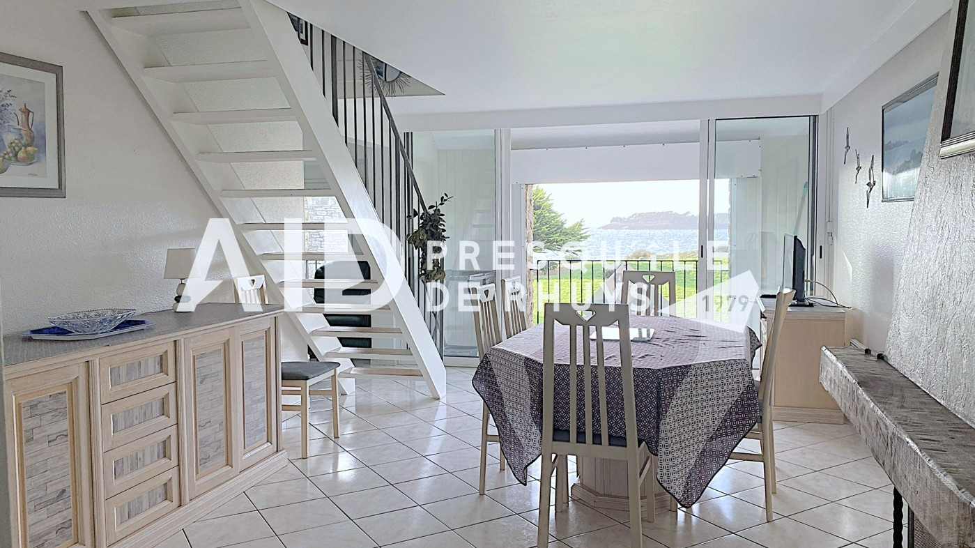 A Arzon au 1er étage d'une résidence dominant l'océan et la plage du Fogeo, découvrez cet appartement duplex de 75m² en excellent état, très spacieux, avec 4 chambres et une magnifique vue mer ! Au 1er niveau : vous profiterez d'une pièce de vie de 30m² avec cheminée et loggia vue mer, cuisine indépendante, salle d'eau avec WC et coin laverie. Vous apprécierez les volumes et la luminosité de ce vaste espace de vie convivial avec la mer en toile de fond. Au 2ème niveau : un couloir dessert une salle d'eau et 4 chambres spacieuses (dont 2 avec vue mer) . Toutes profitent d'une grande hauteur sous plafond permettant l'aménagement de mezzanines pour encore plus de couchages ou de rangements. En sous-sol : une cave et un double garage de 40m² avec porte motorisée permettront de ranger votre matériel de sports nautiques, vos vélos et même plusieurs véhicules. A partir de cette résidence surplombant la plage, vous rejoindrez les commerces, bars et restaurants situés à proximité... C'est dans ce cadre idyllique que vos rêves de vacances prendront vie ! (5.00 % honoraires TTC à la charge de l'acquéreur.) Copropriété de 870 lots - dont 321 lots habitation. Charges annuelles : 805.4 euros.