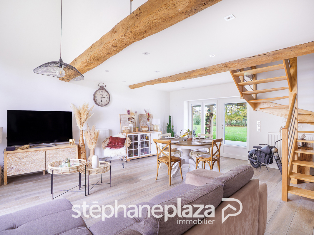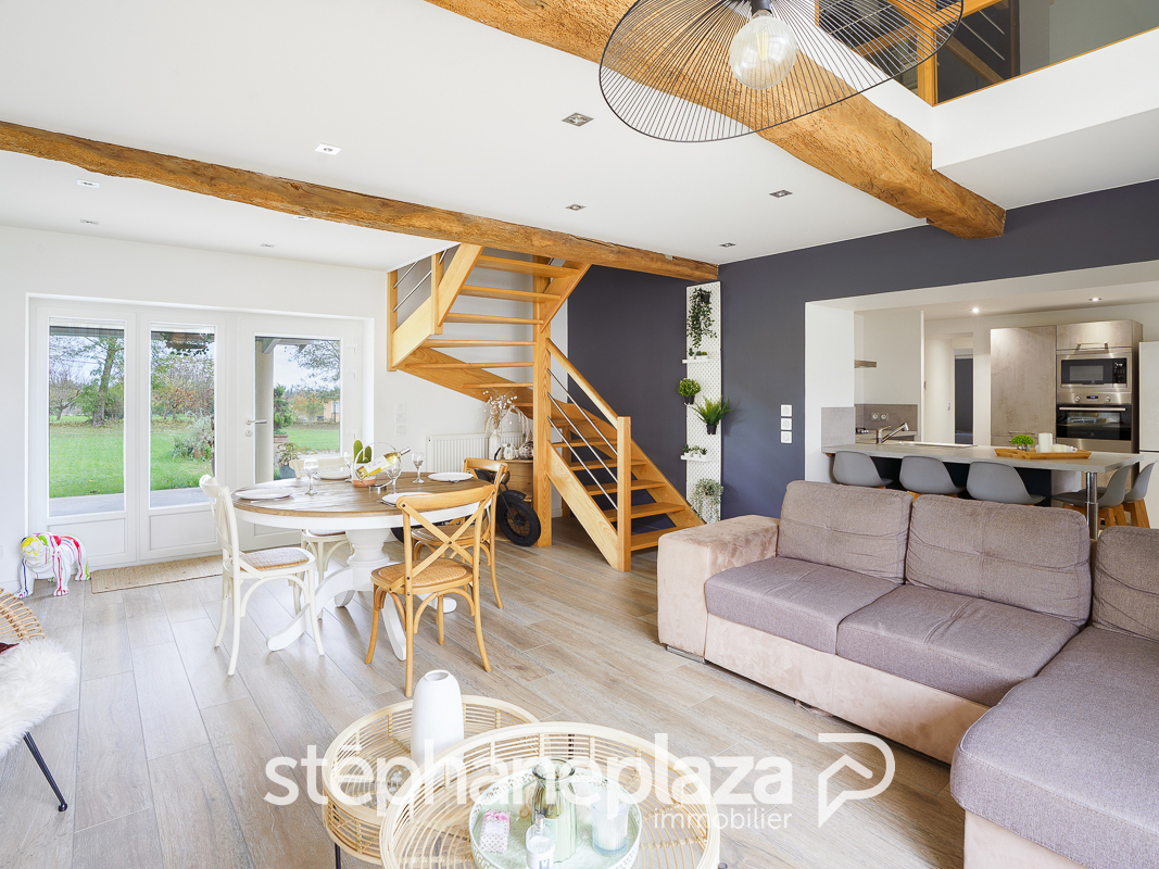 EXCLUSIVITE STEPHANE PLAZA IMMOBILIER. VISITE VIRTUELLE 100% IMMERSIVE de ce bien : A découvrir sur notre site web ou en agence sur Table KINETI ! Vous recherchez une belle Longère située au coeur d'un environnement calme et agréable, à proximité de toutes les commodités avec accès facile aux grands axes. Venez découvrir cette magnifique Maison de 140 m2 disposant d'un beau terrain sans vis-à-vis et piscinable d'environ 2000 m2, idéalement située dans le secteur recherché de Saint-Cyr-sur-Menthon, à moins de 15 minutes de Mâcon. Cette Longère rénovée avec gout se compose, au rez-de-chaussée, d'un salon séjour lumineux alliant confort moderne et charme de l'ancien, avec accès direct à la terrasse pour profiter des beaux jours, d'une cuisine aménagée et équipée, d'une grande chambre, d'une salle d'eau, d'un WC ainsi qu'un grand dressing ou bureau. L'étage accueille trois belles chambres avec poutres apparentes, une mezzanine lumineuse donnant sur le séjour et une salle de bain avec douche, Wc et baignoire. Une belle dépendance de 80m2 s'ajoute à cette ensemble permettant d'agrandir l'espace de vie ou faire un grand garage/atelier. Prestations complémentaires : Pompe à chaleur , Portail motorisé, terrain clos et piscinable, rénovation de qualité et récente . Les informations sur les risques éventuels auxquels ce bien est exposé sont disponibles sur le site Géorisques : www.georisques.gouv.fr **Honoraires à la charge du vendeur. Pour toutes informations complémentaires, contactez l'agence Stéphane Plaza Immobilier Mâcon par téléphone. Jean-Baptiste BORZYCKI (EI) Agent Commercial - Numéro RSAC : 844 092 320 - Macon.