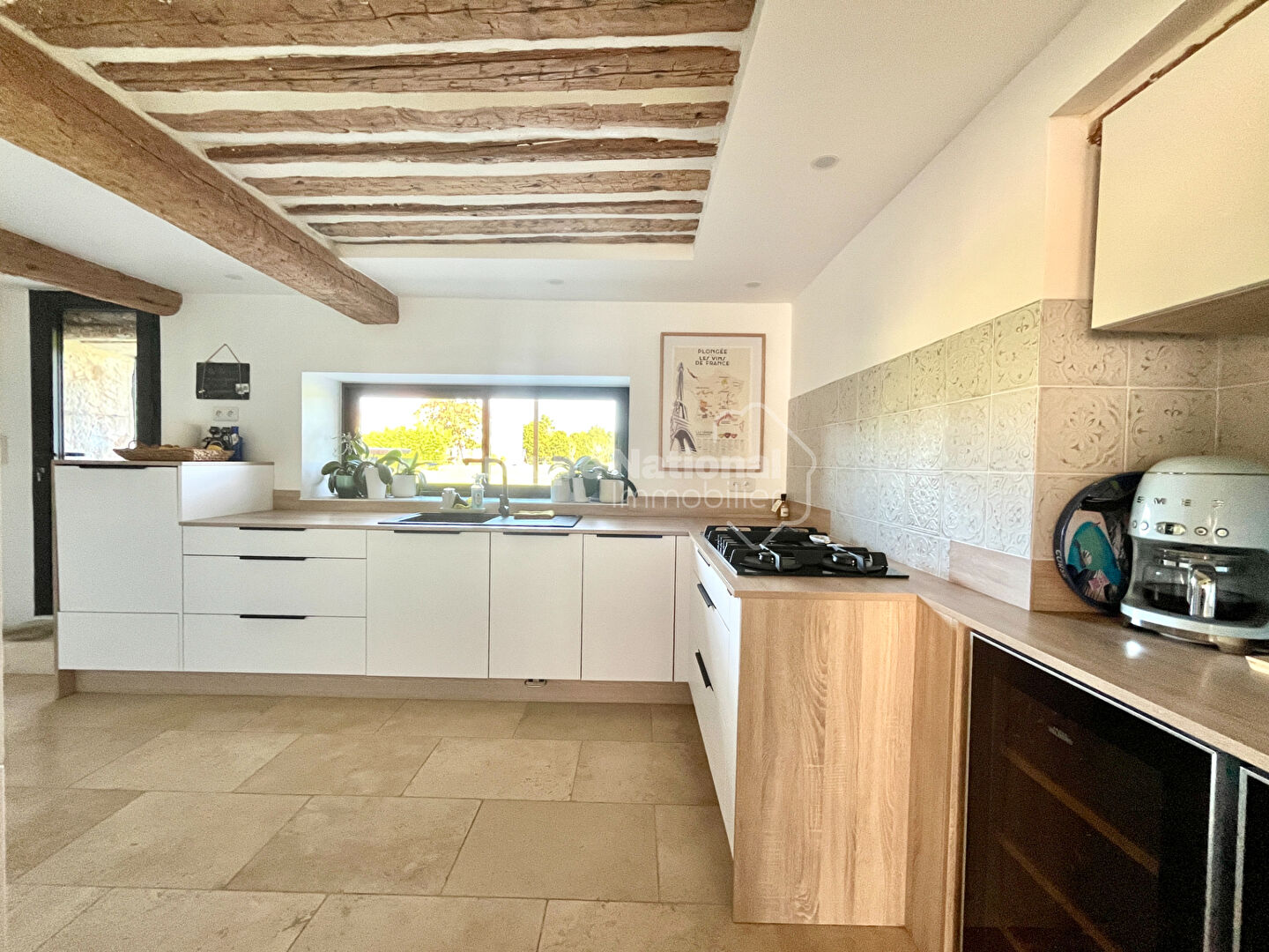 Vous n'aurez plus qu'a poser vos valises dans ce havre de paix situé au calme tout en étant proche du centre ville et des commerces. Cette partie de Mas entièrement rénovée avec goût et matériaux hauts de gamme offre un confort moderne dans un cadre authentique. Au rez-de-chaussée, vous trouverez : une entrée ouvrant sur une pièce de vie lumineuse exposée plein Sud, une cuisine indépendante coté Nord avec son espace détente et barbecue, une buanderie et des toilettes. A l'étage, l'espace nuit comprend : 3 belles chambres, une salle d'eau et un WC indépendant. A l'extérieur profitez de 2 terrasses (sud et nord), d'un terrain de 410m2 piscinable, d'un abri voiture et d'un cabanon. Confort assuré grâce au Poêle à granulés, Climatisation Réversible et Fibre. Forage. Une visite s'impose sans tarder ! Prix de vente : 389000 euros FAI (honoraires à la Charge du vendeur ) Karin SCOTTO (EI) Agent Commercial - Numéro RSAC : 822584348 - Tarascon.