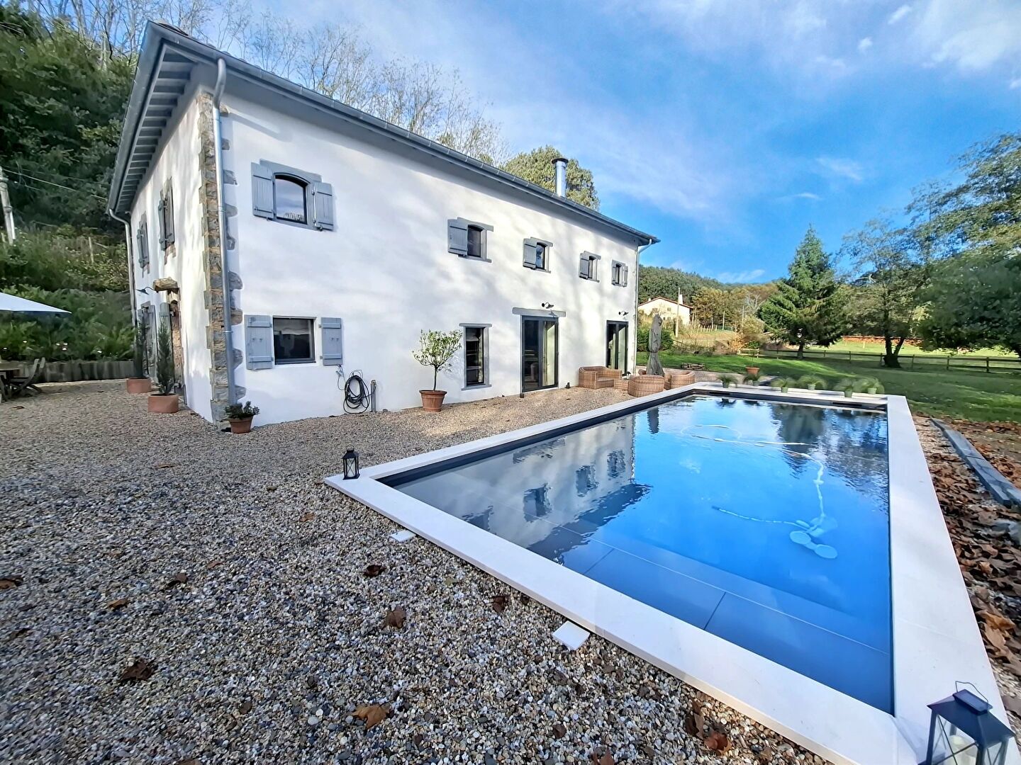 A l'abri des regards, dans un cadre bucolique où règnent calme et sérénité, se dévoile cette maison de maître de 256,48 m² habitables (au sol 369 m2) lovée au coeur d'un parc paysager de 12 672 m². Dotée d'un cachet unique, cette demeure authentique et de caractère allie subtilement le charme de l'ancien et l'élégance du confort d'aujourd'hui. Dès l'entrée, les volumes impressionnent. La pièce à vivre, vaste et lumineuse, s'ouvre sur une cuisine design, véritable espace de convivialité, prolongée par une salle à manger chaleureuse où se mêlent raffinement et simplicité. Une buanderie discrète et fonctionnelle complète ce niveau, pensée pour un quotidien harmonieux. L'escalier mène à un étage d'exception, où la suite parentale incarne l'élégance absolue : une salle de bain majestueuse avec douche à l'italienne, un dressing hors norme, et un espace nuit baigné de lumière, invitant à la détente. Deux chambres spacieuses et raffinées, avec une salle de bain, viennent parfaire cet espace nuit, empreint de douceur et de sérénité. L'étage supérieur, d'environ 100 m² à aménager selon vos envies, offre un champ infini de possibilités : atelier d'artiste, salle de cinéma, bibliothèque, espace bien-être? Laissez votre imagination s'exprimer. A l'extérieur, la magie se prolonge. Le parc arboré, soigneusement entretenu, entoure la propriété d'une atmosphère apaisante ainsi qu' une piscine à la vue imprenable sur la forêt invite à la détente et à la contemplation. Un carport accueille vos véhicules. Le bien dispose de tous les équipements nécessaires pour une consommation énergétique maîtrisée : un PAC AIr/Eau, un PAC Air/Air, un chauffe-eau thermodynamique ainsi que des panneaux photovoltaïques. Chaque détail semble ici pensé pour créer un lieu de vie hors du temps, où le luxe se conjugue à la nature. Azzedine EL OUANNAN (EI) Agent Commercial - Numéro RSAC : 892609330 - Bayonne.