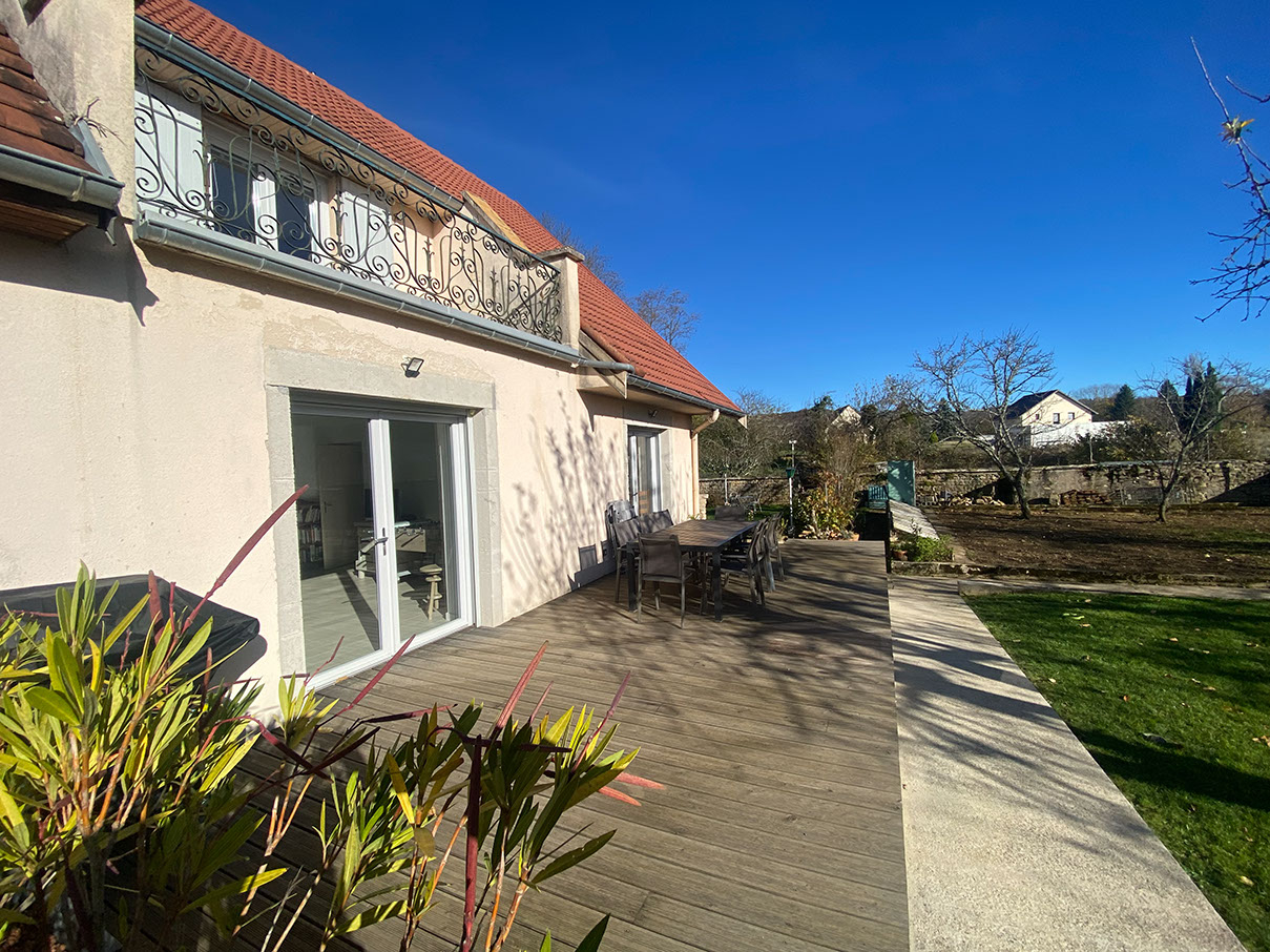 Dans commune avec toutes commodités, maison entièrement rénovée via artisans, 126 m² habitables + 100 m² de dépendances, isolation phonique et thermique de qualité, chaudière à granulés, terrain clôturé de 900 m²,1er niveau accessible PMR offrant une autonomie de plain-pied Au RDC : loggia, cuisine-séjour, terrasse, hall, chambre, WC + point d'eau, salle de bains. A l'étage : 3 chambres, dressing, salle d'eau + WC, terrasse et balcon. Au ss-sol : garage, chaufferie-buanderie, cave. Pour toute demande contactez votre agent Guillaume CHASSOT par SMS au 06 44 26 13 59 ou mail gchassot@gc-ifs.com Carte pro: CPI 3901 2019 000 041 682 (CCI du Jura). RCS : 814 064 515.
