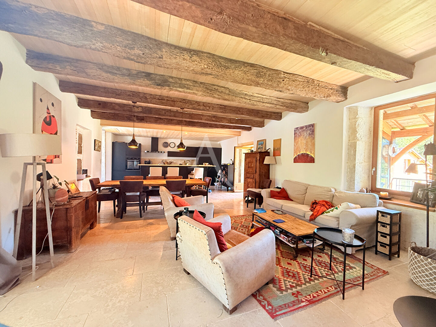 Cette propriété est située en pleine campagne, dans un environnement calme au bout d'une impasse. Elle comprend une maison principale récemment rénovée avec goût, offrant environ 103 m² habitables, implantée sur un terrain de 8937 m2 arboré avec une belle piscine. La maison principale dispose d'une grande terrasse couverte avec entrée (10,5 m²). Une pièce de vie de 48 m² comprenant une cuisine équipée. Elle s'ouvre sur une seconde terrasse de 30 m² située à l'arrière de la maison. On y trouve aussi une chambre de 13,6 m², une salle d'eau de 3 m² et un WC séparé de 1 m². De l'autre côté se situent deux autres chambres (14 m² et 9 m²), ainsi qu'une salle d'eau de 2,5 m² avec WC. En rez-de-chaussée se trouve une belle cave voûtée destinée aux animations (52 m²), accompagnée d'une buanderie de 13,5 m² et d'une cave technique de 32 m² utilisée notamment pour la piscine. Une première annexe - cabinet thérapeute aménagé dans l'ancienne étable comporte une entrée de 3,8 m², une pièce principale de 27 m² avec salle d'eau et WC (3,4 m²). A l'étage se trouve un espace chambre mansardé. Ce cabinet peut être transformé en maison d'amis ou gîte en ajoutant simplement une kitchenette déjà prévue à cet effet. Une deuxième dépendance en bardage bois peut être transformée en maison d'amis ou gîte, pièce principale 22 m2, alcôve 6 m2, sde/wc 3 m2, et une mezzanine. Pour finir un garage de 60 m2.