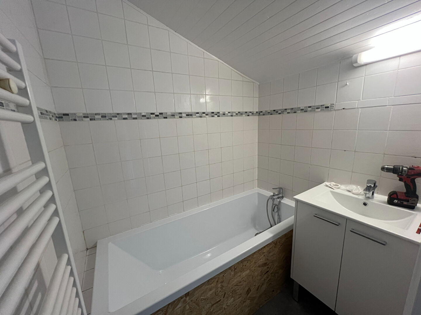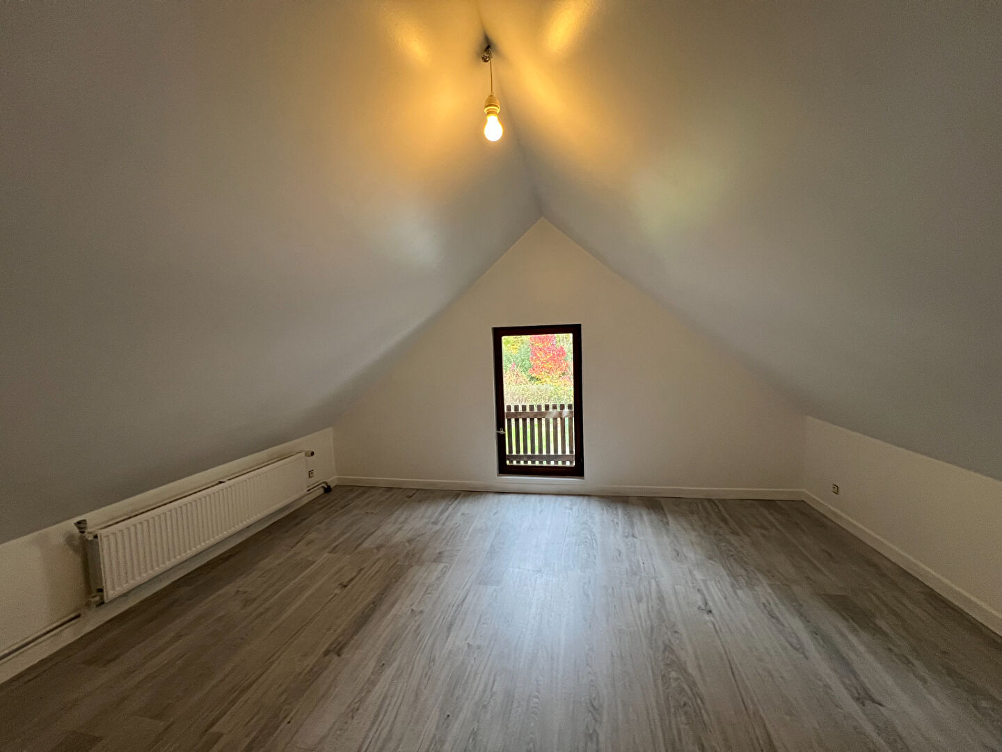 Maison rénovée offrant hall d'entrée, salon, salle à manger, cuisine semi équipée, 1 chambre, salle de bains et wc. A l'étage, palier-bureau et 1 chambre. Cave, terrain Disponible de suite
