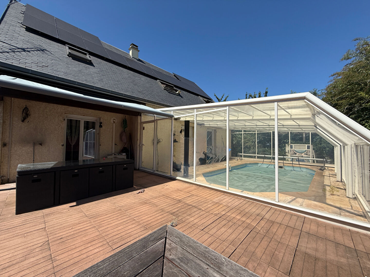 Située dans un secteur calme et résidentiel. L'immobilière vous présente à la vente cette maison familiale de 218 m2 habitable édifiée sur 683 m2 de terrain sans vis-à-vis, idéale pour les familles à la recherche d'un espace de vie confortable et spacieux. Au rez-de-chaussée, vous trouverez une entrée, une cuisine entièrement équipée ouverte sur un espace de vie de 65 m2 donnant un accès direct sur le jardin et sa piscine couverte, une suite parentale avec salle d'eau privative, dressing et wc indépendant. A l'étage, vous découvrirez quatre chambres, une salle d'eau et wc. Les plus : Une dépendance idéale pour une PROFESSION LIBERALE de type 3 pièces de 65 m2 ayant son entrée indépendante et communiquant avec la maison principale composé d'un séjour avec cuisine ouverte, 2 chambres, salle d'eau et wc ainsi qu'un sous-sol total avec buanderie, garage et une pièce de projection pour les amoureux du cinéma. Cette maison en parfait état offre un cadre de vie paisible et agréable.