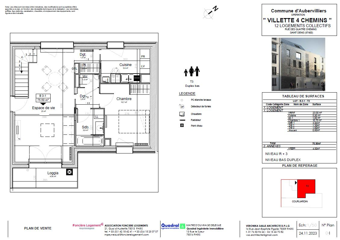 Dans un immeuble entièrement neuf, découvrez ce bel appartement duplexe 3 pièces alliant confort et modernité. Vous bénéficierez d'un chauffage collectif au gaz, d'une eau chaude individuelle. Idéalement situé, proche de toutes commodités et 3 minutes à pied du métro ligne 7 Aubervilliers Quatre Chemin. Pas de place de parking. Livraison et disponibilité : début 2026 NB : Ces logements sont conventionnés et non soumis à honoraires d'agence - Les photos ne sont pas contractuelles et correspondent à un autre logement de la résidence Aucune visite ne sera programmée sans validation préalable de votre dossier de candidature à la location. TOUT DOSSIER INCOMPLET NE SERA PAS ETUDIE o Liste de documents à fournir (Par locataire ): o Livret de Famille o Pièce d'identité o Trois dernières quittances de loyers o Justificatif de domicile pour les personnes hébergées o Trois derniers bulletins de salaire o Deux dernières feuilles d'imposition o Contrat du travail ou Attestation de l'employeur datant de moins de 30 jours (Précisant la date d'embauche, le poste et si la personne est en période d'essai ou préavis de licenciement ou démission) o Dernière facture EDF ou Taxe d'habitation o Relevé d'Identité Bancaire o Dernier talon d'allocations familiales Vous devez présenter les originaux à l'agence accompagnés des photocopies. Si vous déposez votre dossier à l'agence, merci de mettre vos noms, coordonnées téléphoniques, la ville du logement demandé ainsi que montant du loyer charges comprises. Copropriété de 5 lots - dont 5 lots habitation.().