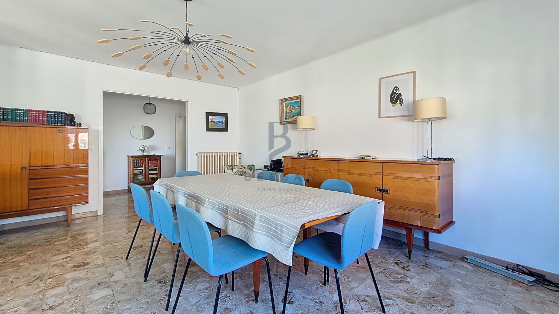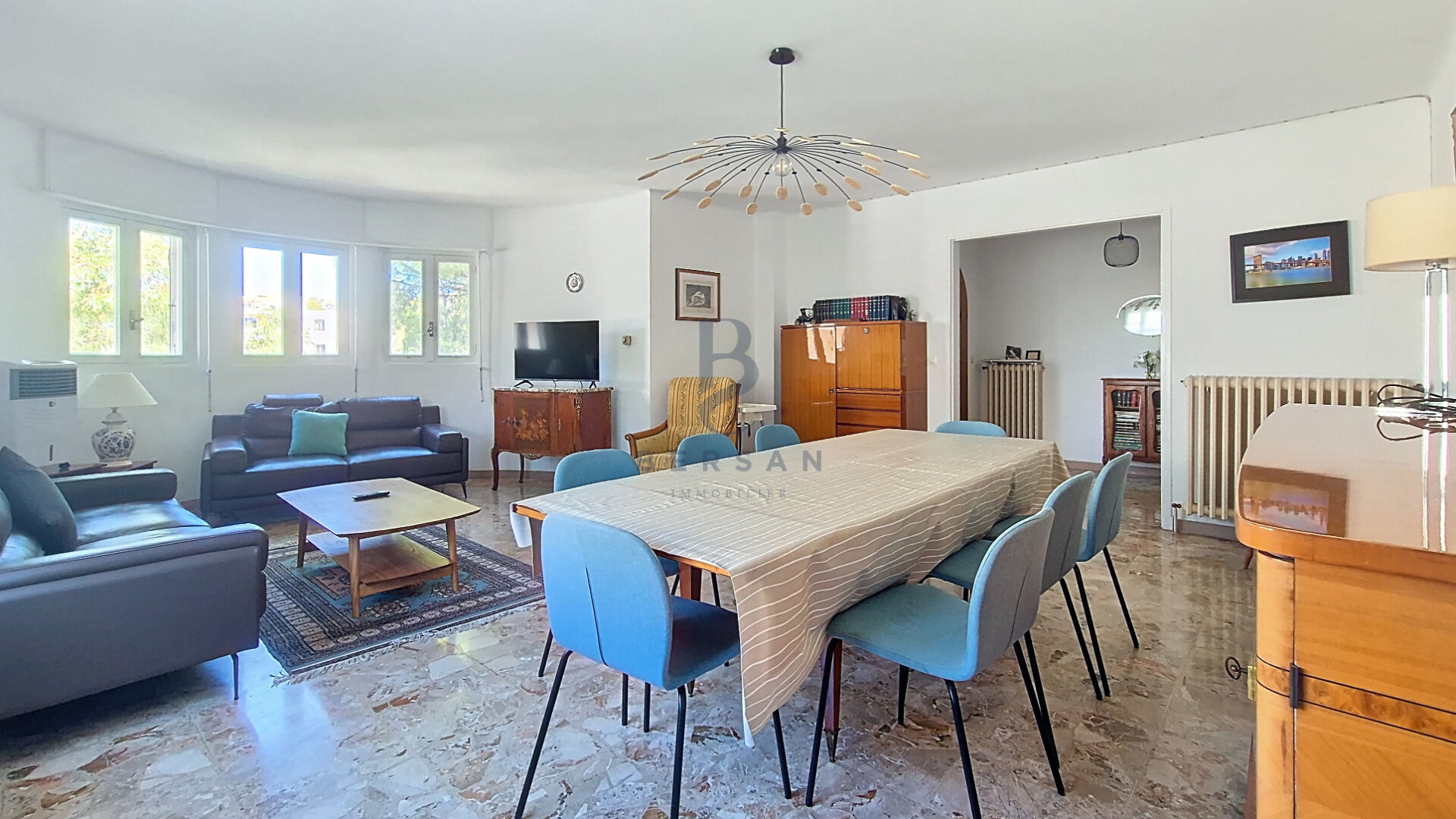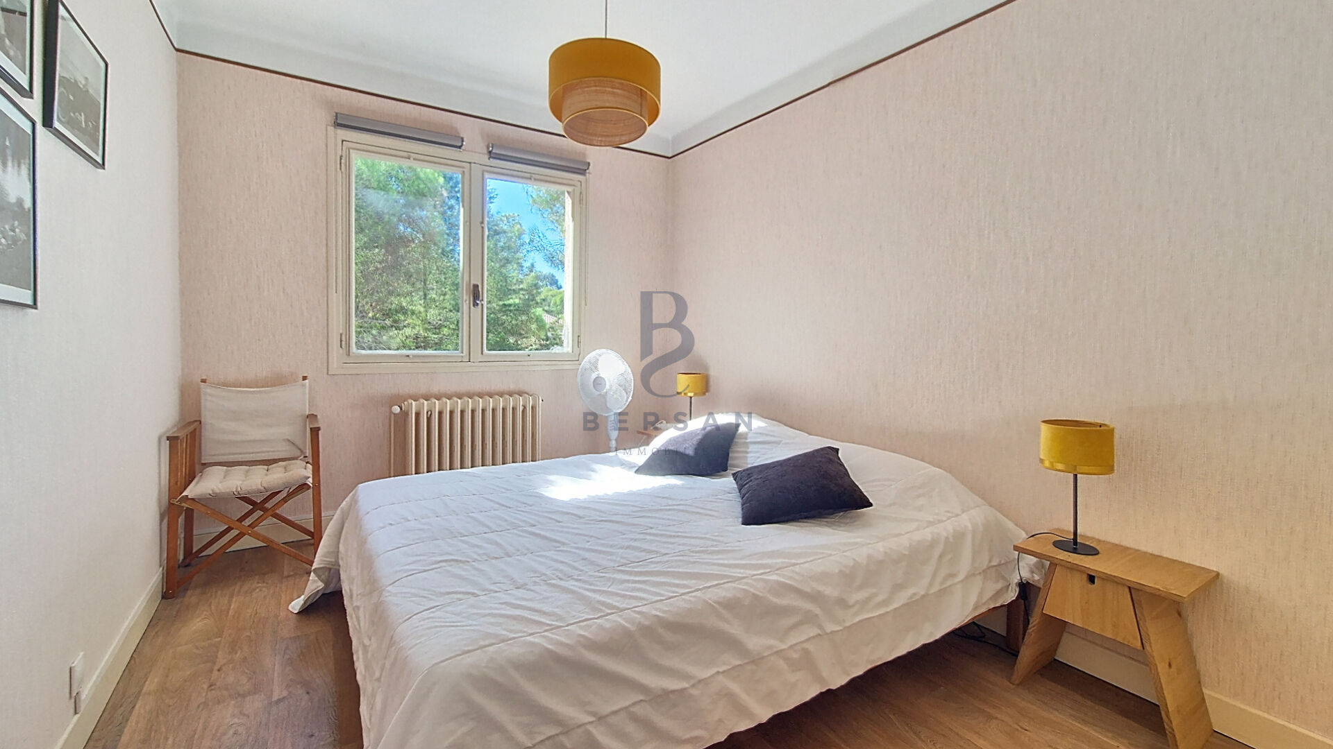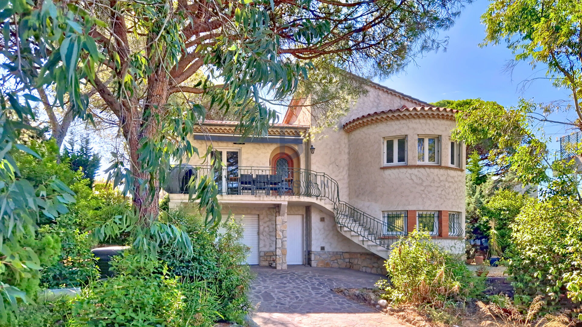Votre agence BERSAN Immobilier vous propose en EXCLUSIVITÉ cette villa située proche du centre-ville de Saint-Raphaël, offrant de beaux volumes, un appartement indépendant et un cadre de vie paisible à proximité des golfs, commerces et plages. Dès l'entrée, la maison accueille une salle à manger attenante à un vaste séjour. La cuisine indépendante et équipée ouvre directement sur une terrasse conviviale. L'espace nuit comprend quatre chambres dont une avec salle d'eau privative, une salle d'eau supplémentaire rénovée et deux toilettes indépendants. Le rez-de-jardin propose un appartement T2 indépendant de 65 m² comprenant un grand salon avec salle à manger, une chambre, une cuisine et une salle d'eau, idéal pour recevoir ou envisager un projet locatif. La propriété repose sur un terrain arboré de plus de 800 m² et bénéficie d'un grand garage pouvant accueillir deux véhicules. L'équipe BERSAN Immobilier reste à votre disposition pour toute information complémentaire ou pour organiser une visite. Une visite virtuelle Live est disponible sur demande.