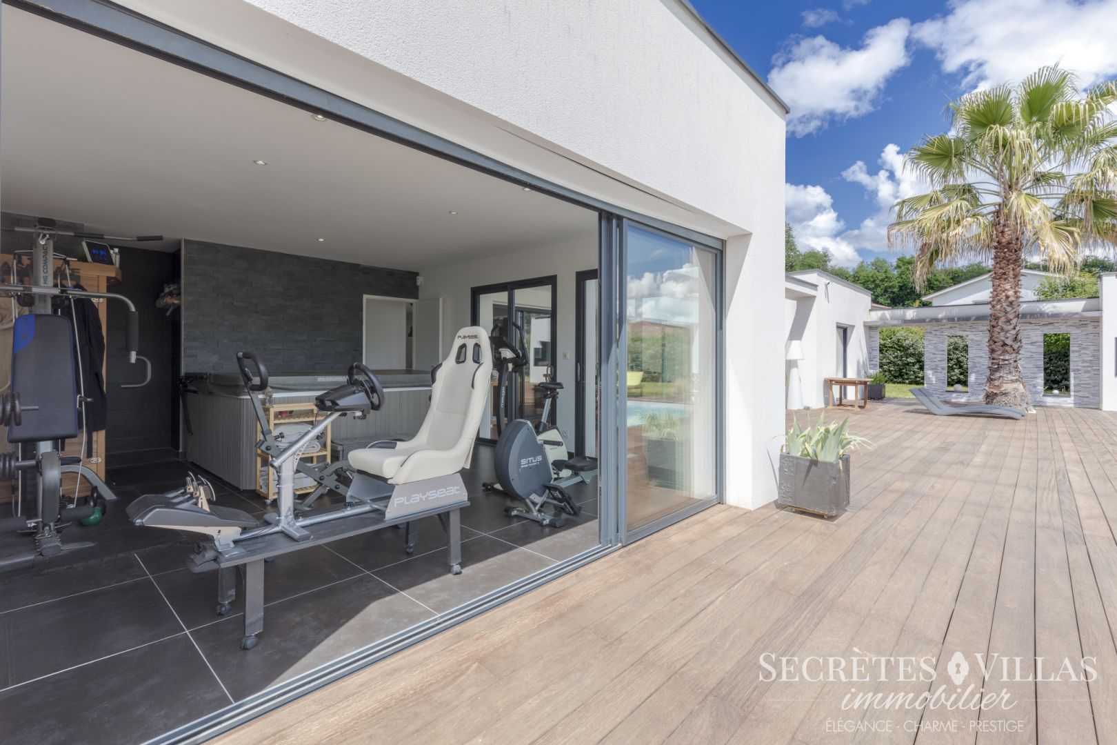 SOUS COMPROMIS. HAUT BOULIAC, SECTEUR TRES PRISE, CADRE RESIDENTIEL DE PRESTIGE, AU CALME MAGNIFIQUE VILLA CONTEMPORAINE TOIT TERRASSE 217M2 DE 2016 vous offrant de plain-pied: entrée, OPEN SPACE 84M2 double exposition: séjour, salon cheminée insert, belle cuisine US équipée ilot central et cave à vin éclairée. Cellier buanderie. WC. 2 chambres: une vue piscine et SDB avec WC, une avec sa SDE douche italienne attenante. SPLENDIDE SALLE DE SPORT VITREE 26m2 équipée SPA CANADIEN, SAUNA INFRAROUGE, déshumidificateur mural et douche italienne (ou 5ème chambre). A l'étage: baigné de lumière, coursive à l'esprit ultra contemporain accès GRAND FILET MEZZANINE vue dégagée, puis palier menant à 2 chambres dont très agréable suite parentale avec dressing, SDE double douches italiennes et sa terrasse 15m2 vue panoramique. A l'extérieur : Parking plusieurs véhicules bel enrobé, GARAGE DOUBLE CARRELE 40M2, Local technique, BEAU TERRAIN CLOS ET PLAT ARBORE 2575M2 EXPOSE PLEIN SUD avec ELEGANTE PISCINE CARREE 7X7, SPLENDIDE TERRASSE 215M2 et partie abritée, espace barbecue et plancha. Construction et prestations haut de gamme: VIDE SANITAIRE, RT2012, huisseries Alu double vitrages, volets centralisés, CHAUFFAGE AU SOL POMPE A CHALEUR, clim chambre parent, parquets teck massifs, alarme, fibre, terrasses bois exotique CUMARU, RIDEAU DE PROTECTION PISCINE ELECTRIQUE IMMERGE, 12 PANNEAUX SOLAIRES, porte garage 5M automatique, portail électrique..Reste surface à constuire. ENSEMBLE SOIGNE ET ENTRETENU. Proximité toutes commodités: .commerces, école publique et internationale Montessori, bus pour collège, lycée publique et privé de renommée ( LESTONNAC, SAINTE MARIE DE BASTIDE). 13MN Bordeaux centre et gare Saint Jean. SON ADRESSE, SES VOLUMES, SES MATERIAUX, SON ATYPICITE, ET SON MAGNIFIQUE ESPACE EXTERIEUR FONT DE CETTE VILLA UN BIEN CONVOITE SUR LA COMMUNE !! Les informations sur les risques auxquels ce bien est exposé sont disponibles sur le site Géorisques. (5.00 % honoraires TTC à la charge de l'acquéreur.)
