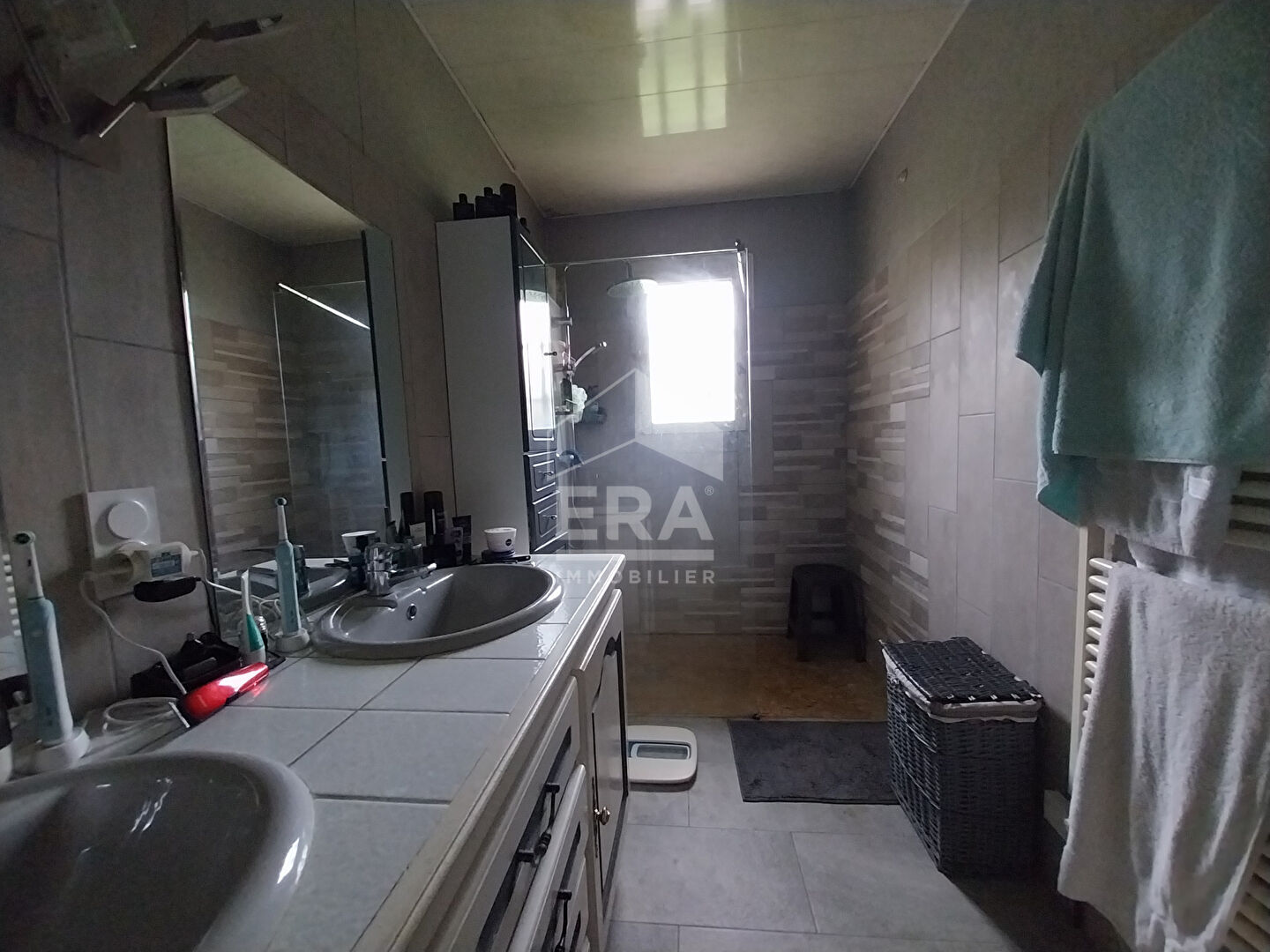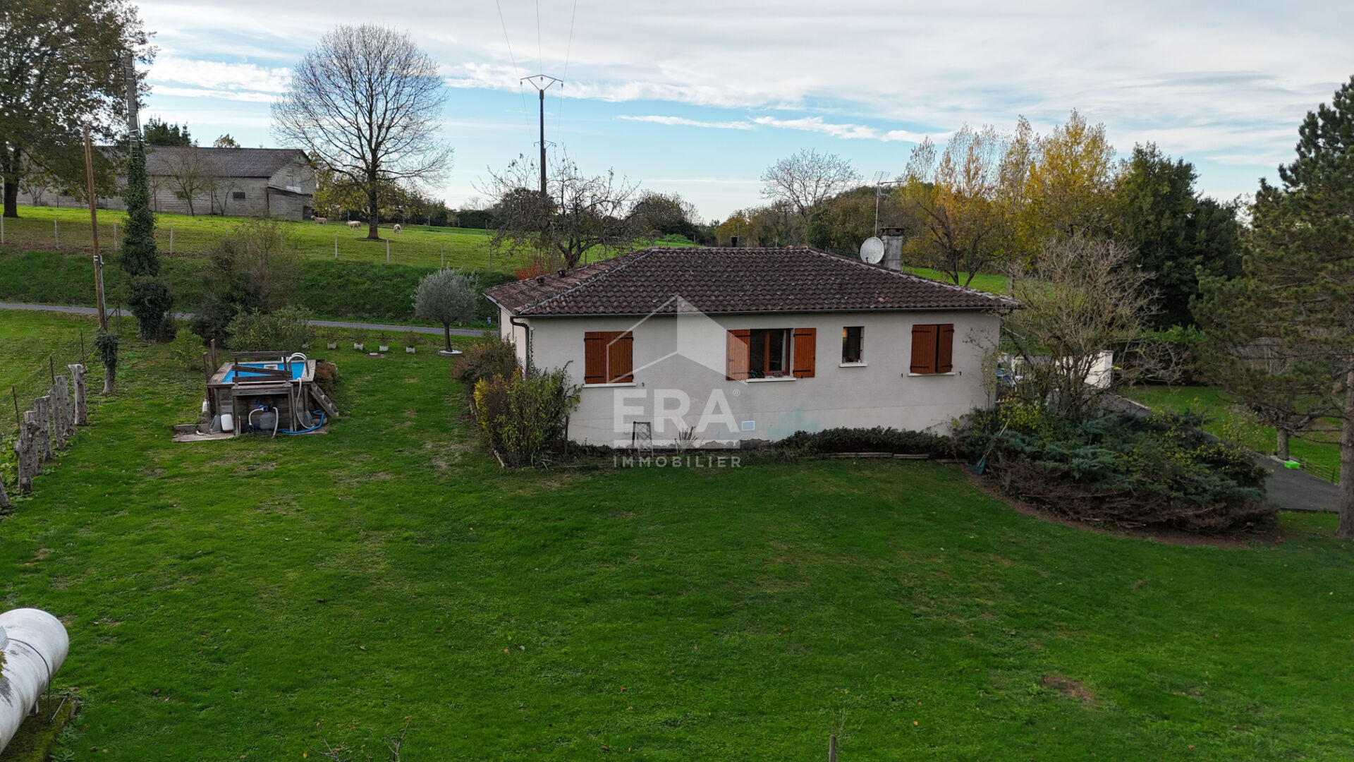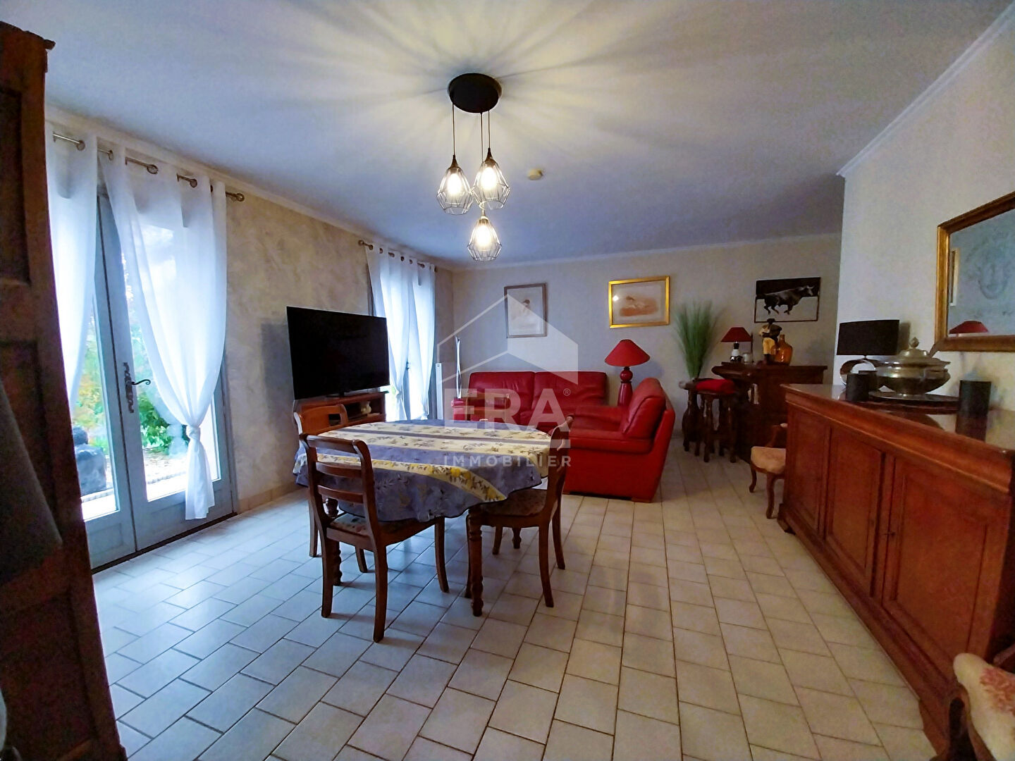 Située au coeur d'un village paisible, cette maison de plain-pied surélevé, édifiée à la fin des années 80, offre un cadre de vie serein à moins de 5 km des commodités. Une terrasse paysagée, une cour goudronnée et un jardin arboré de plus de 1?400 m² composent un extérieur soigné, idéal pour profiter des beaux jours en toute tranquillité. L'entrée ouvre d'un côté sur un salon-séjour lumineux agrémenté d'un poêle à pellets, et de l'autre sur une cuisine aménagée et équipée, pensée pour offrir praticité et convivialité. La partie nuit comprend trois chambres tournées vers le jardin arrière sans vis-à-vis, une salle d'eau moderne avec douche à l'italienne et double vasque, ainsi qu'un WC indépendant. Un escalier mène au sous-sol, qui accueille un cellier avec adoucisseur d'eau, des espaces de rangement et un grand garage offrant de belles possibilités d'aménagement. Un bien rare dans un environnement calme et verdoyant, idéal pour une famille ou un couple recherchant le confort du plain-pied et de généreux espaces extérieurs.