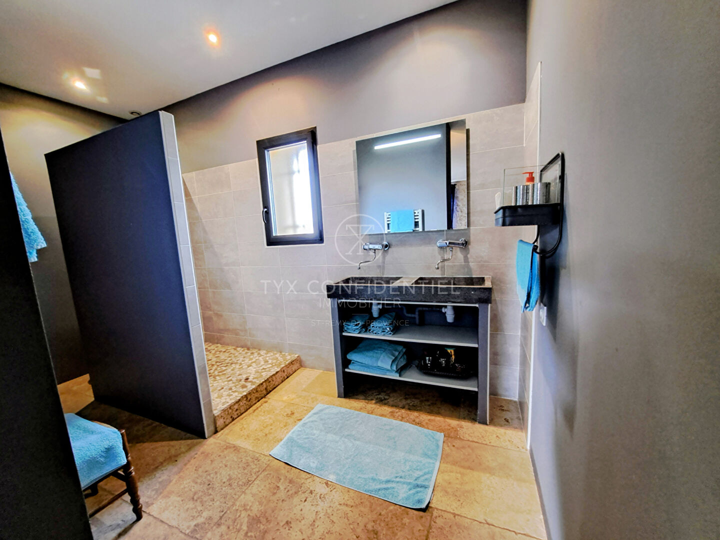 EXCLUSIVITE. A 2 pas de l'hyper centre saint rémois et au calme absolu, notre agence immobilière, TYX IMMOBILIER CONFIDENTIEL, a le plaisir de vous proposer ce très beau mas en pierre de 260 m² environ, rénové en 2015, réparti, actuellement en 2 habitations. A seulement quelques minutes à pied du centre, ce superbe mas de ville allie calme absolu, charme et prestations de qualité. Vous serez séduits par sa vaste pièce de vie lumineuse avec cheminée, sa cuisine conviviale, ainsi que ses trois suites, dont une en rez-de-chaussée. Une dépendance indépendante de plain-pied offre un magnifique salon cathédrale et deux suites supplémentaires, idéale pour recevoir famille et amis en toute intimité. Le jardin arboré abrite une piscine chauffée et une belle terrasse, parfaites pour profiter du climat provençal. Un bien rare à Saint-Rémy, combinant emplacement privilégié, calme, et matériaux haut de gamme. Prix : 1 680 000 euros Honoraires d' Agence Inclus.(Charge vendeur). Gabriel PERETTI (EI) Agent Commercial - Numéro RSAC : - .