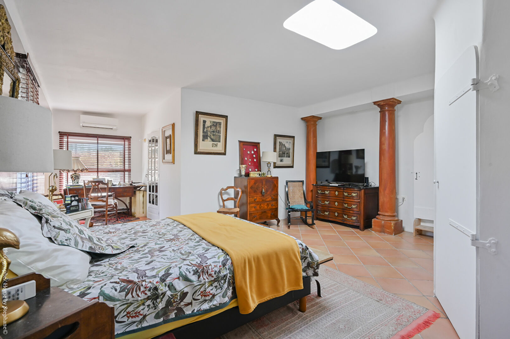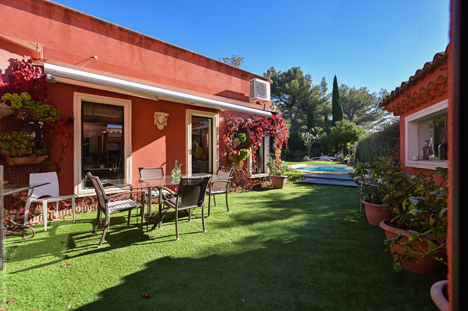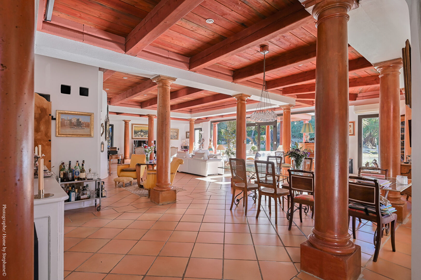 A quelques minutes du village de Signes, dans un décor typiquement provençal, cette villa contemporaine de 280 m² séduit par son atmosphère artistique et son alliance réussie entre modernité et douceur de vivre. Implantée sur un terrain paysager de 2 300 m², elle profite d'un cadre naturel privilégié où calme et intimité sont les maîtres-mots. La piscine chauffée avec nage à contre-courant, la vaste terrasse en bois et le toit-terrasse panoramique de 100 m² offrent des espaces extérieurs d'exception, parfaits pour profiter du climat varois toute l'année. L'intérieur, lumineux et spacieux, s'ouvre sur un séjour aux volumes généreux, sublimé par des colonnes au charme toscan. La cuisine, conçue sur mesure, allie design et praticité dans un esprit résolument contemporain. Le rez-de-chaussée accueille une belle suite parentale avec salle de bain privative et accès direct à un jardinet, ainsi que deux chambres confortables, une salle d'eau, un bureau et une buanderie. A l'étage, une seconde suite bénéficie d'une sortie sur le toit-terrasse, tandis qu'un bureau en mezzanine, deux chambres supplémentaires, un grand dressing et une salle de bain complètent ce niveau. Carports, atelier de jardin et cave viennent enrichir les prestations de cette maison pensée pour le confort et l'art de vivre.
