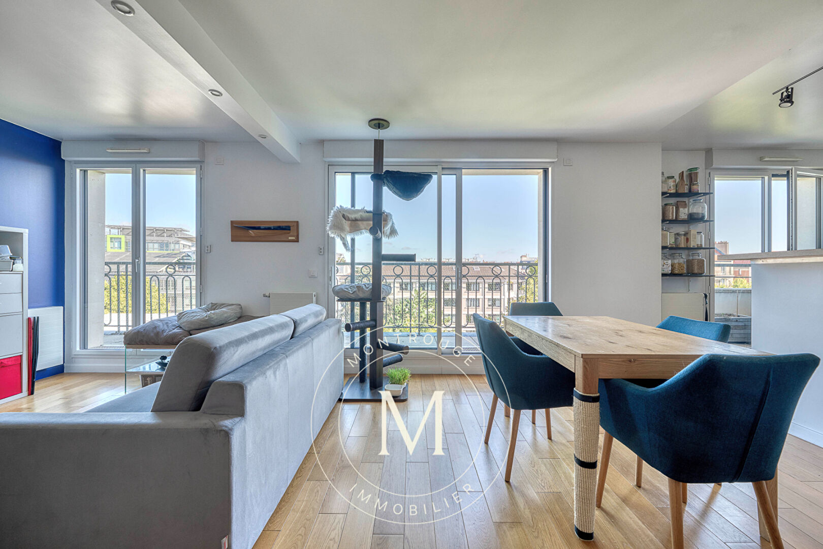 SOUS COMPROMIS - A 5min du métro 4. Bel appartement 3 pièces de 76m² offrant: Entrée avec dégagement et placard, séjour avec cuisine US aménagée de 30.5m² avec accès balcon exposé SUD, 2 spacieuses chambres de 14.3m² et 12.5m², salle de bains et WC séparés. Le bien dispose également d'un parking et d'une cave en sous/sol. Parfaitement agencé, sans perte de place - COUP DE COEUR ! Copropriété de 79 lots - dont 24 lots habitation. (Pas de procédure en cours). Charges annuelle