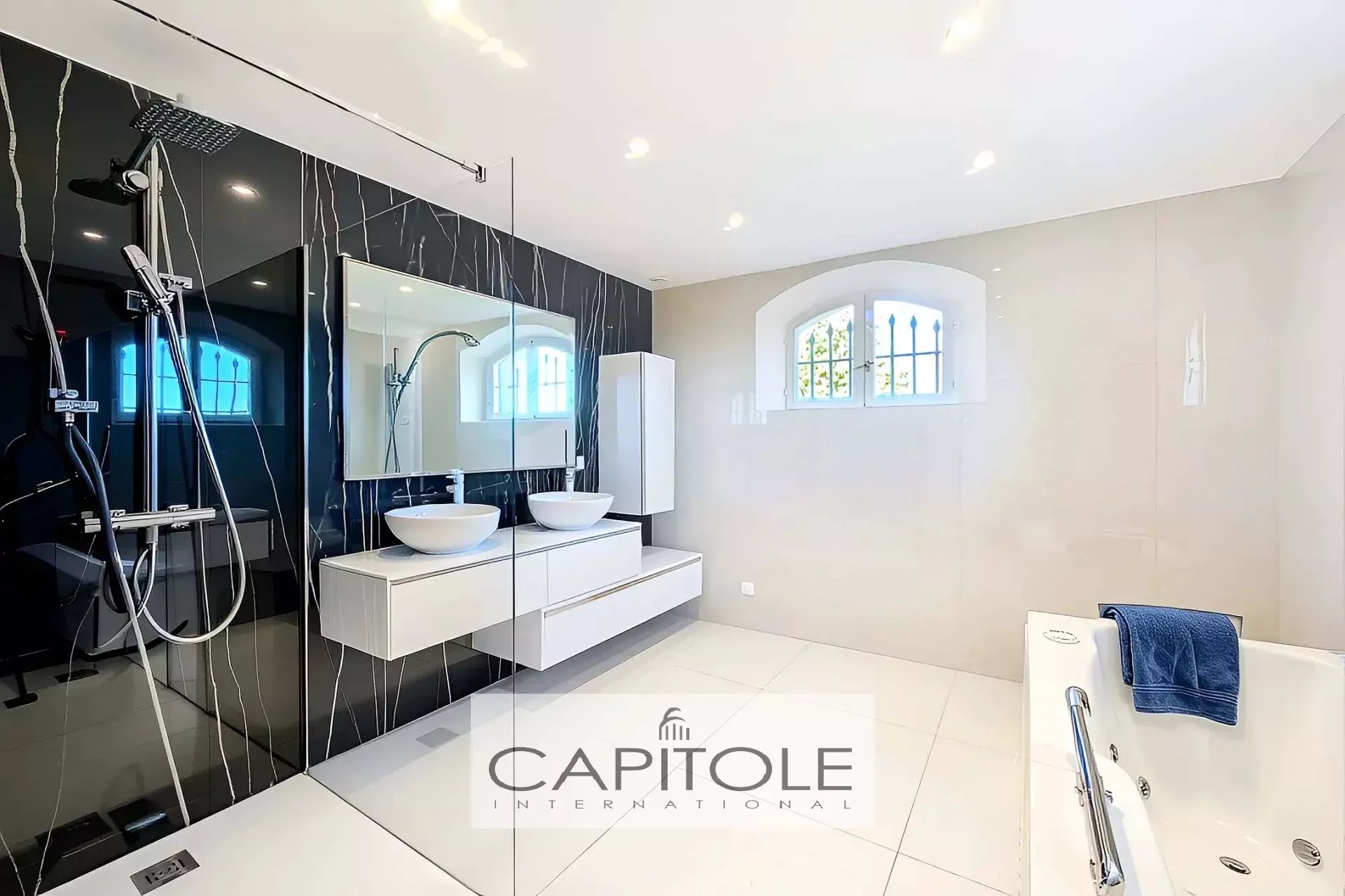 À seulement 10 minutes de Cannes et à proximité de Sophia Antipolis, cette somptueuse villa de 294 m² domine le paysage et offre une vue mer imprenable. En position privilégiée, au calme absolu, sans vis-à-vis et exposée plein sud, elle s’épanouit au cœur d’un terrain paysagé avec piscine, la villa séduit par la noblesse de ses matériaux et la qualité de ses prestations.