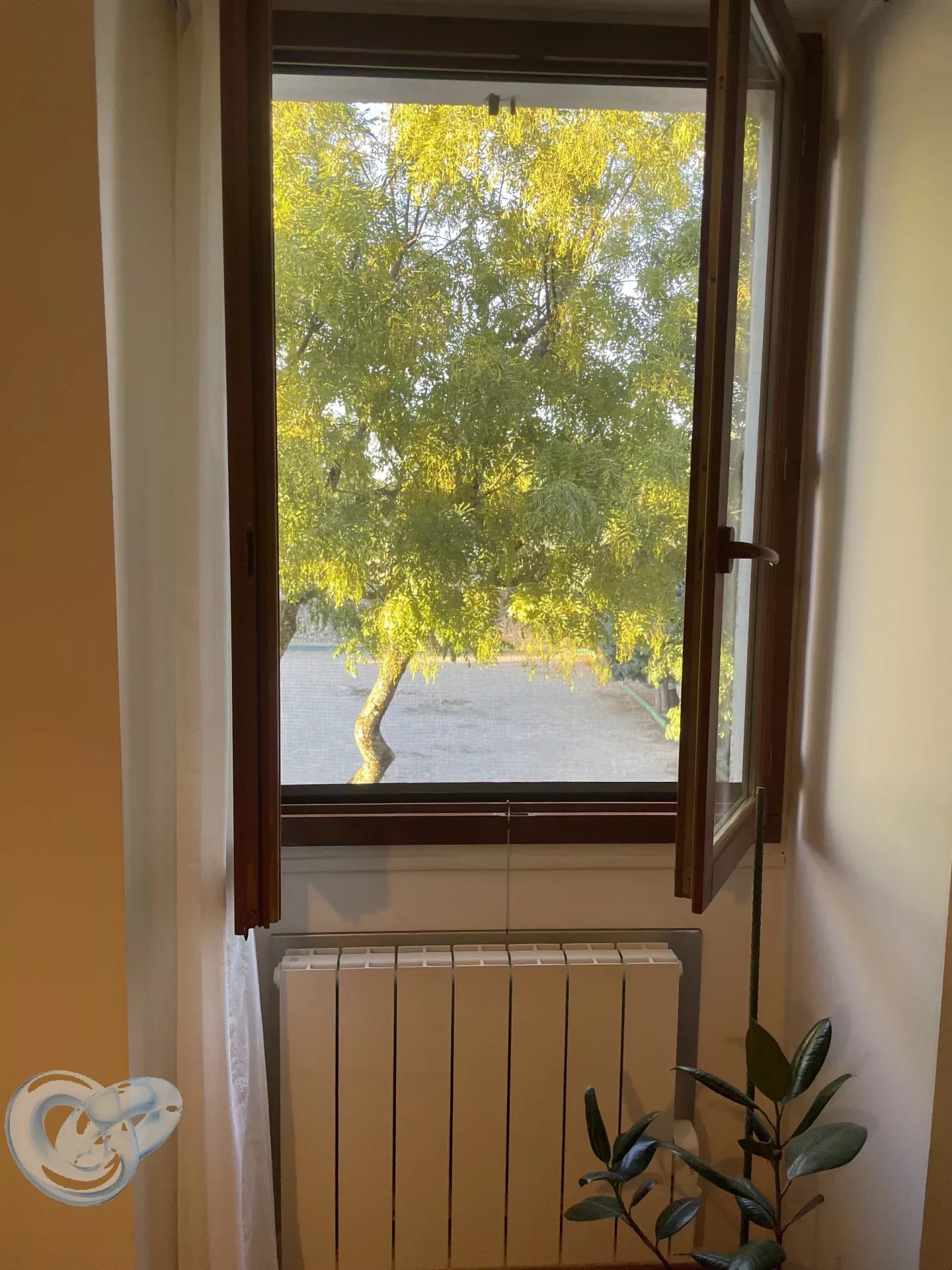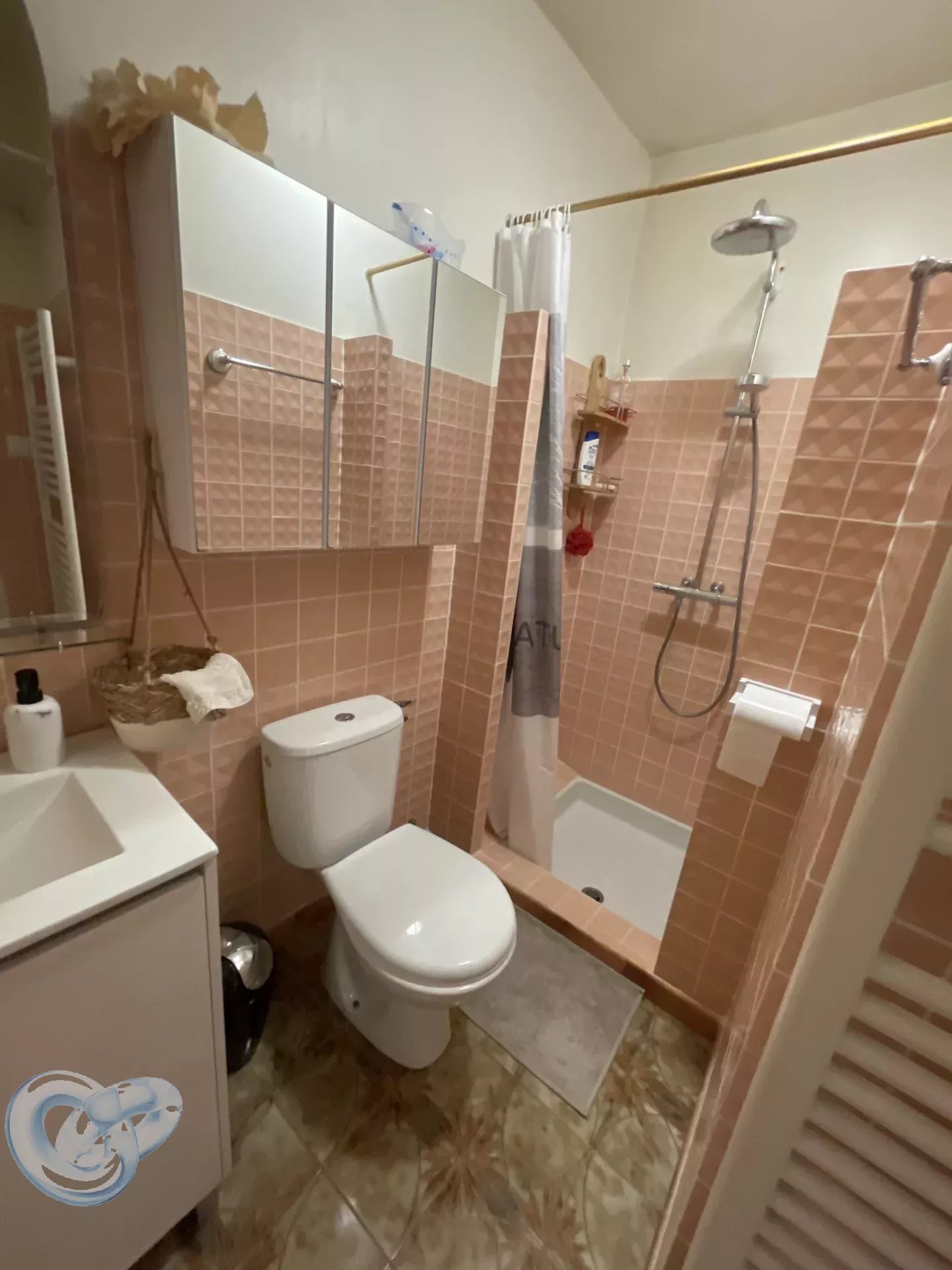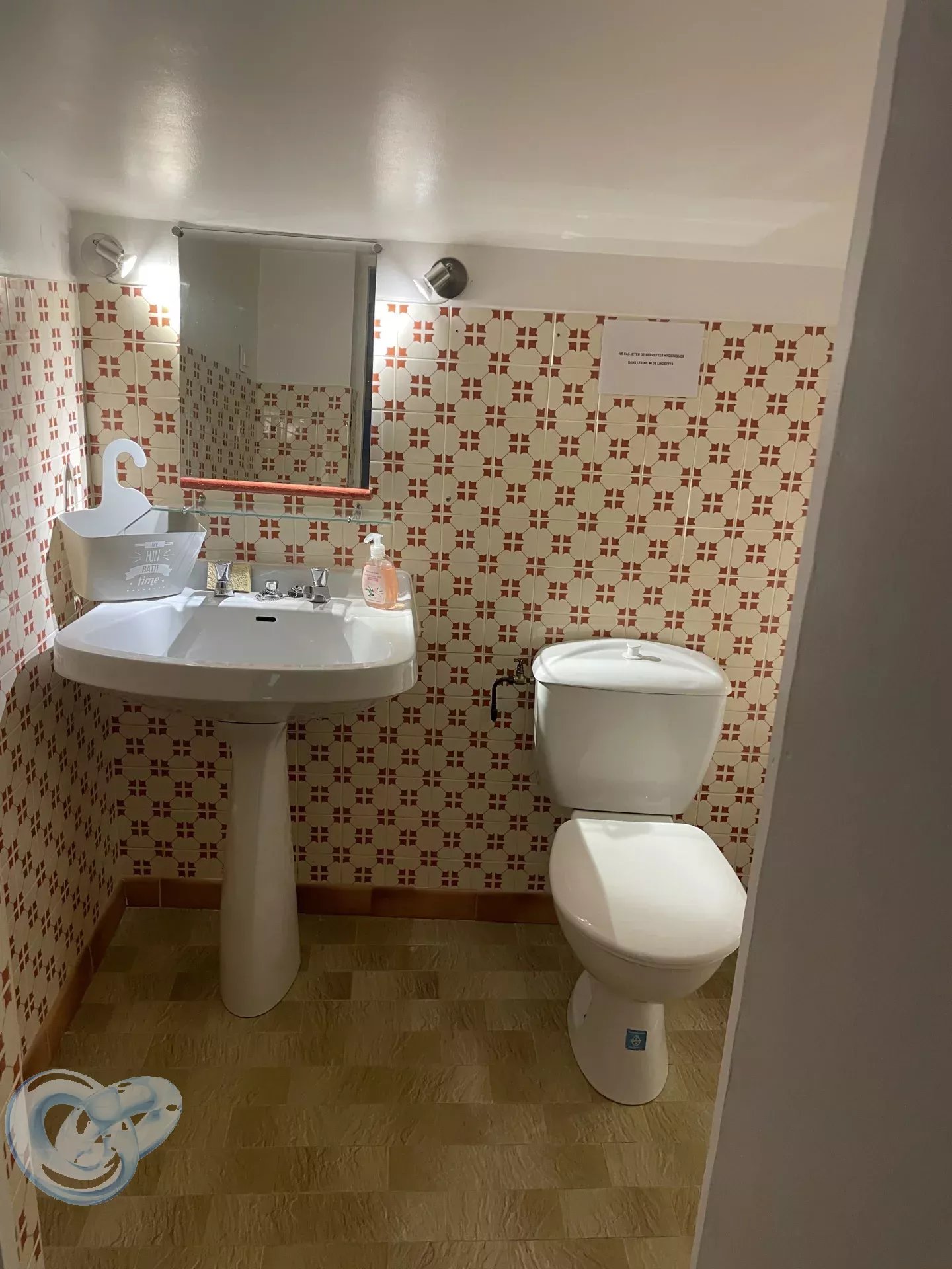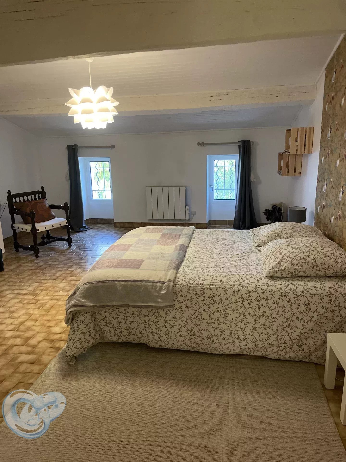 Grande chambre lumineuse avec salle d’eau privative (lavabo et toilettes).