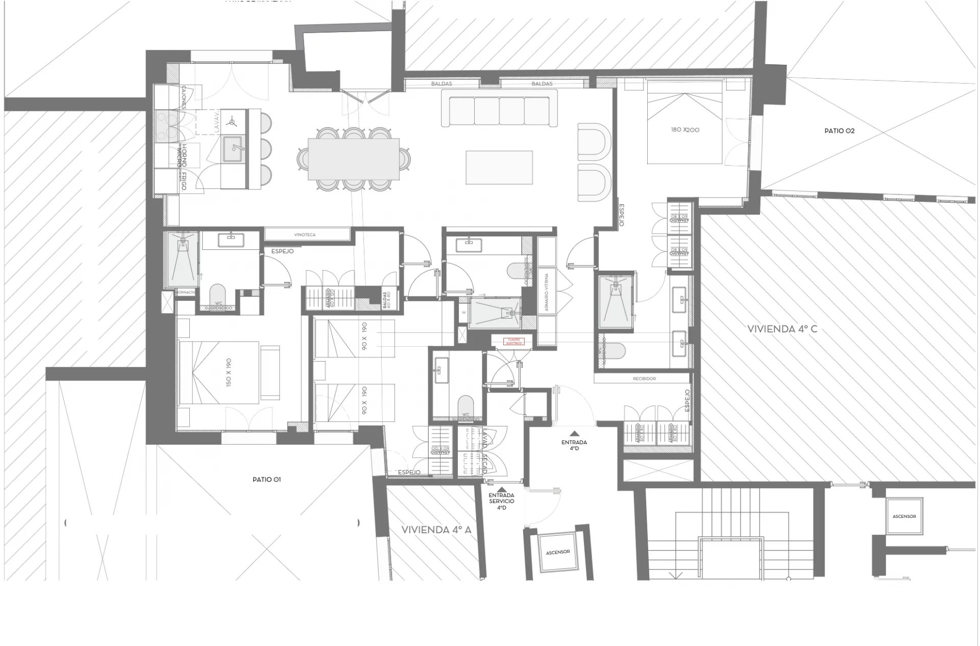 VERALTIA is marketing this apartment currently being renovated, located in a modern building with elevator and concierge in the exclusive Almagro neighborhood of Chamberí. Set on the fourth floor, the property offers 154 sqm built, facing a peaceful inner courtyard and benefiting from excellent natural light.