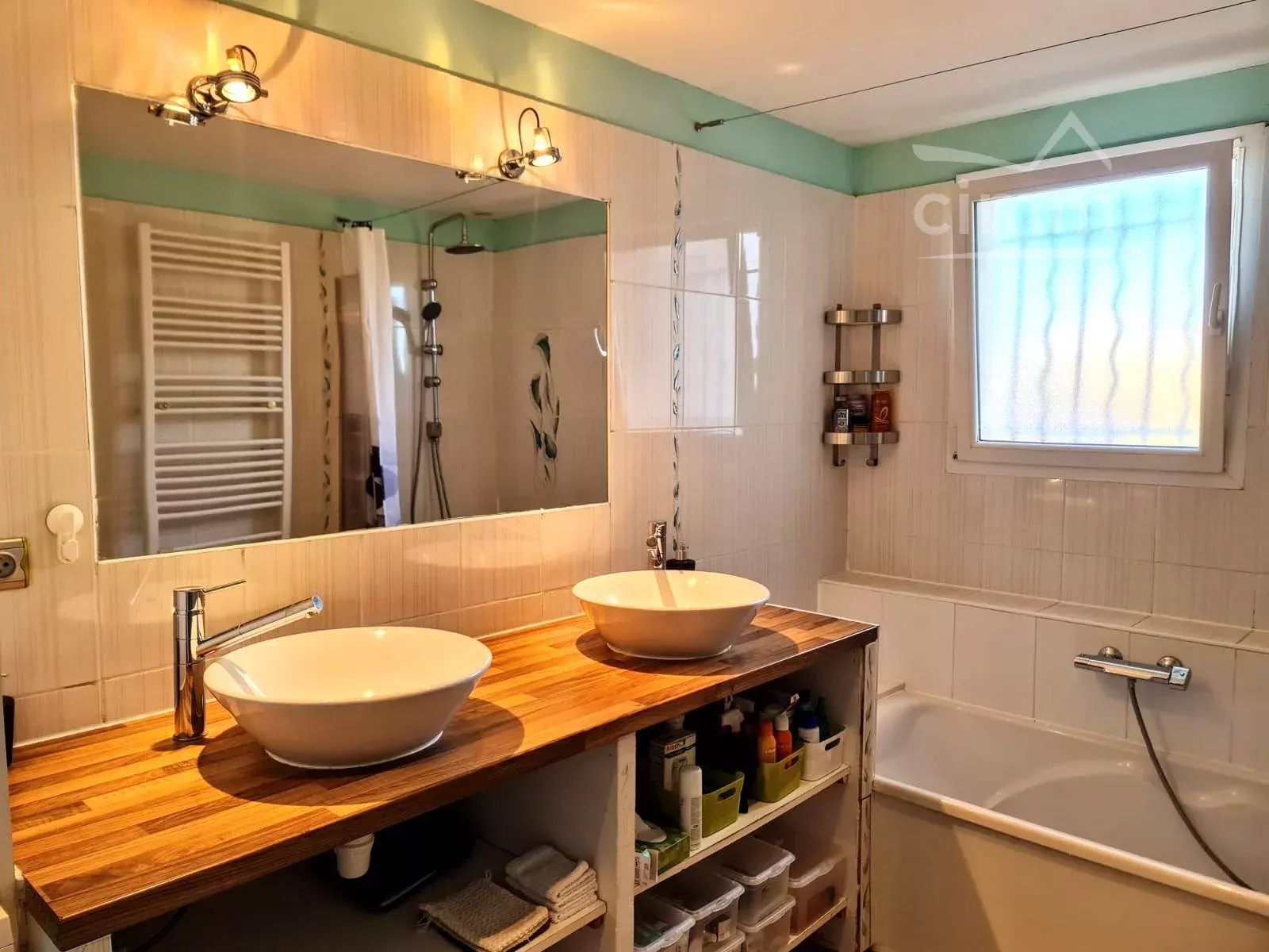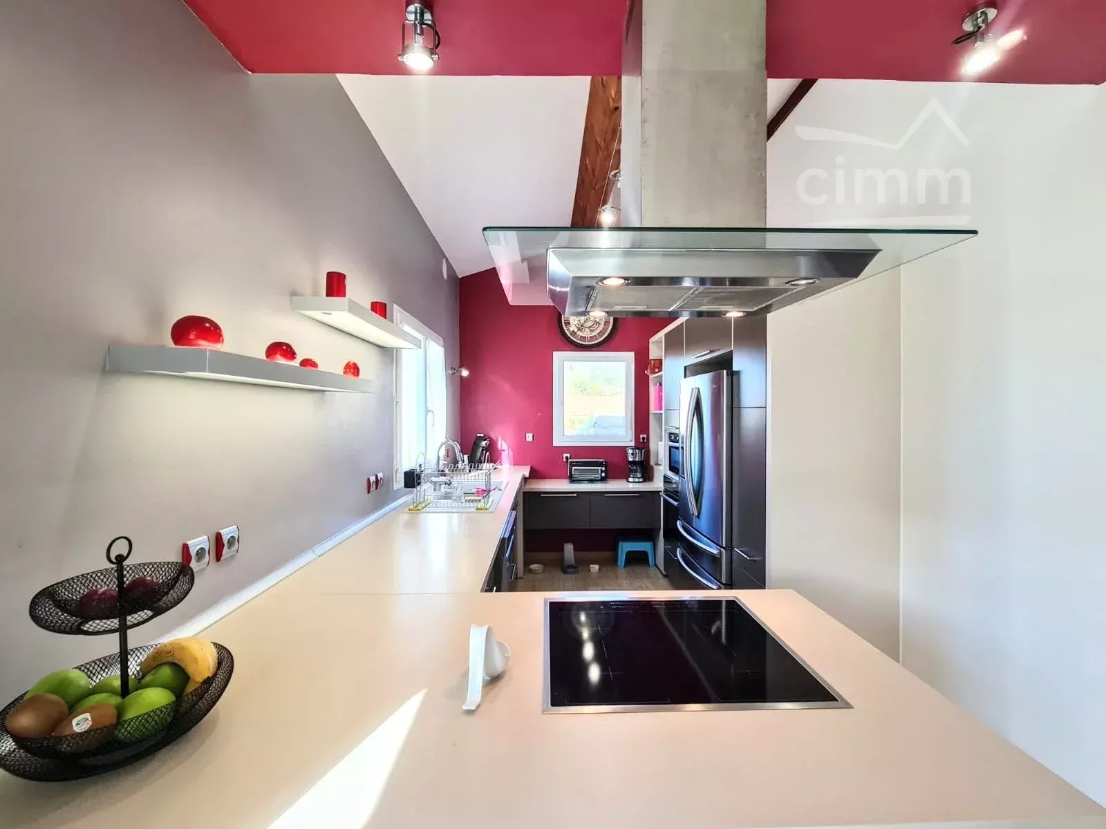 Le plus : villa située dans un écrin de verdure, beaucoup de rangement, plafond cathédrale, villa chauffée et refroidie par une géothermie au rez-de-chaussée, un poêle à bois et climatisation réversible.